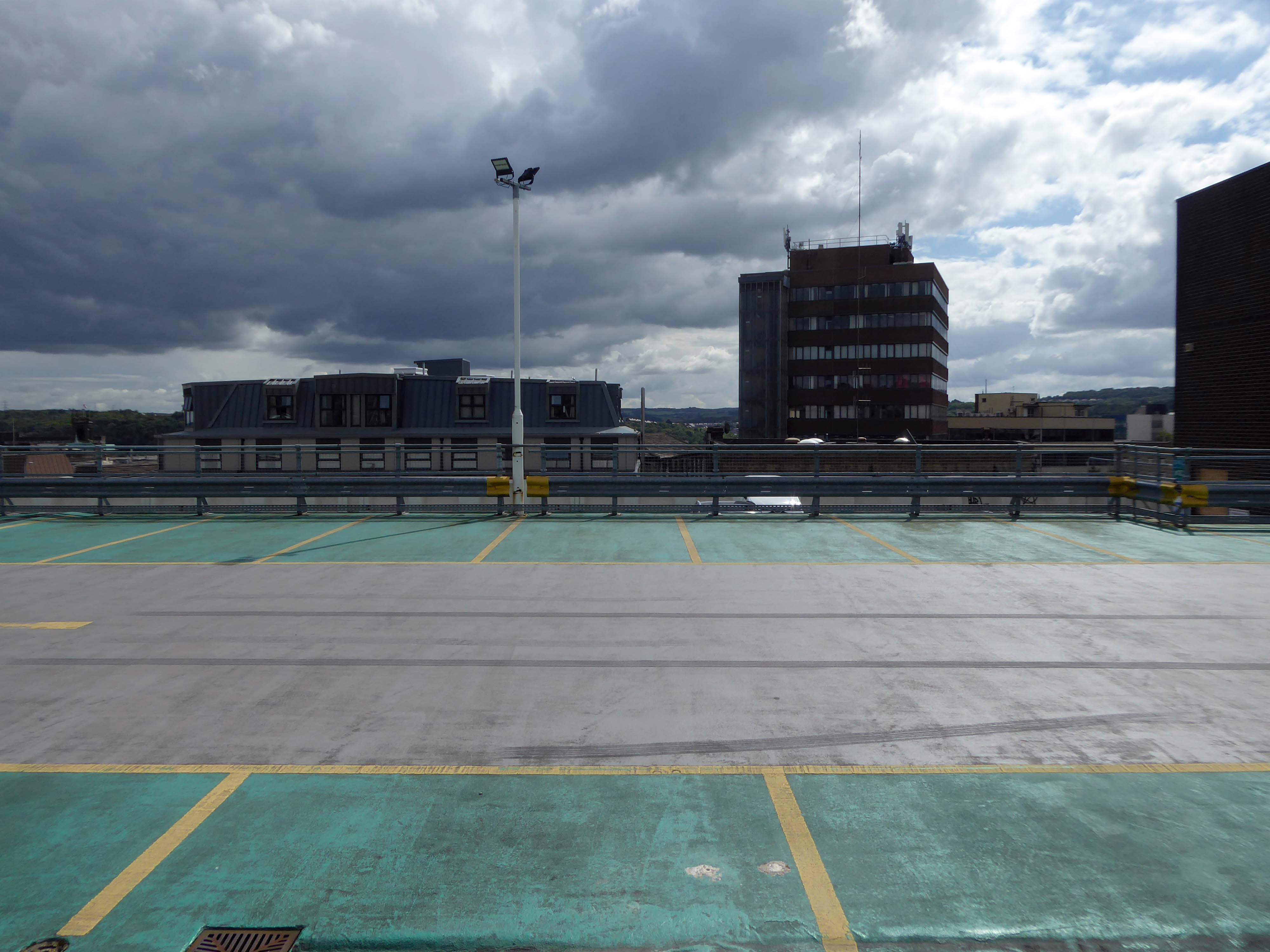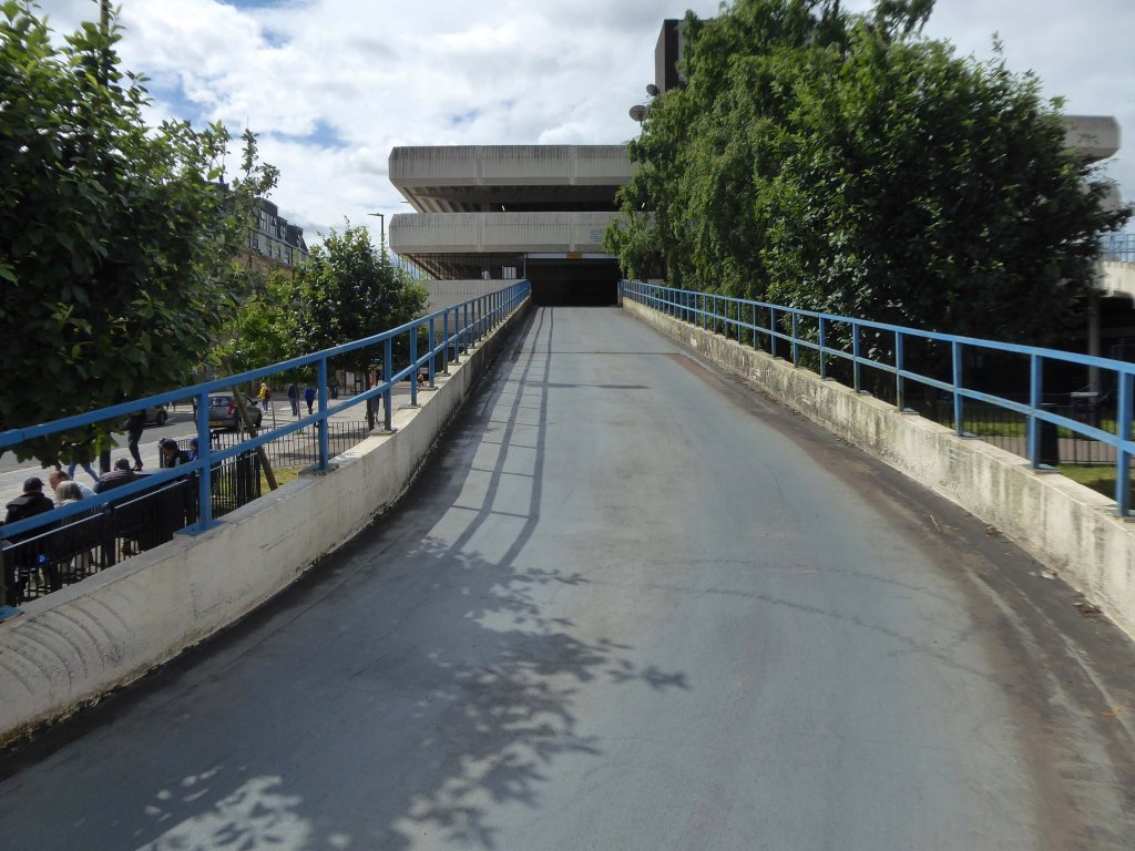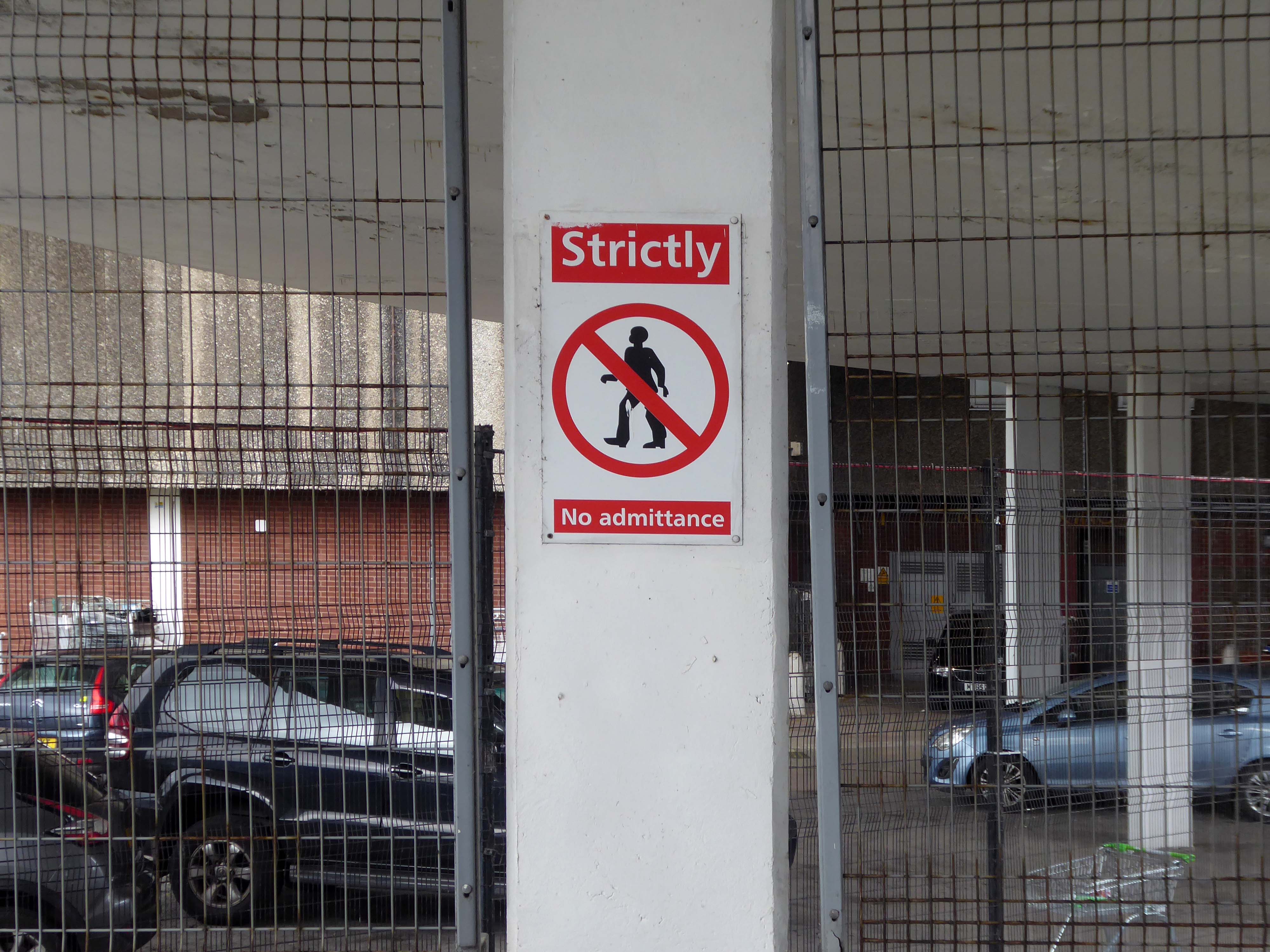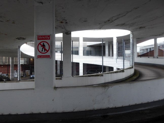 The weary walker is diverted toward the Civic Quarter Car Park.
