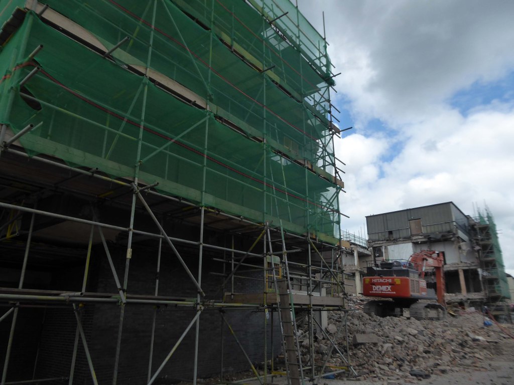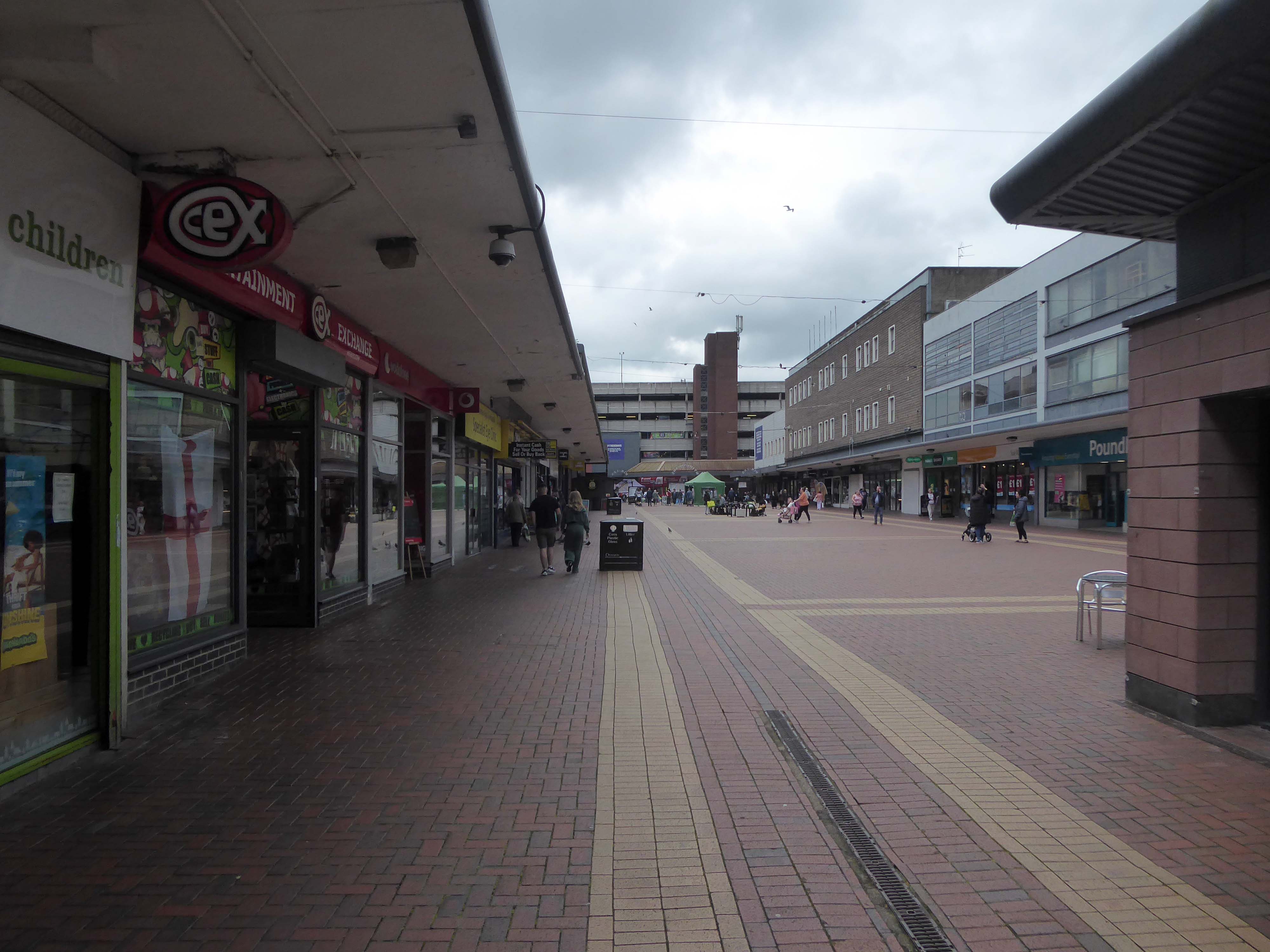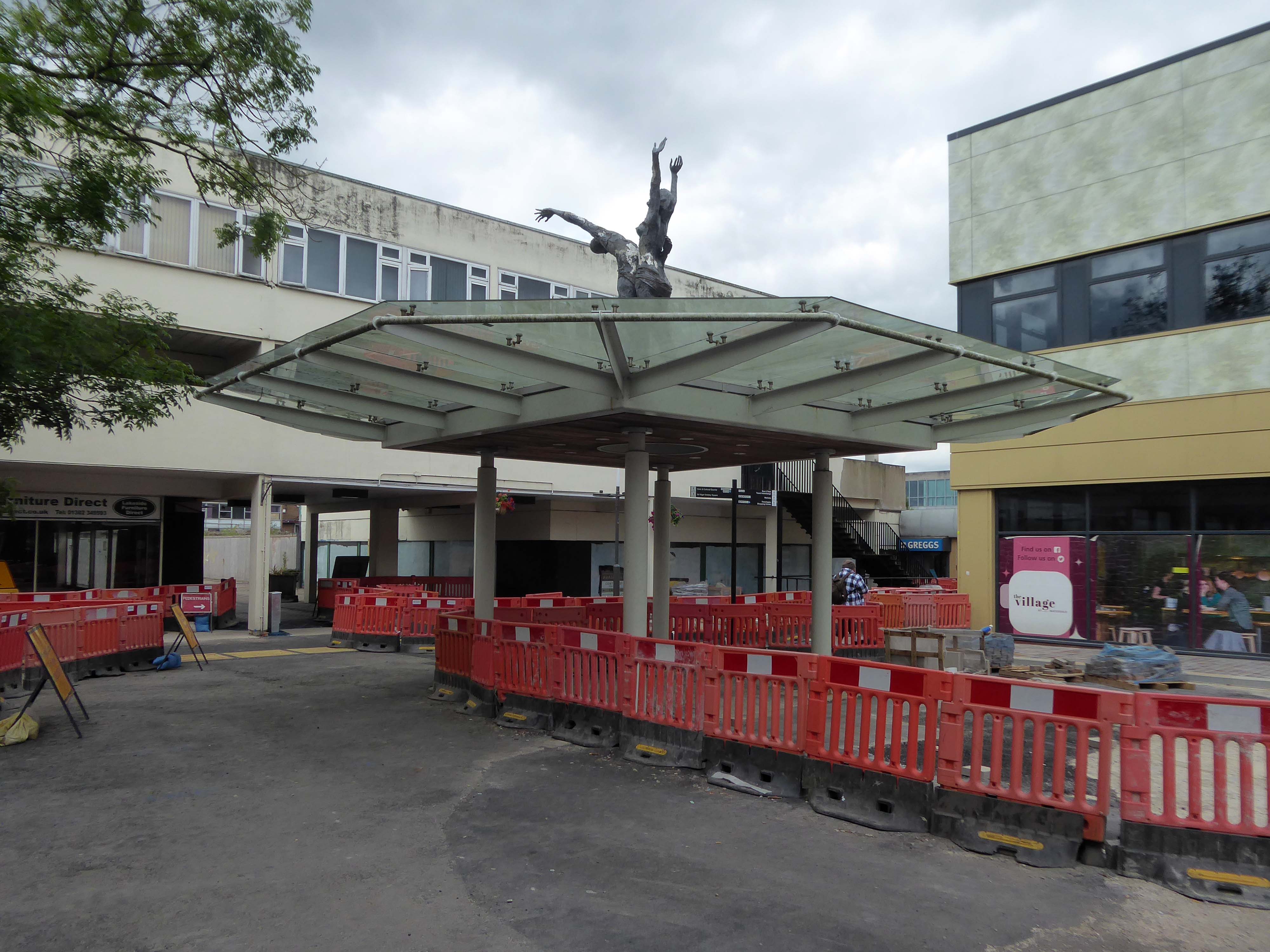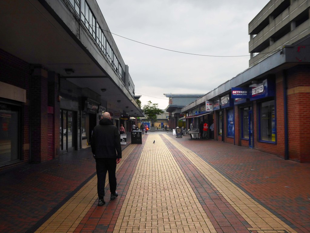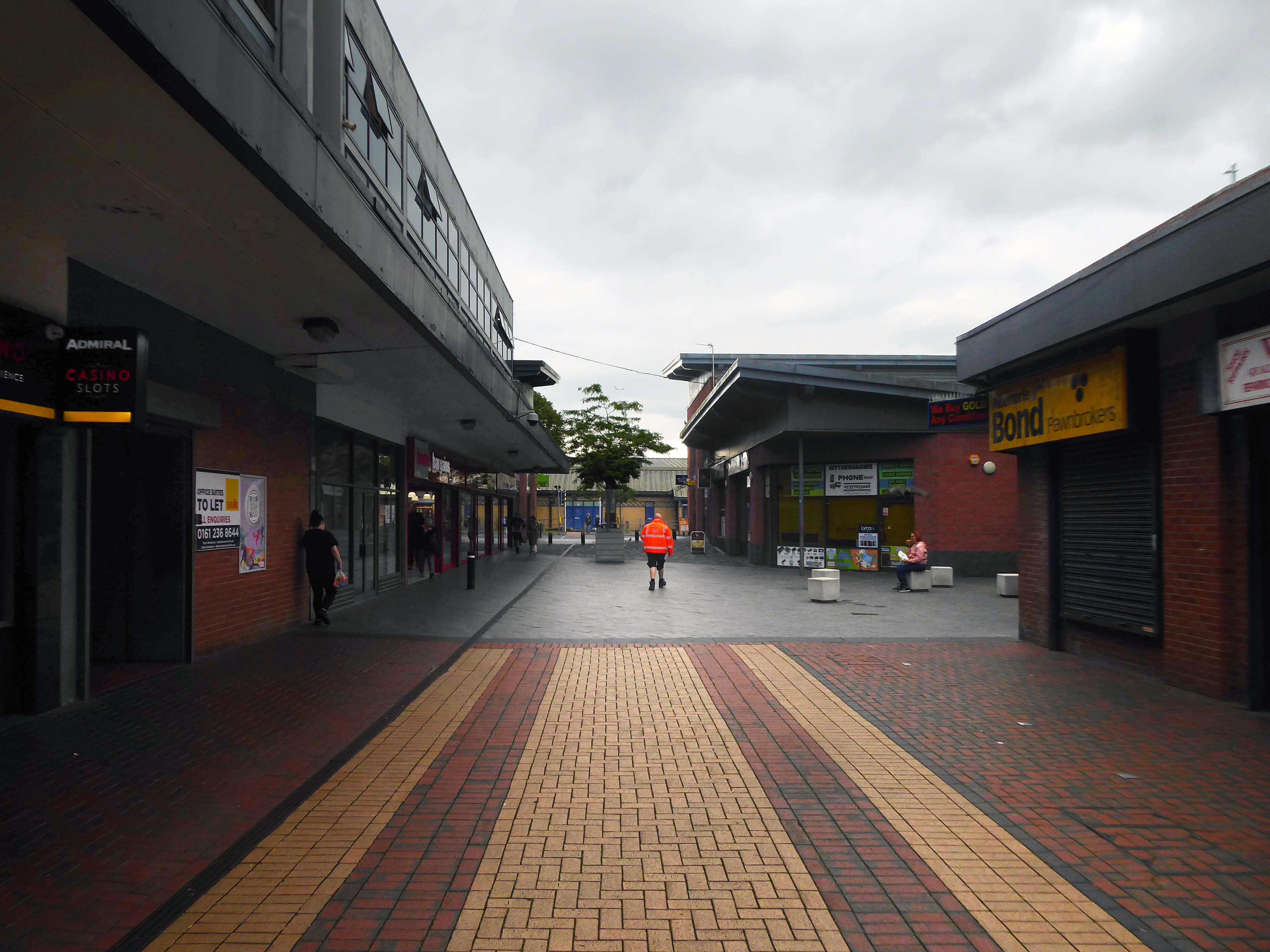 It is currently being reshaped to provide a line of desire twixt the Civic and Cultural areas, from the town centre. There are still the remnants of homes, shops and a pub amongst the demolition – almost inevitably there is new paving.