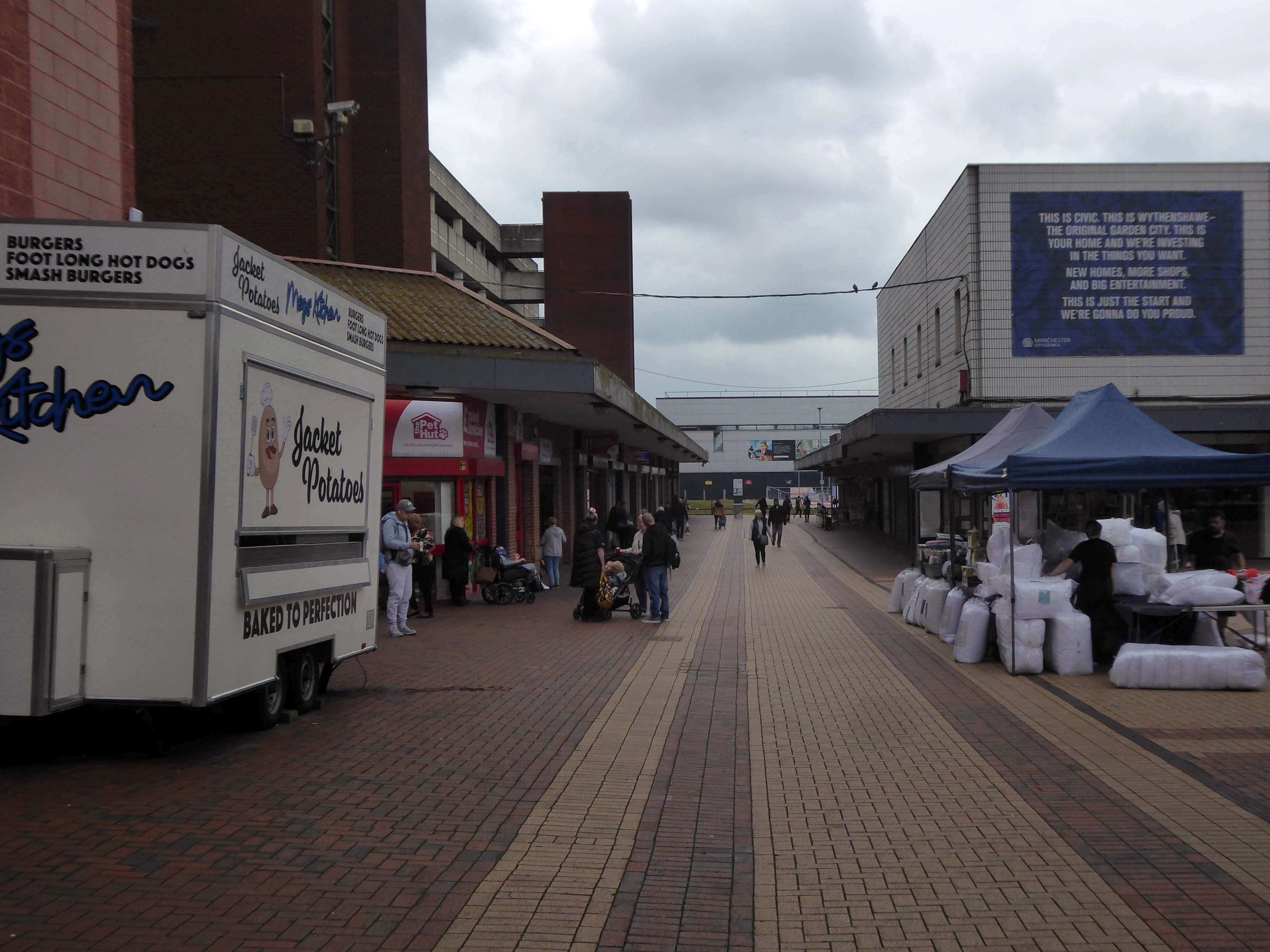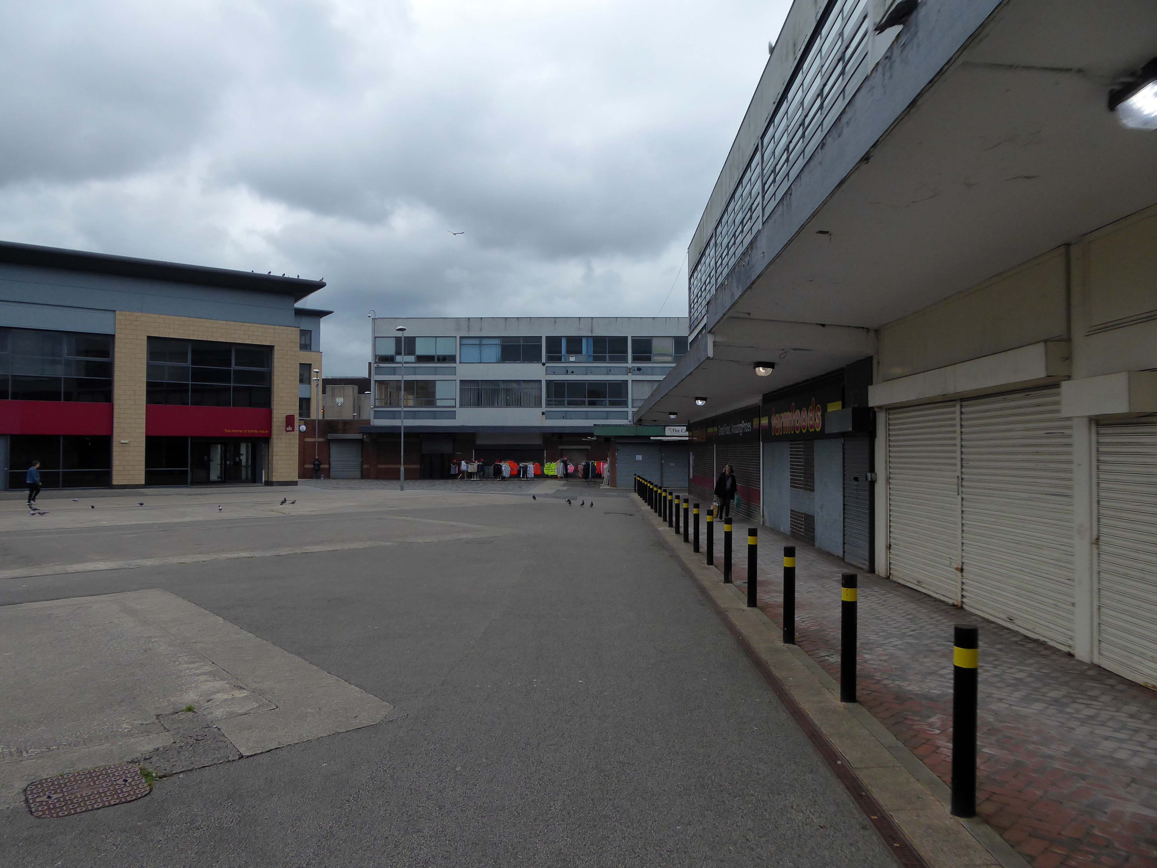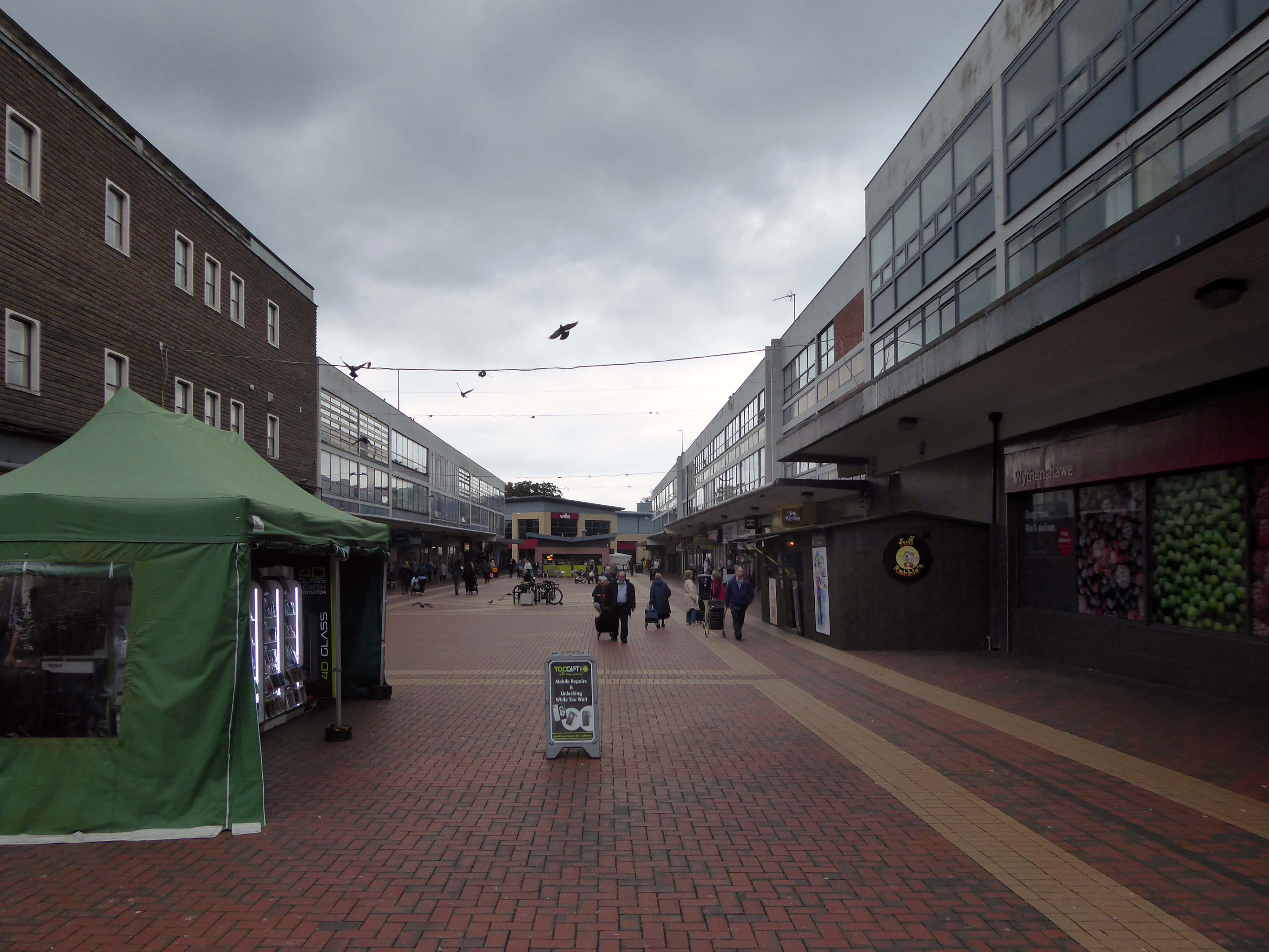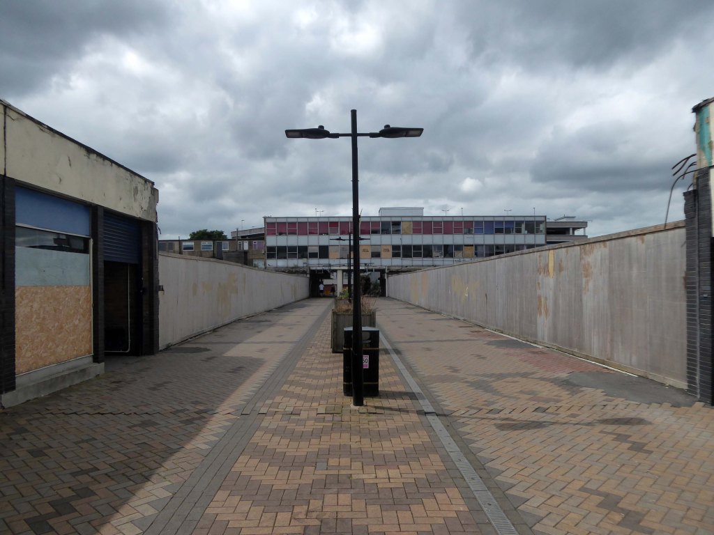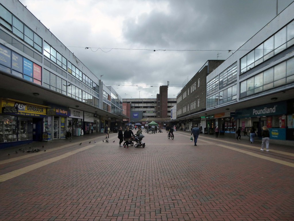 It is currently being reshaped to provide a line of desire twixt the Civic and Cultural areas, from the town centre. There are still the remnants of homes, shops and a pub amongst the demolition – almost inevitably there is new paving.