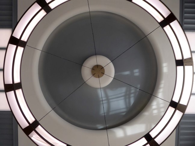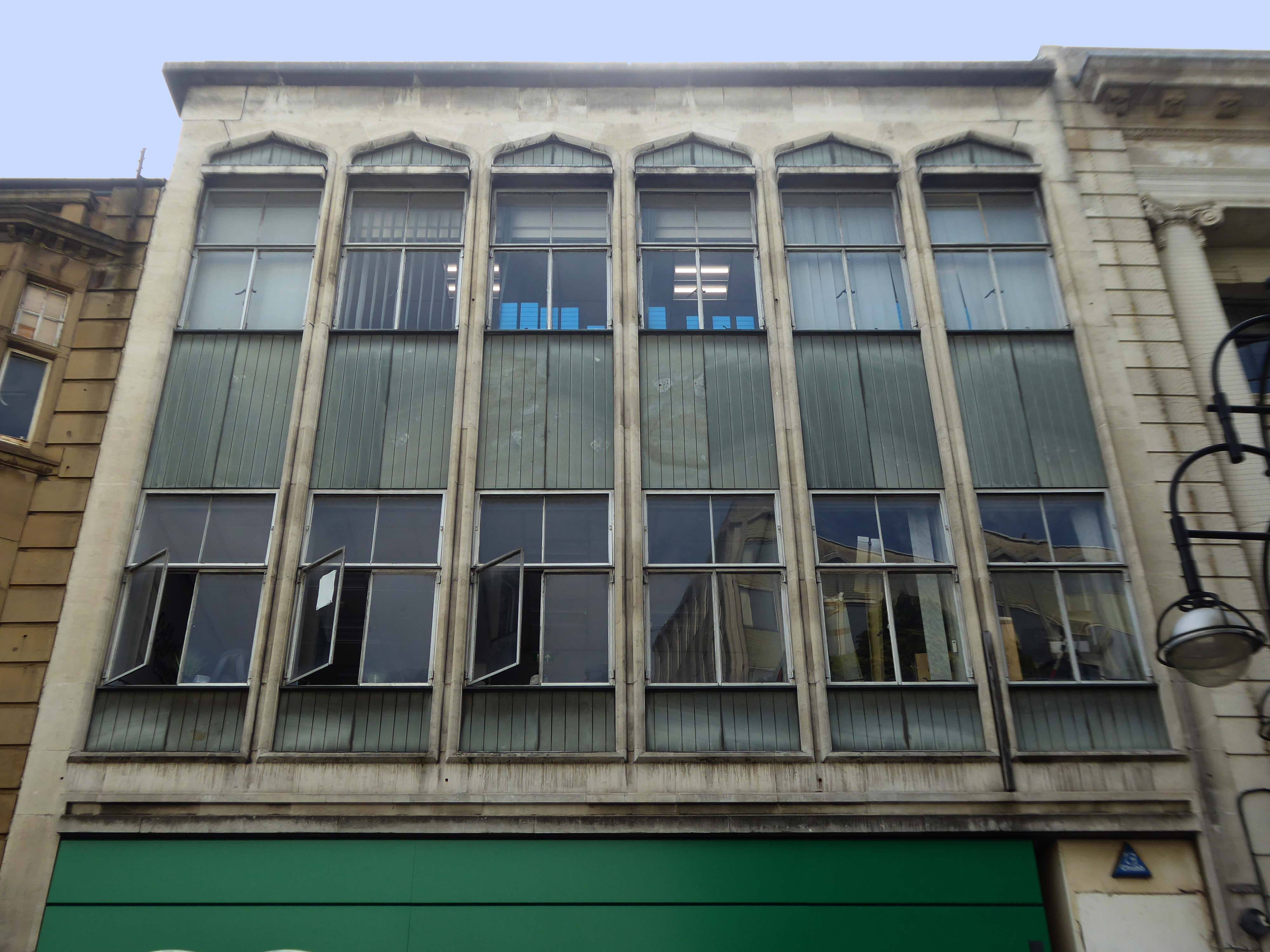 This post war infill has that distinctive Festival of Britain feel, original metal window frames, Portland stone and blueish slate like panels.