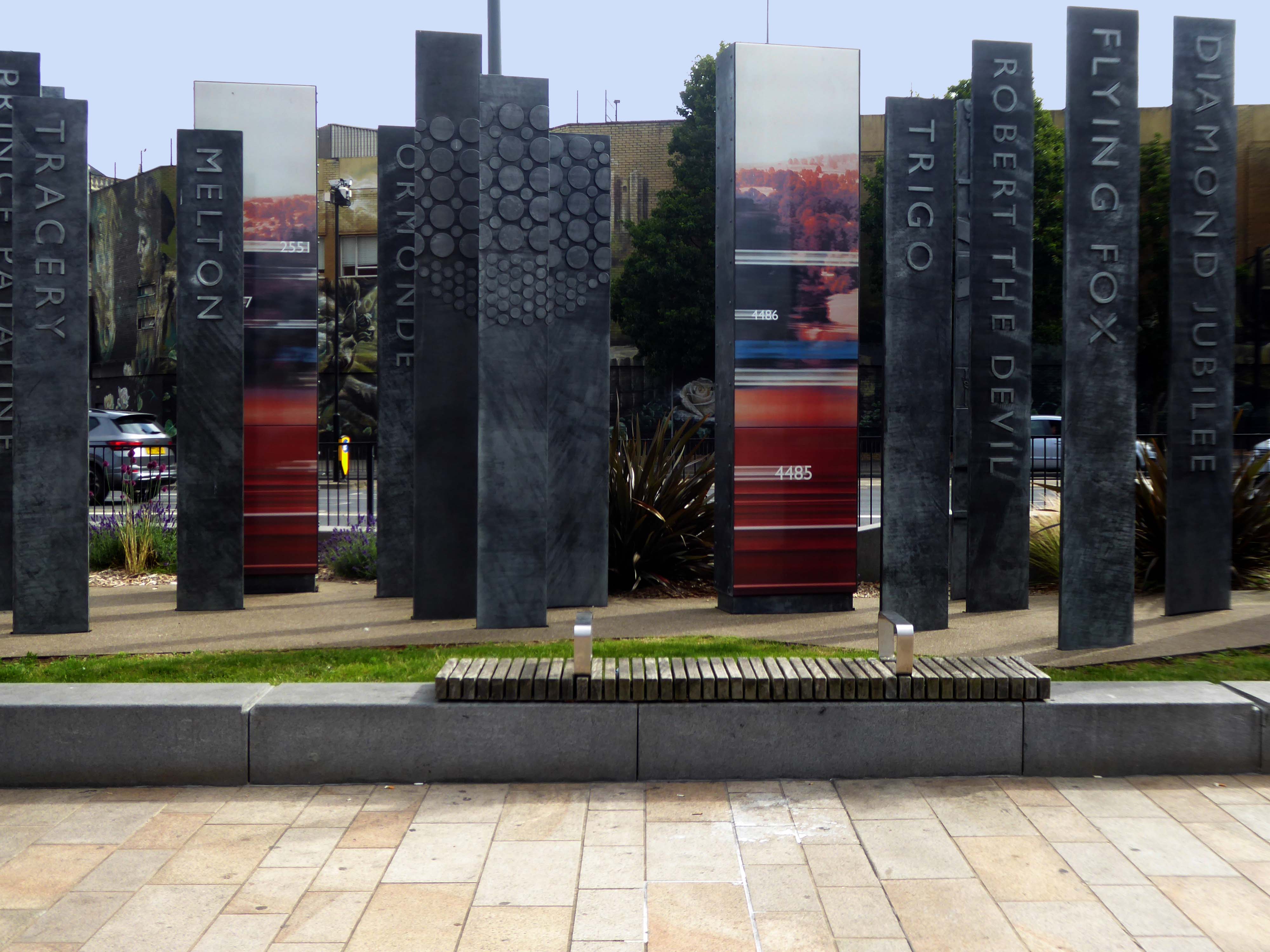 Celebrating engineering, speed and connectivity and stretching forty metres in length the public art at Doncaster Station consists of forty seven monoliths which are a nod to Doncaster’s past, present and future. With a fountain and three impressive water walls, the art takes centre stage in the new public space as you step out of the train station and head into the town centre.