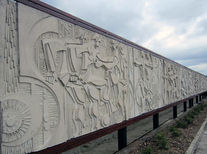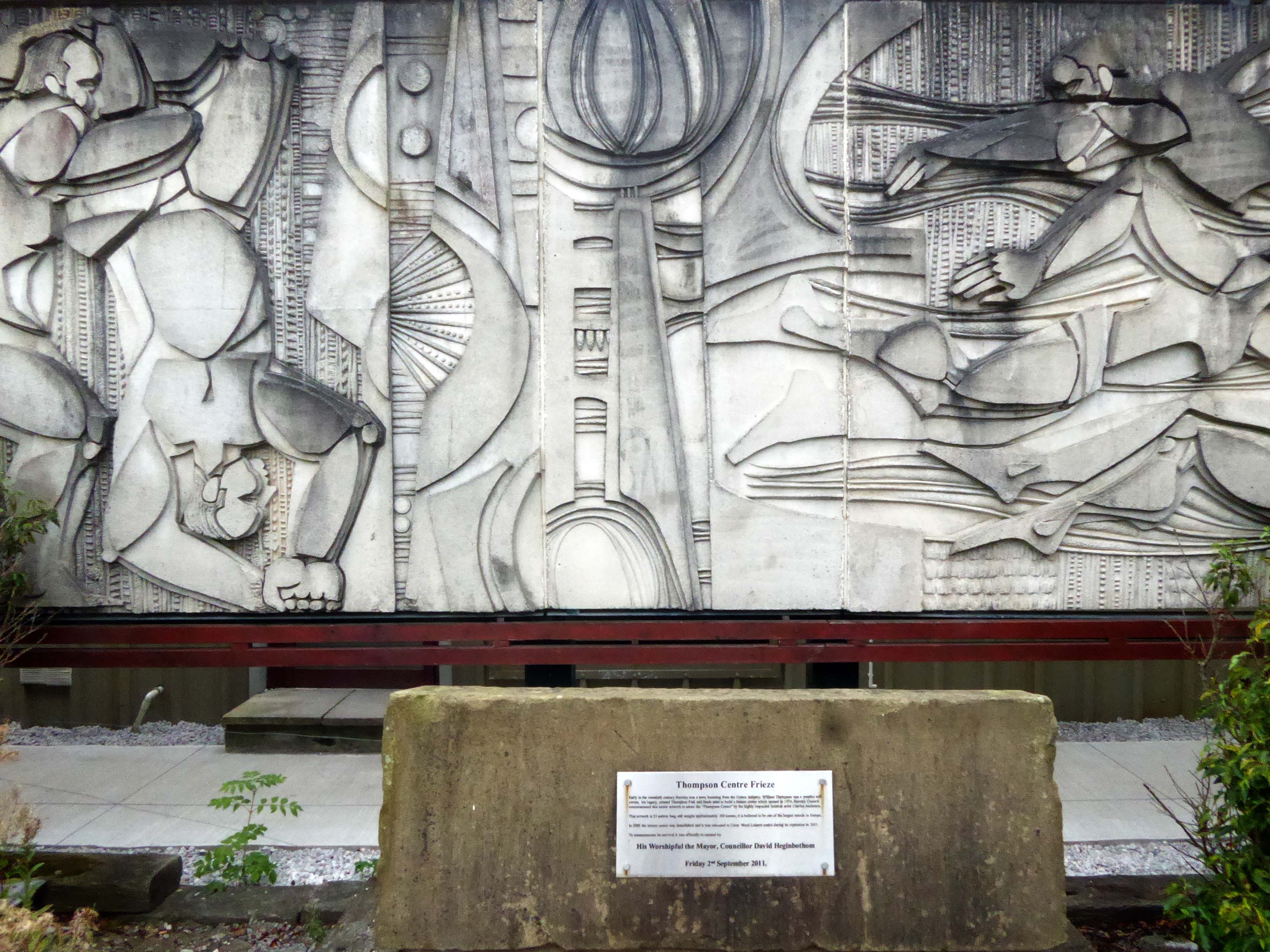 The Thompson Recreation Centre was decorated by a large concrete frieze by Scottish artist Charles Anderson.
