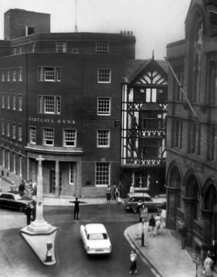 A conscious effort to reflect the nearby Tudor architecture of Ireland’s Mansion and Pride Hill. Lloyds Bank is considered a good example of Brutalist architecture, and proof that bold modern buildings can be successfully slotted into traditional historic streets.