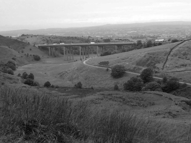 We were walking along Tunshill Lane on our way to the Piethorn Valley, our crossing of the M62 facilitated by this elegant road bridge.