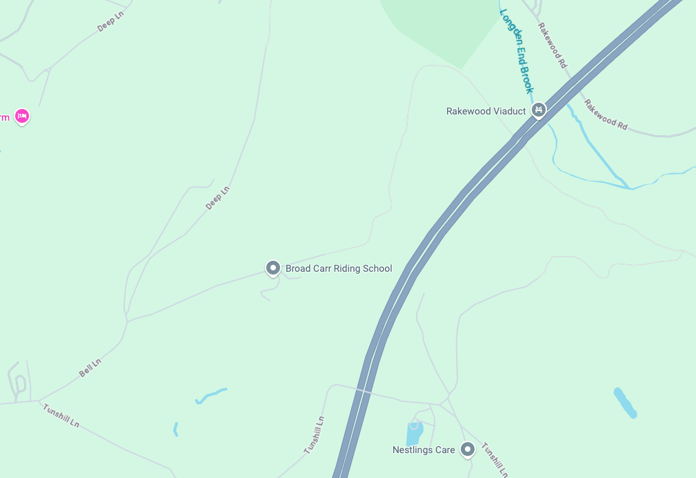 A notable structure between junctions 21 and 22 on the uphill section towards Windy Hill is the Rakewood Viaduct which carries the road over the Longden End Brook.