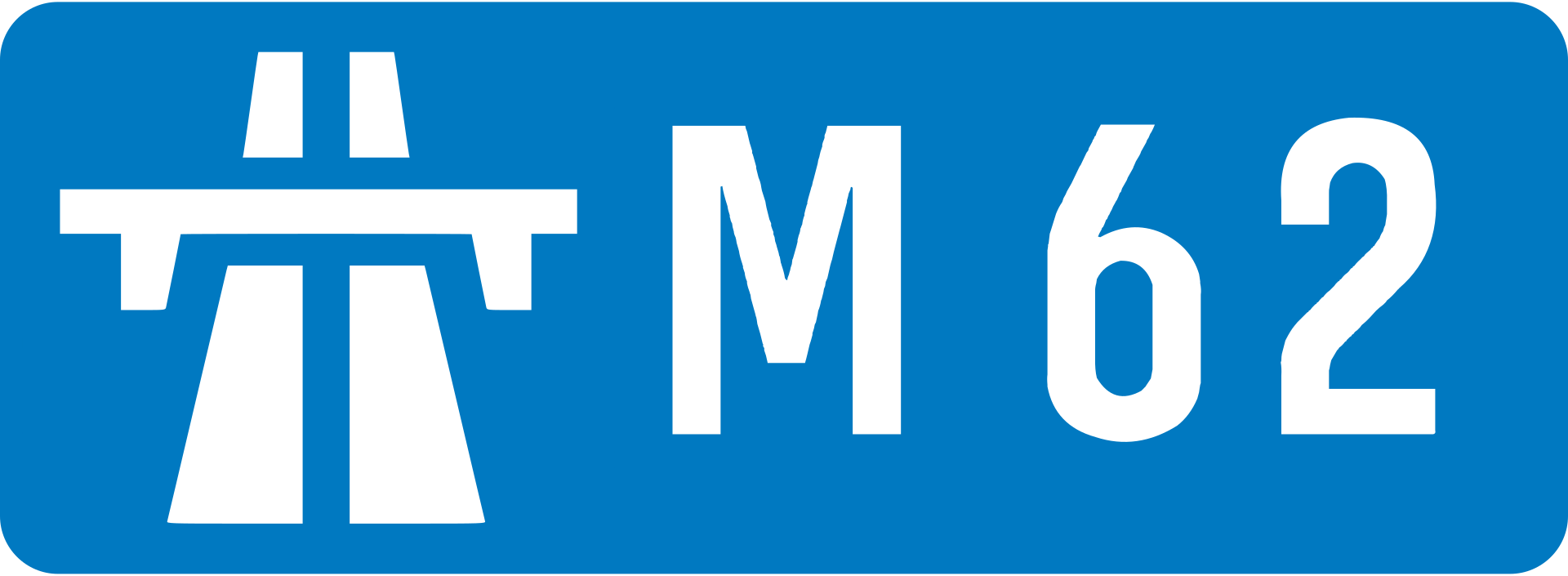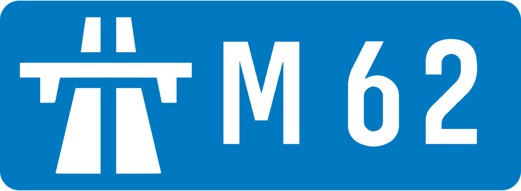 The M62 is a 107-mile-long west–east trans-Pennine motorway, connecting Liverpool and Hull via Manchester, Bradford, Leeds and Wakefield; 7 miles of the route is shared with the M60 orbital motorway around Manchester.