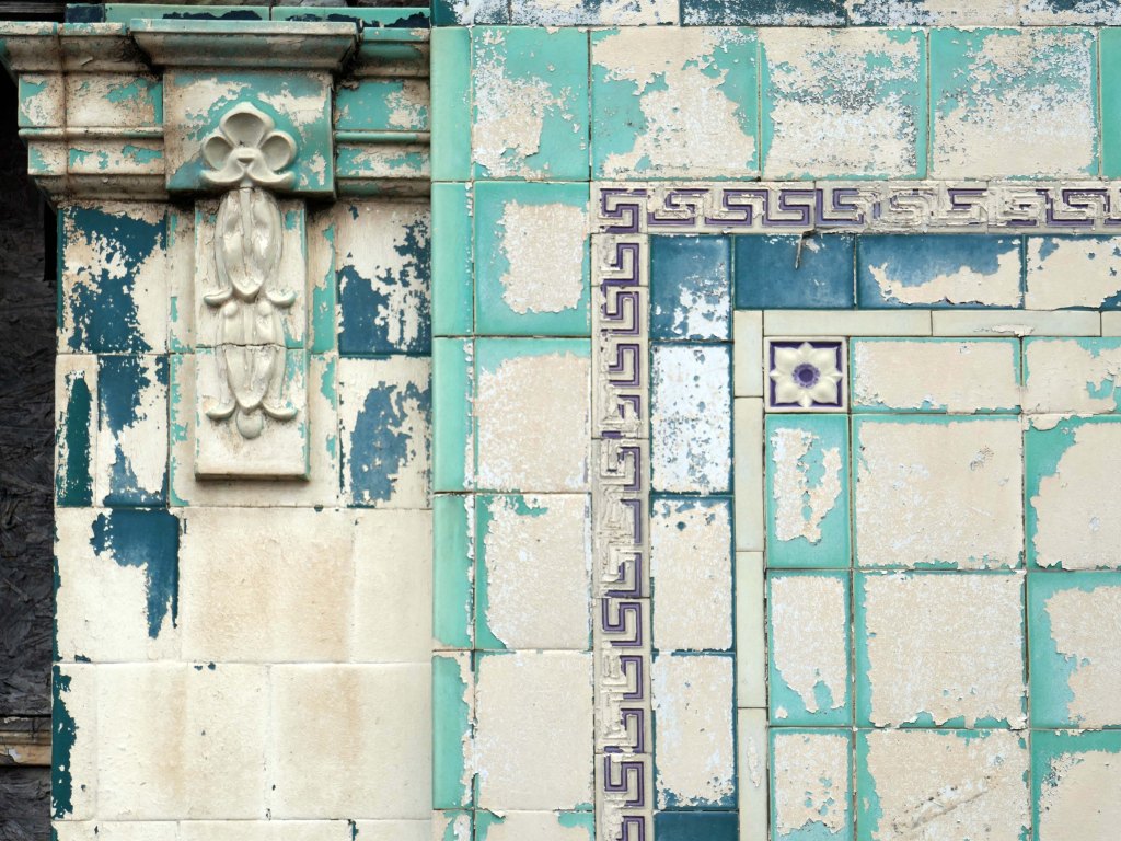 The panels, on the rear elevation, were by Walter Hudspith, then Senior Lecturer at Sunderland College of Art. They were the first examples of public art to be commissioned in Sunderland and were made for the building’s 1962-64 extension; they represent music, art and literature. The panels were restored by Lesley Durbin at the Jackfield Conservation studio in 2000-01.