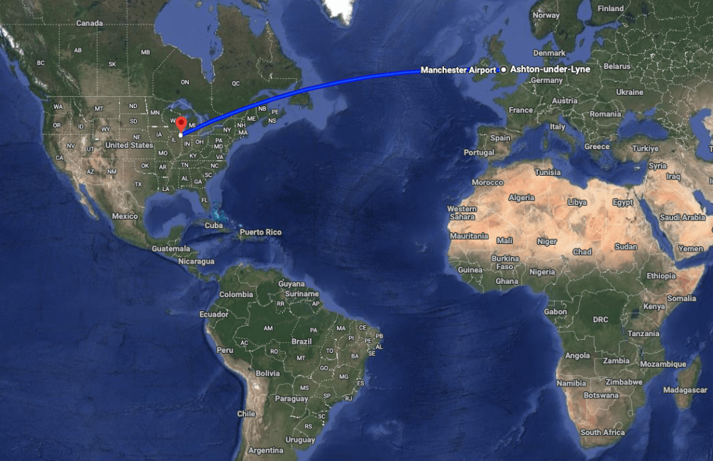 It’s four thousand, three hundred and fifty one miles from Ashton under Lyne to Mississippi.