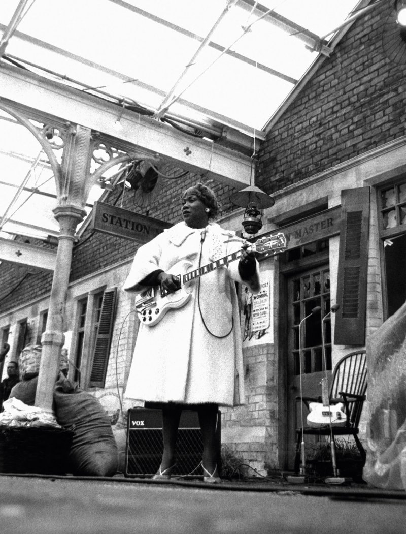 The musicians boarded the ‘Blues and Gospel Train’ at Central Station. When the train reached Chorlton everyone alighted and the gig took place. right on the platform. Whilst waiting for the train to turn up it poured with rain, giving Sister Rosetta a chance to play an impromptu ‘Didn’t it Rain?’