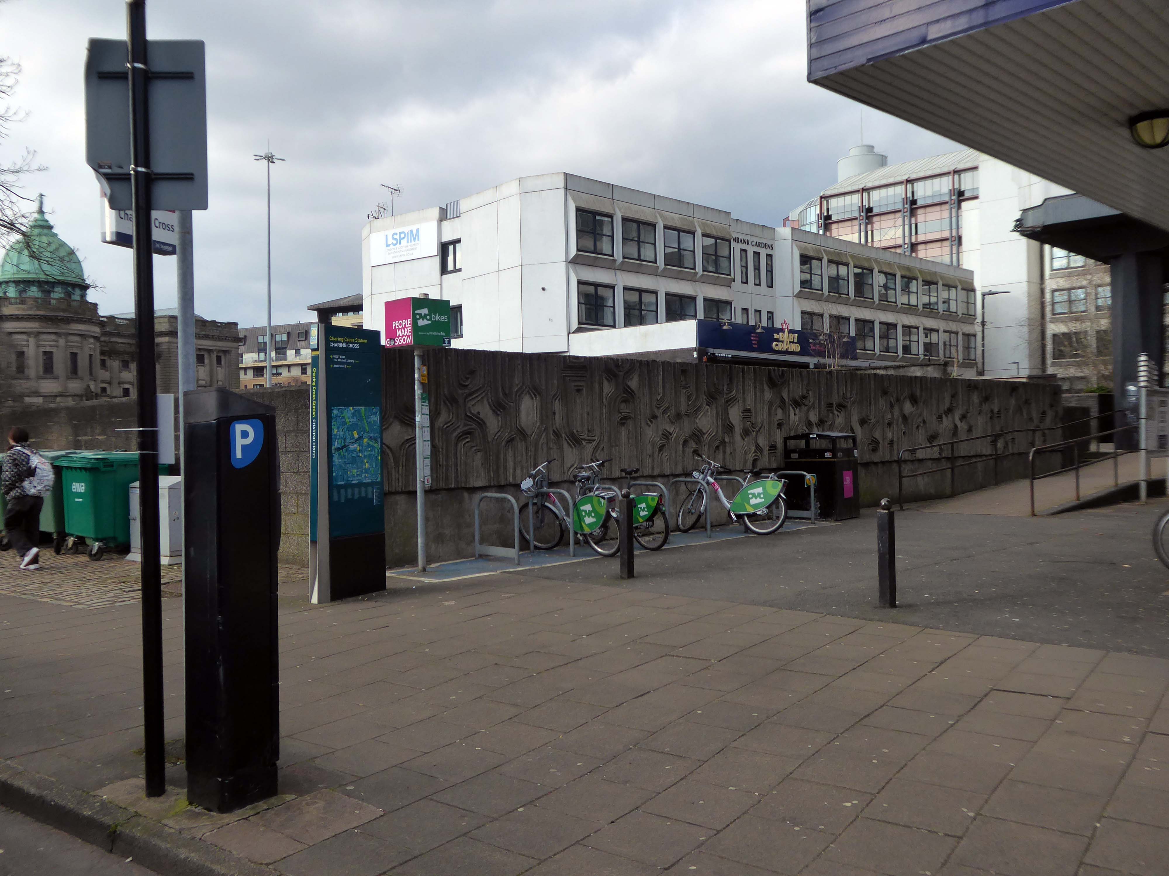 In 1968 it was demolished due to it being in the path of the new Glasgow Inner Ring Road, and the surface access to the station was moved to its eastern end, with a new surface building constructed as part of the Elmbank Gardens office complex in 1971 – the building was designed by the Richard Seifert & Partners.