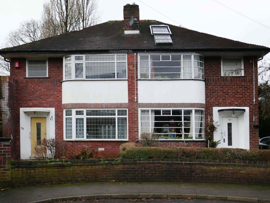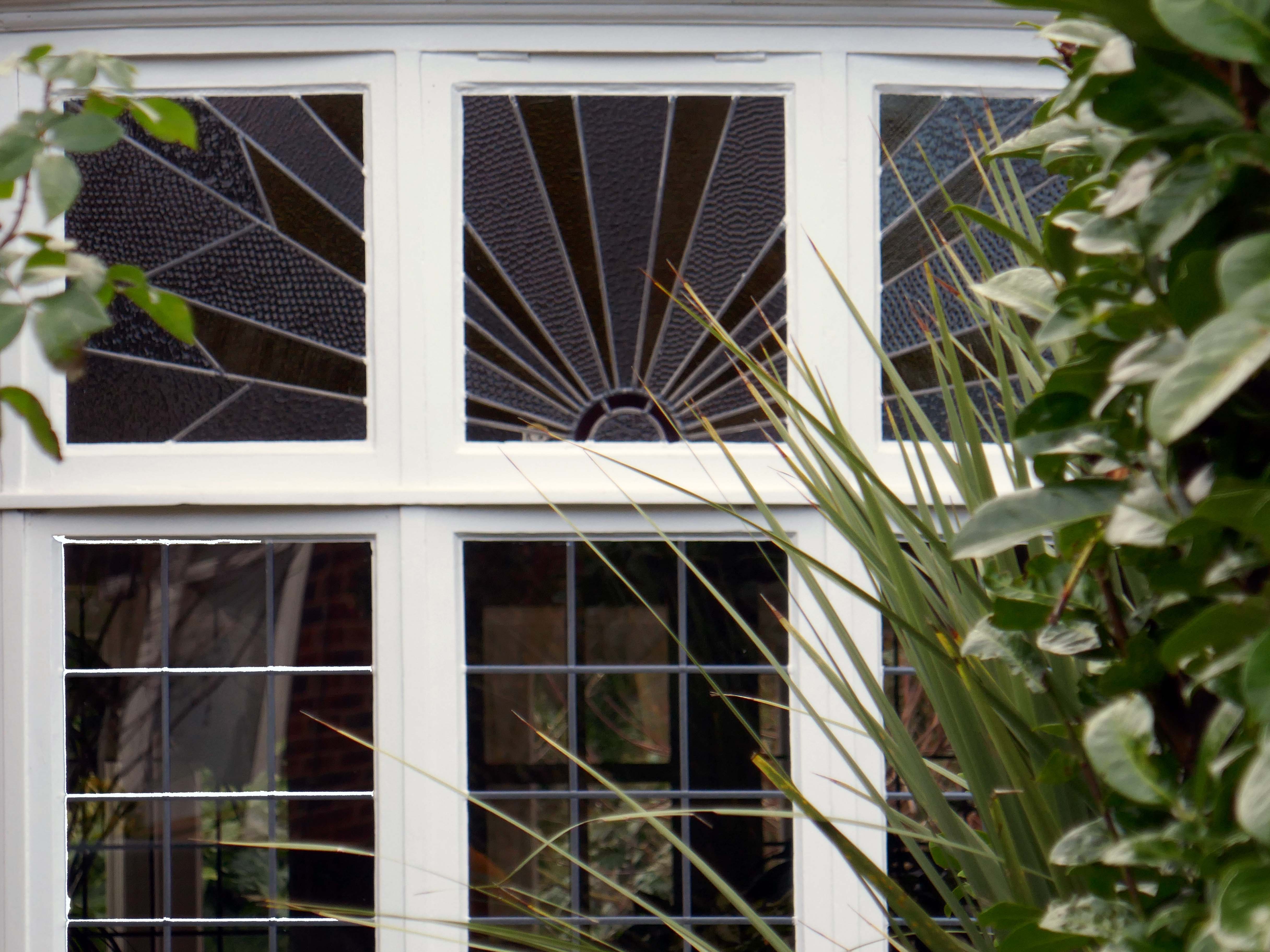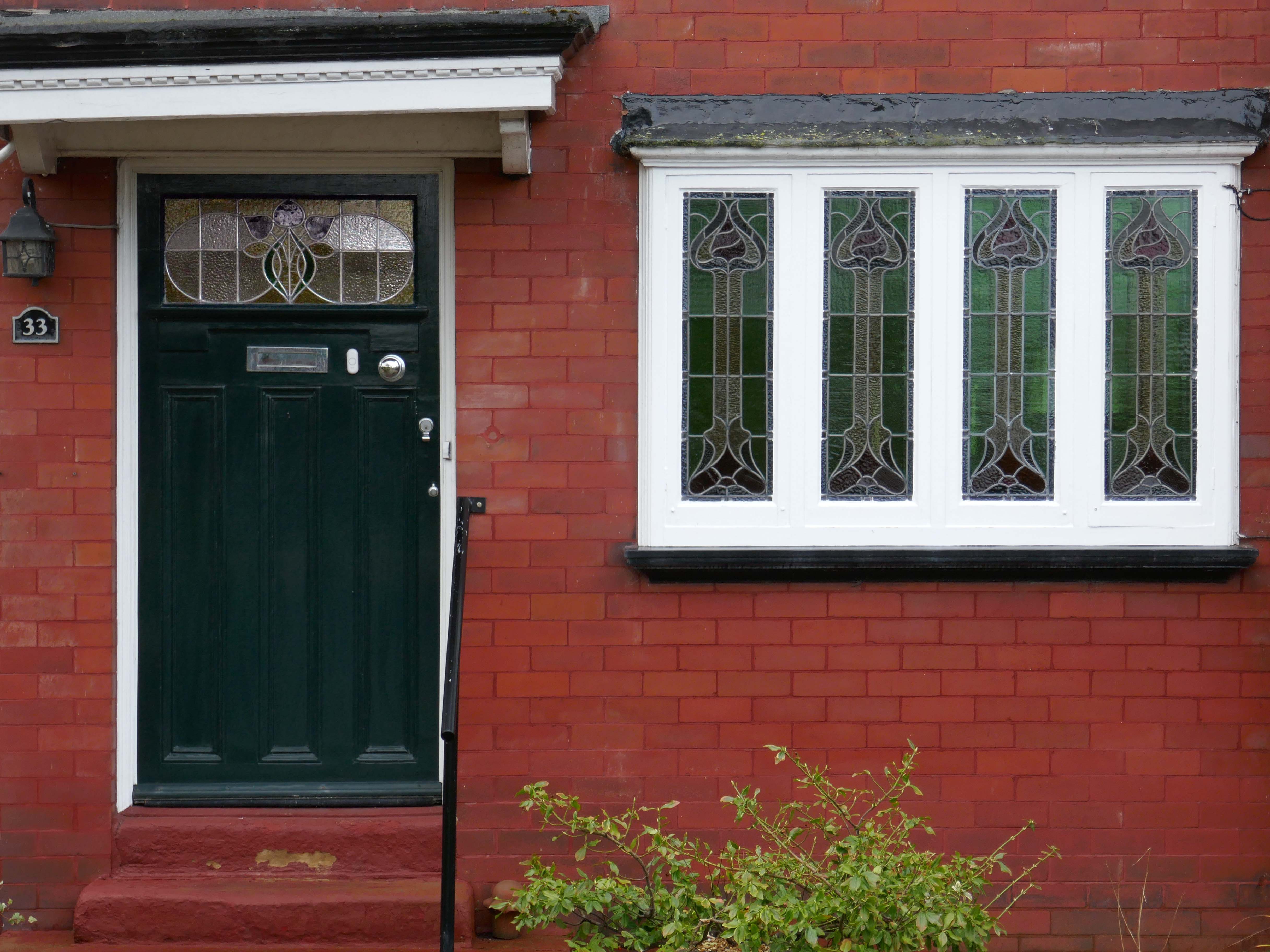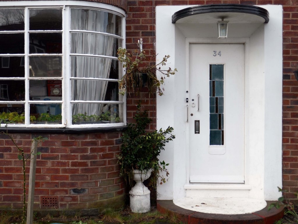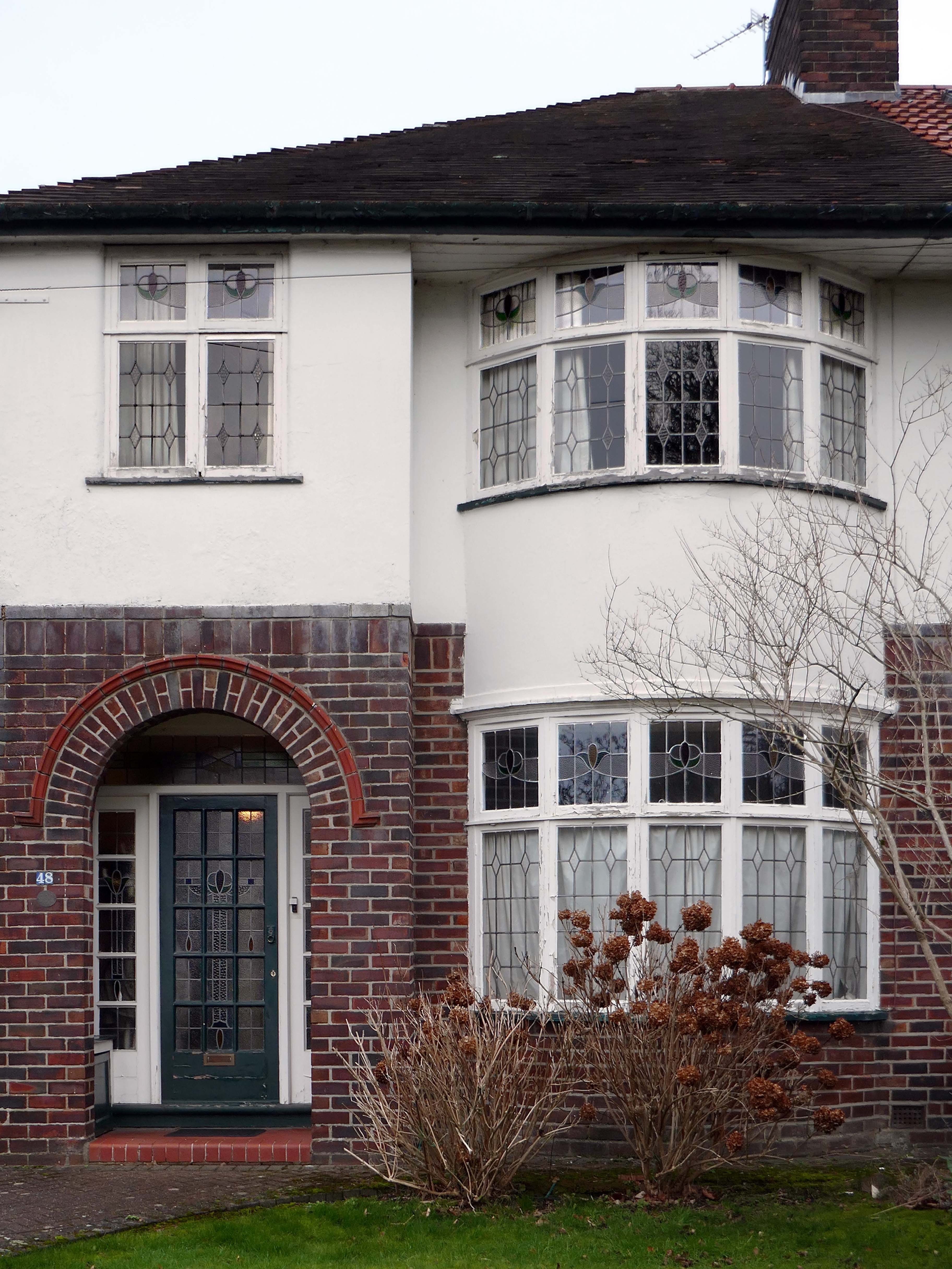 Within such a tight network of suburban streets, restrained Modernism sits alongside the traditional semi, the grand villa and humble abode. A smattering of stained glass and an original door here and there.