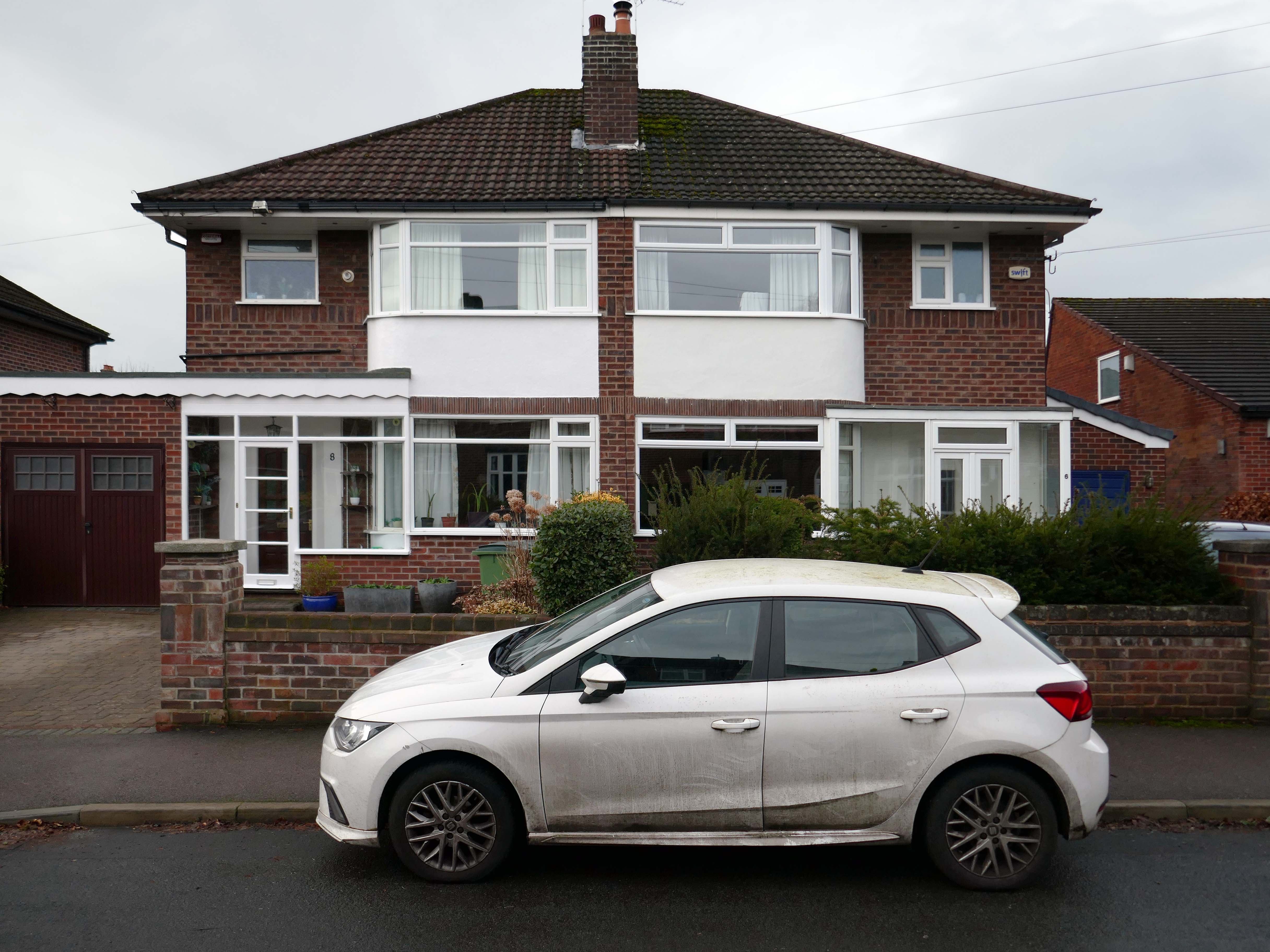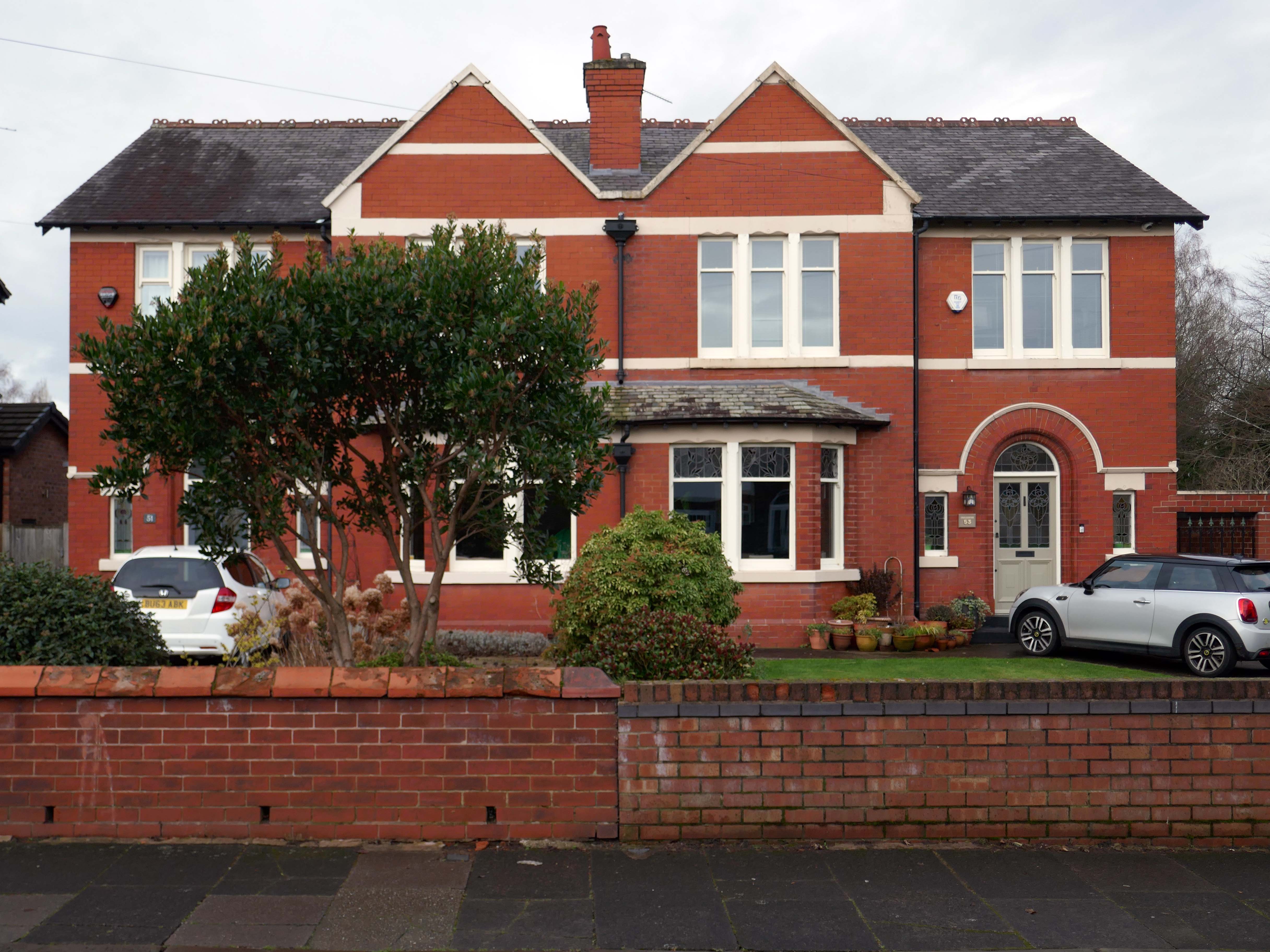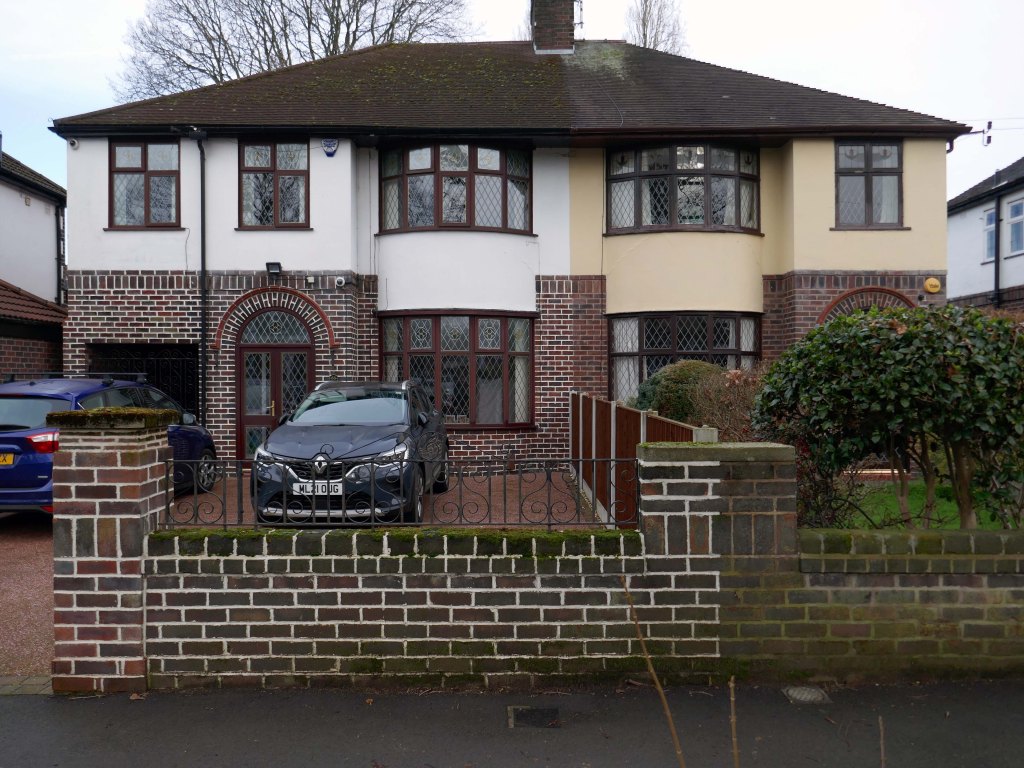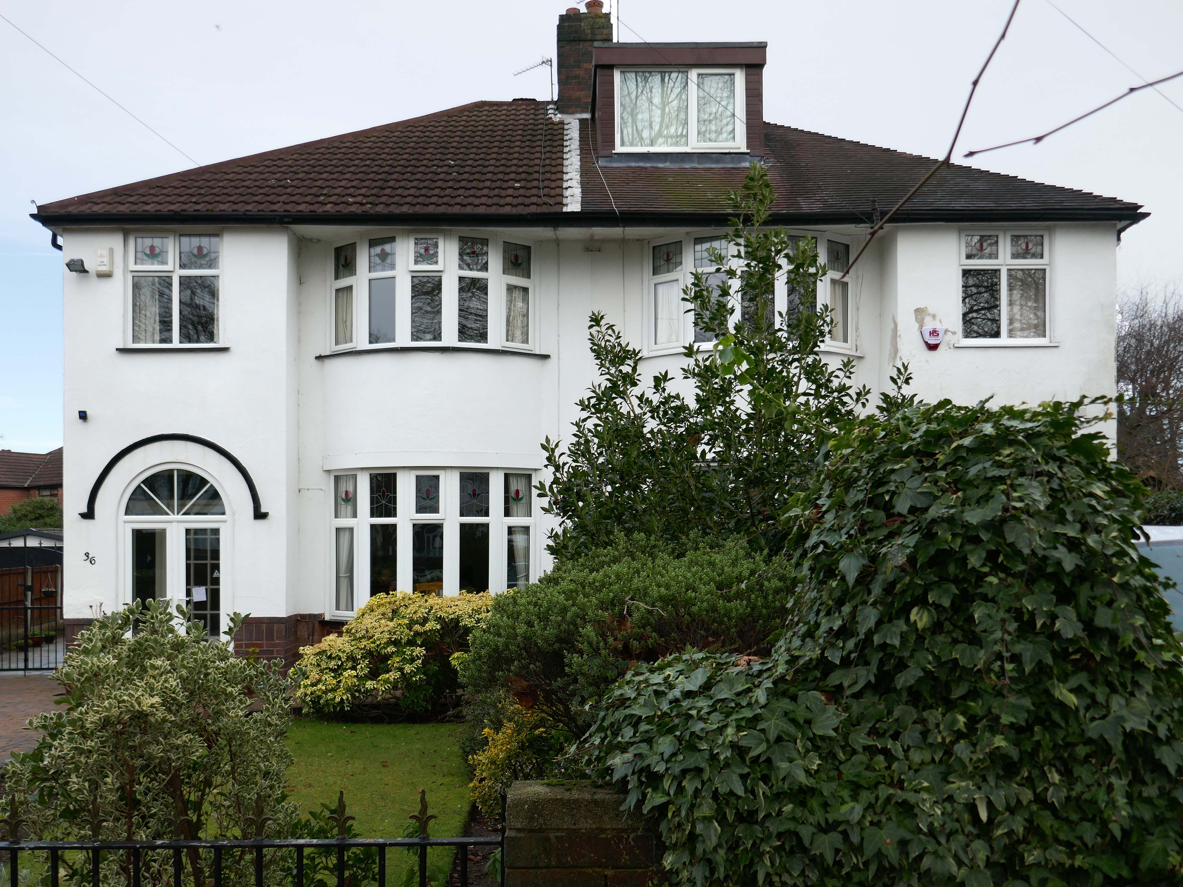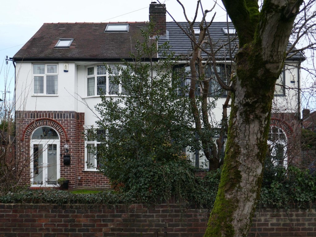 Within such a tight network of suburban streets, restrained Modernism sits alongside the traditional semi, the grand villa and humble abode. A smattering of stained glass and an original door here and there.