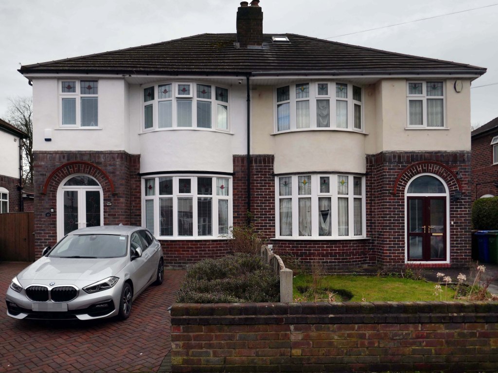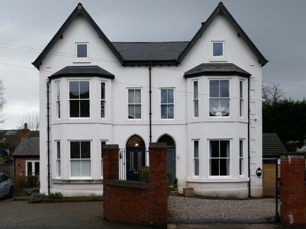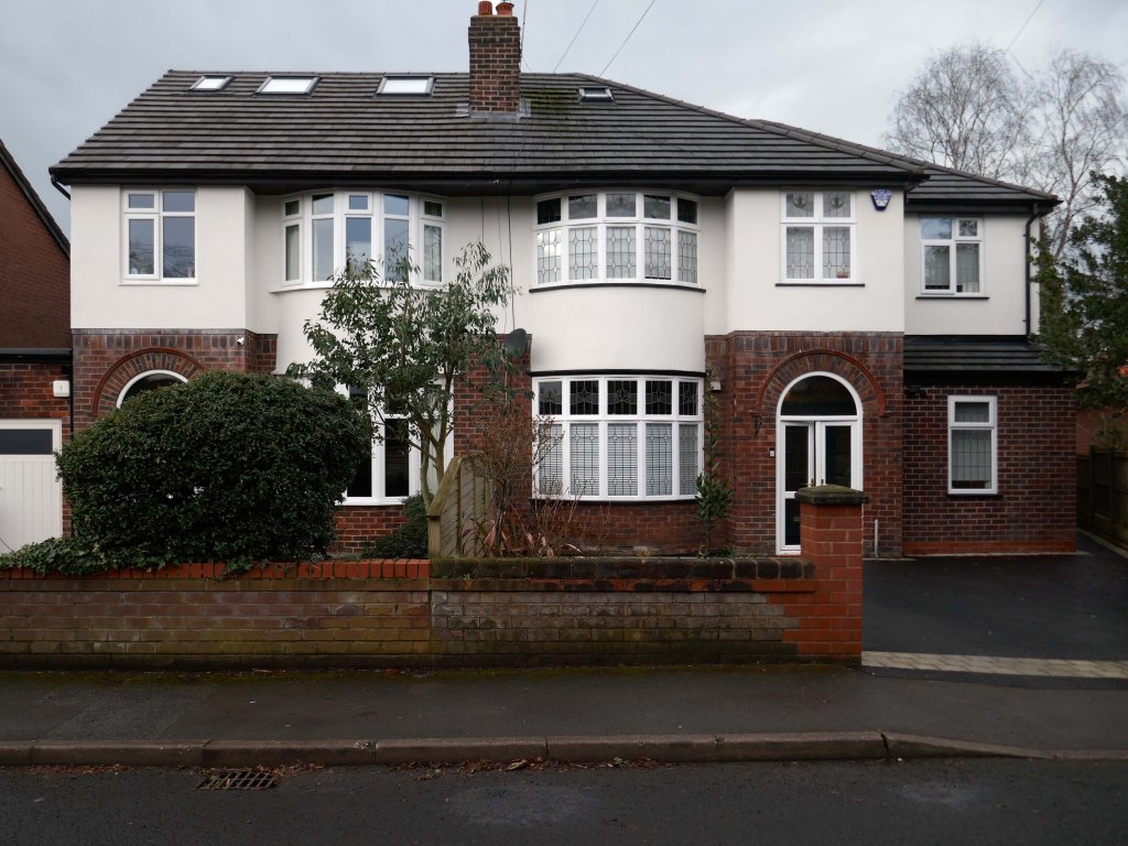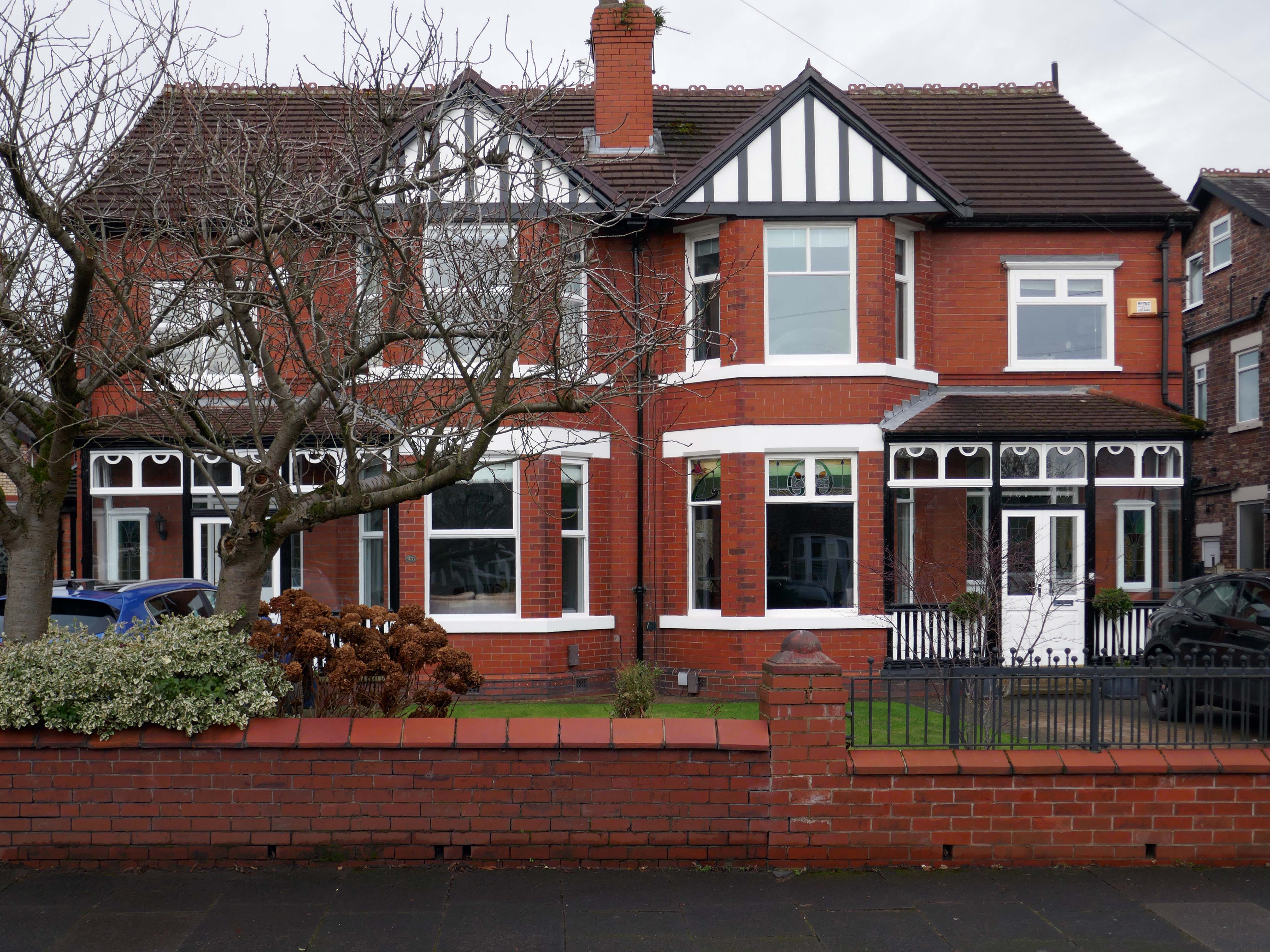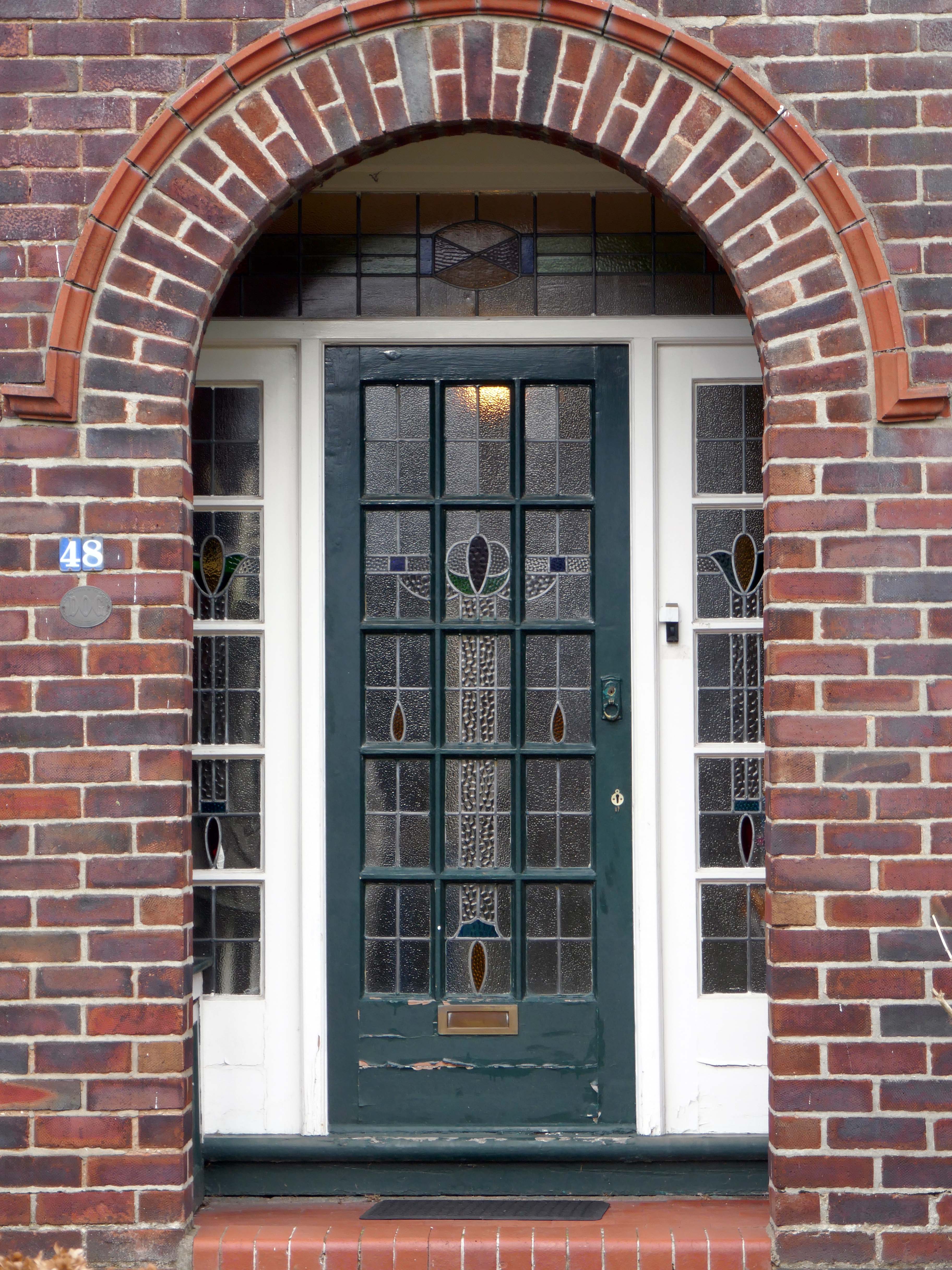 Within such a tight network of suburban streets, restrained Modernism sits alongside the traditional semi, the grand villa and humble abode. A smattering of stained glass and an original door here and there.