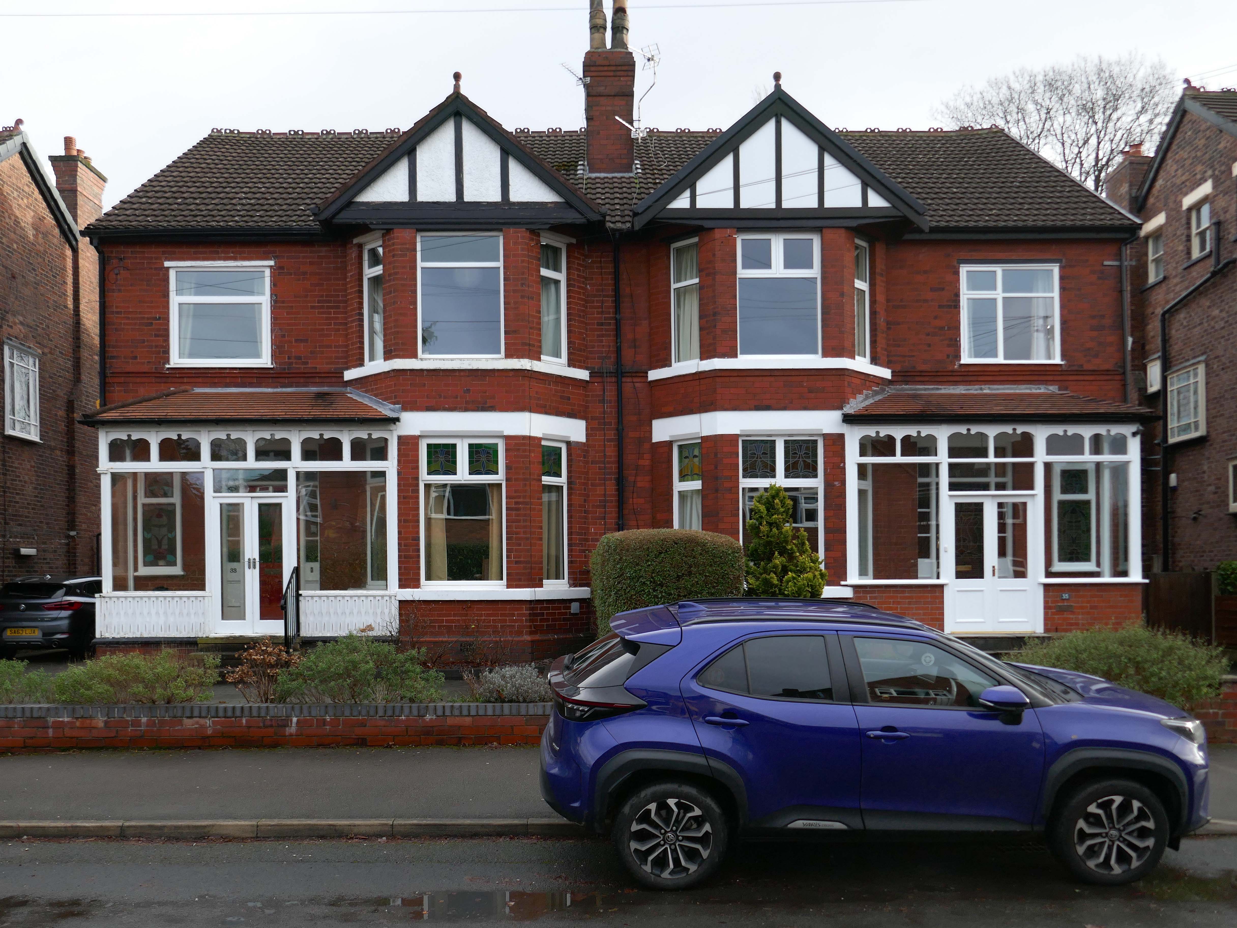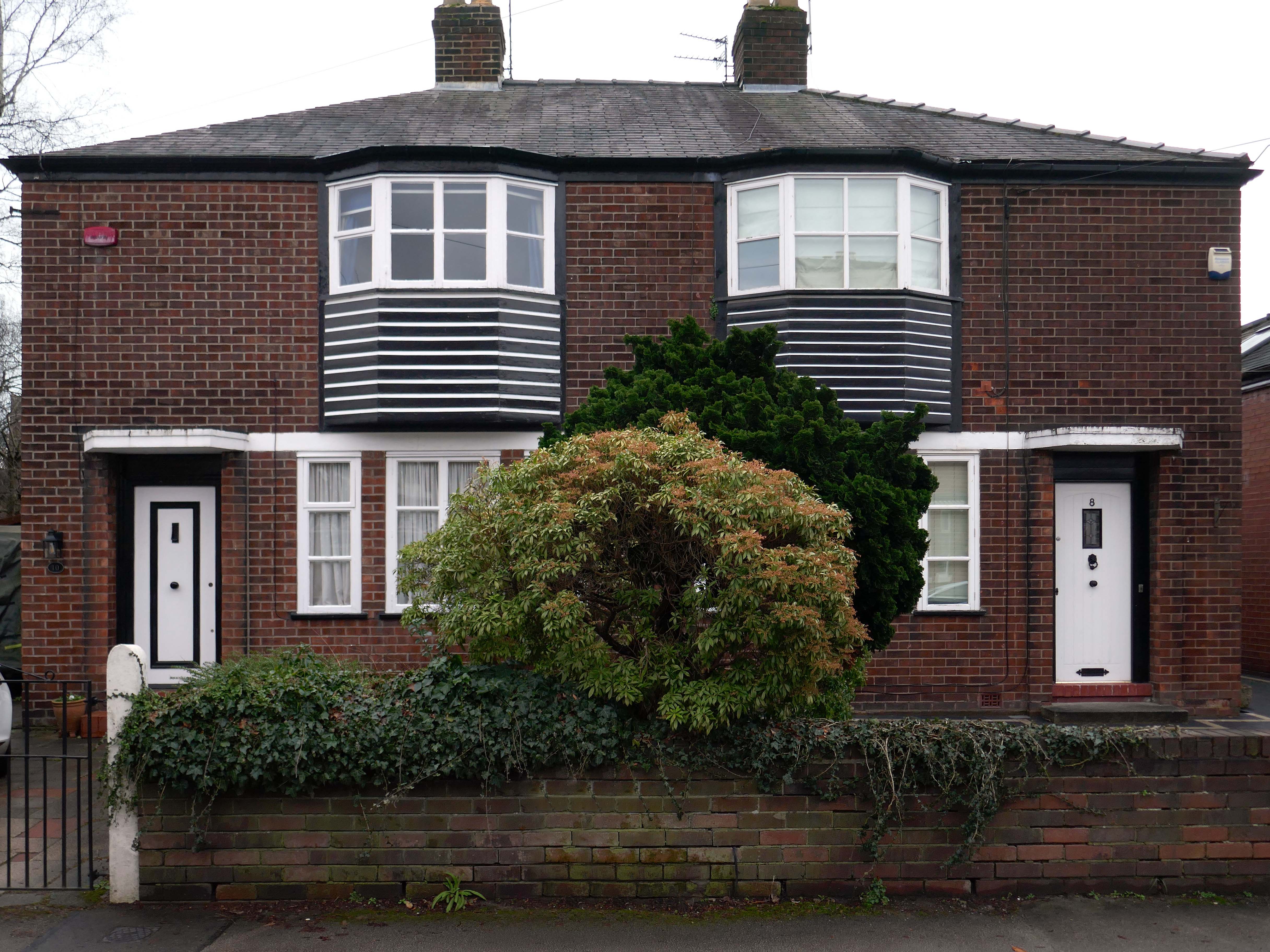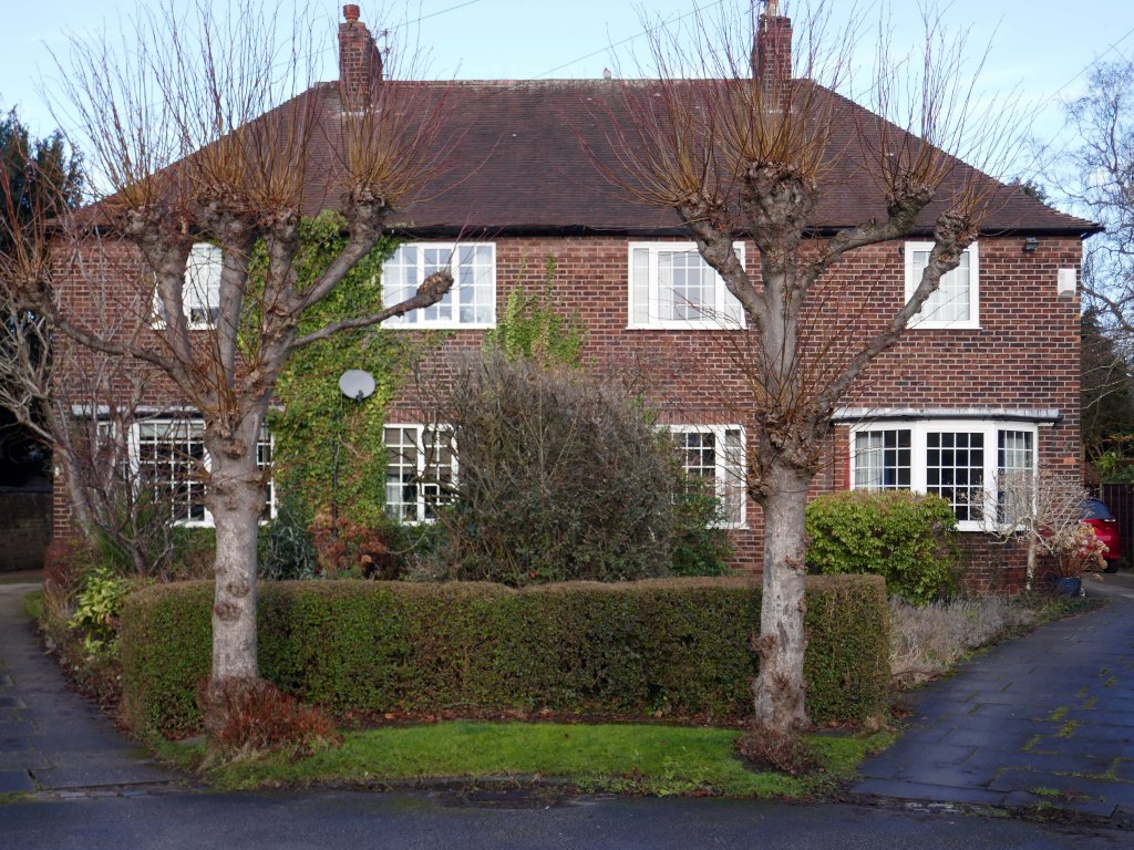 Hesitant examples of Arts and Crafts and hints of Tudorbethan, subtle shades of sub Lutyens, the odd Art Deco detail.