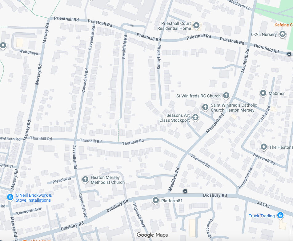 Taking in Thornfield Road, Priestnall Road, Beaminster Road, Mauldeth Close, Sunnyfield Road, Freshfield Road, Cavendish Road, Pleachway, Ranworth Avenue, Thornhill Road and Mersey Road.