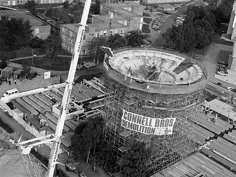 There was a degree of uncertainty surrounding the demolition of the pre-cast structure of the Tower as it had been subject to deterioration since erection. At Tender stage, the thirty two petals forming the bowl of the water tank were described as each individually being restrained by wire ropes to the central core. Upon opening up the works, it was found that the stated thirty two restraining Ropes had only been used during the construction of the bowl and had been removed, therefore the petals of the tank were gaining support from the ring beams.