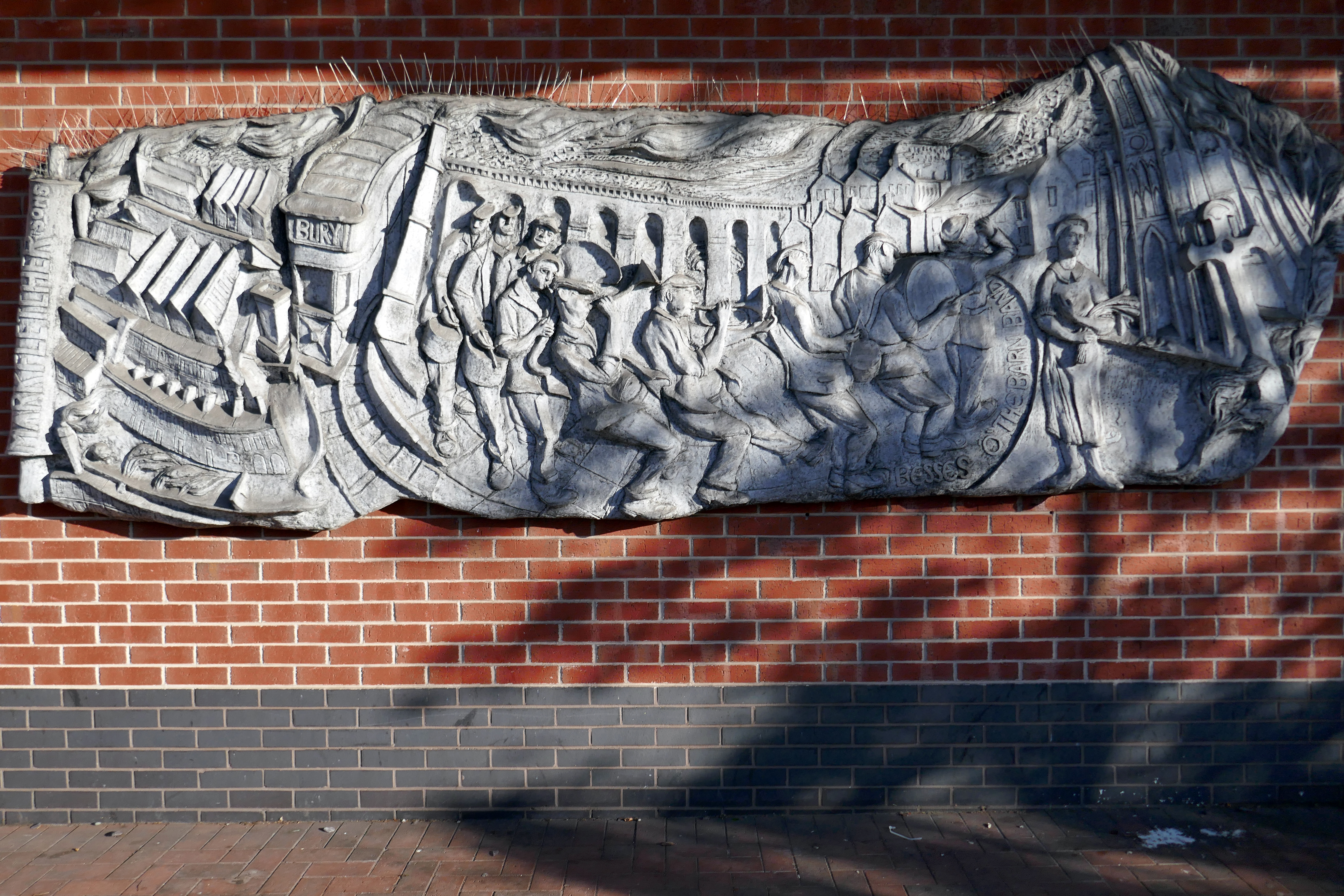 Tucked away in a minor maze of retail a piece of figurative commemorative public art by Glynis Owen Jones, entitled Stafford Faces.