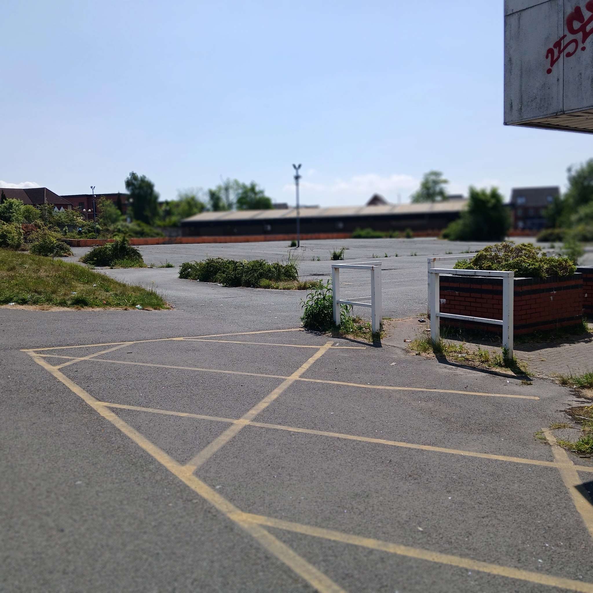It is currently being reshaped to provide a line of desire twixt the Civic and Cultural areas, from the town centre. There are still the remnants of homes, shops and a pub amongst the demolition – almost inevitably there is new paving.