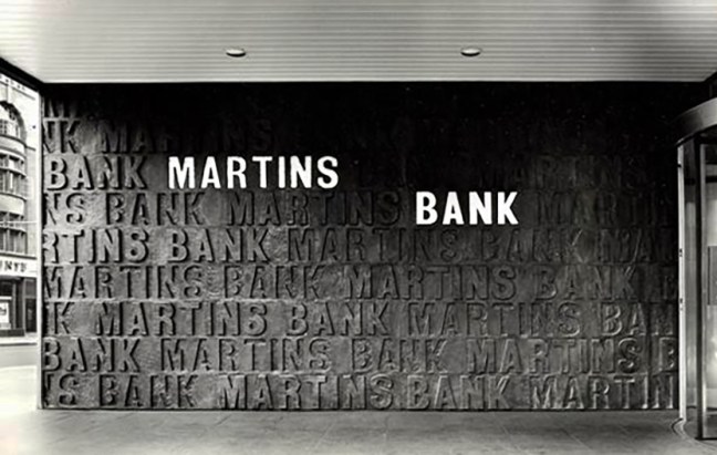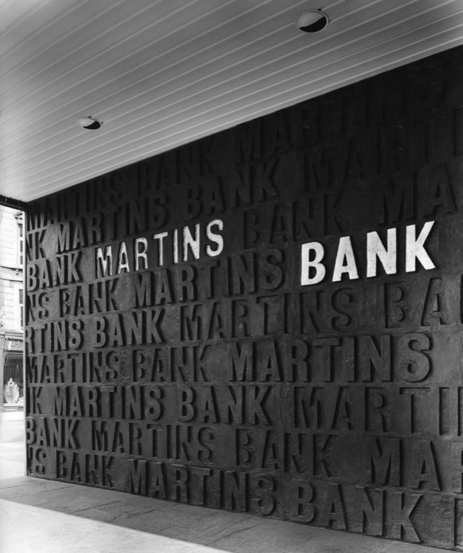 This post war infill has that distinctive Festival of Britain feel, original metal window frames, Portland stone and blueish slate like panels.