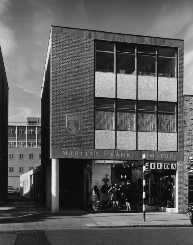 Over the road a zig-zag Halifax Building Society branch, tightly contorted by its corner footprint.