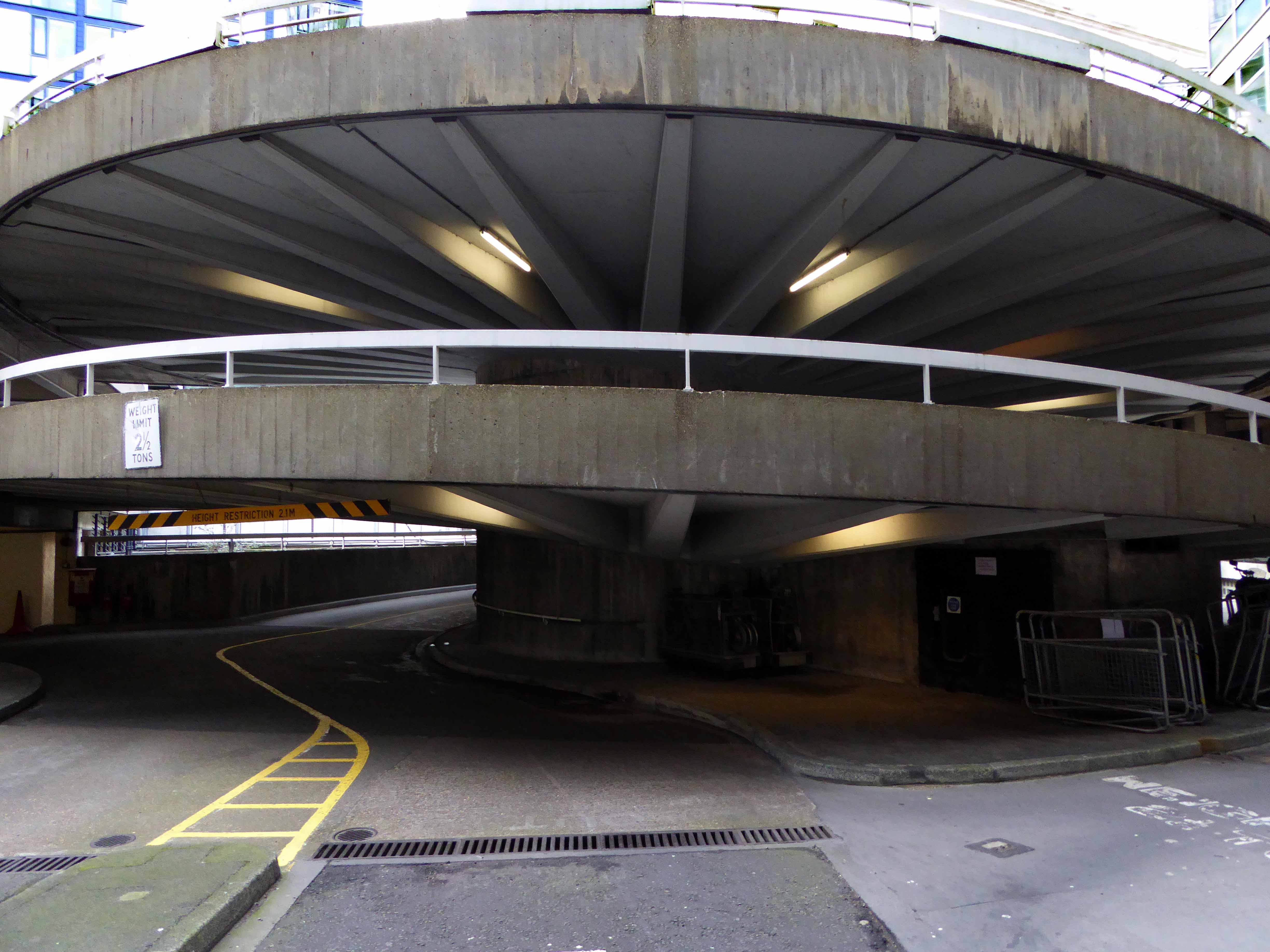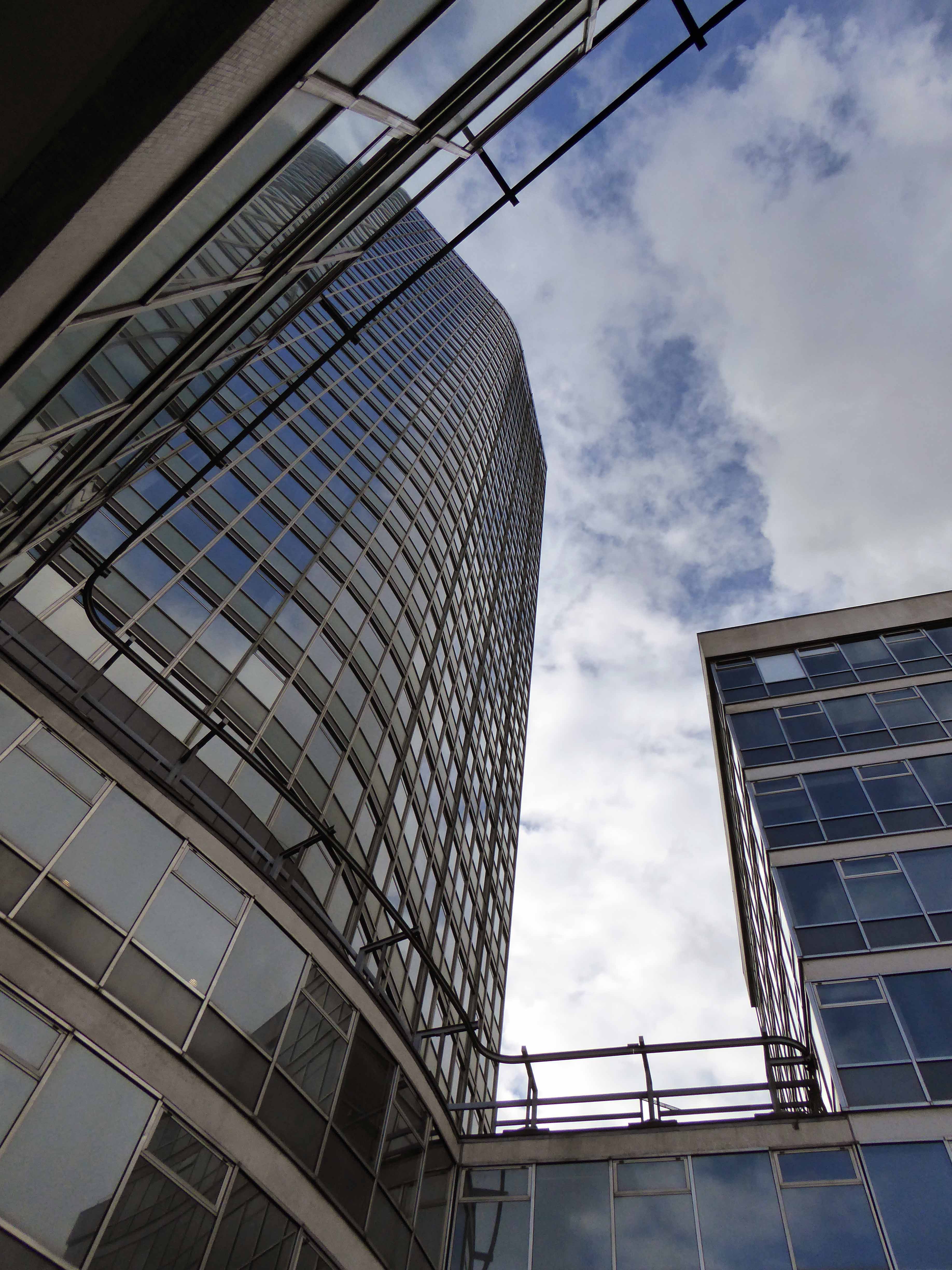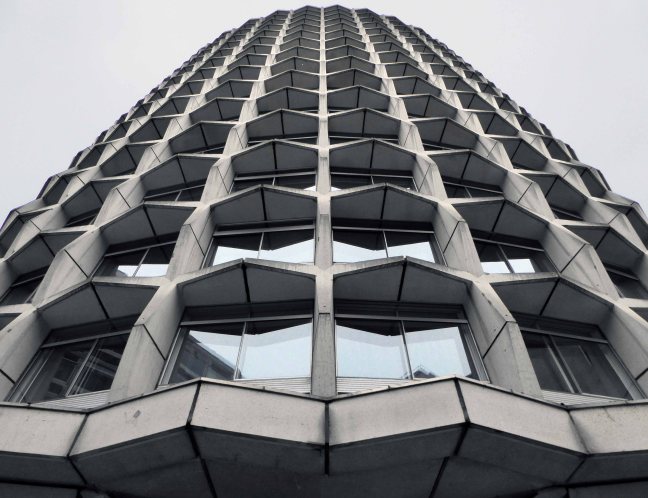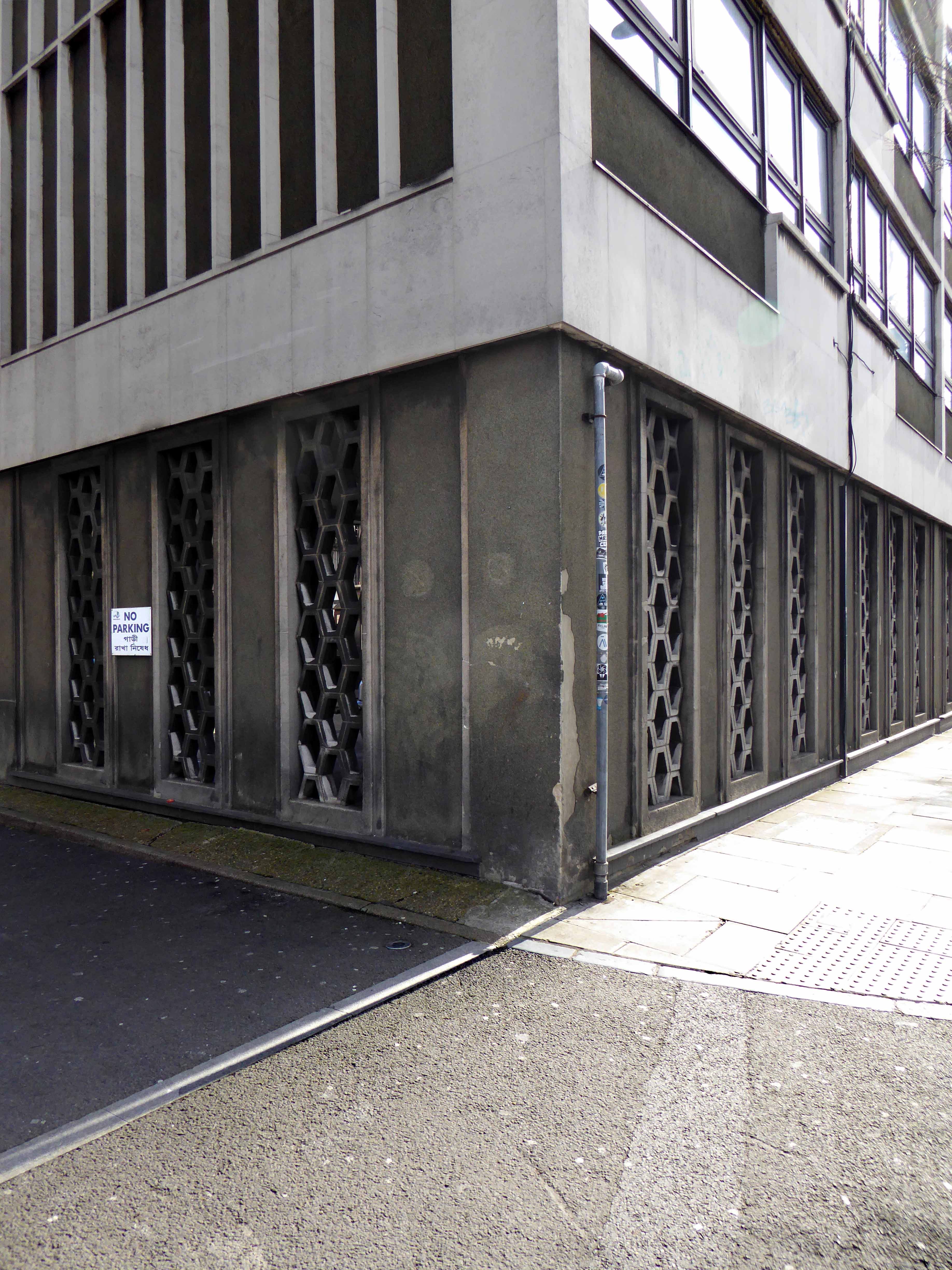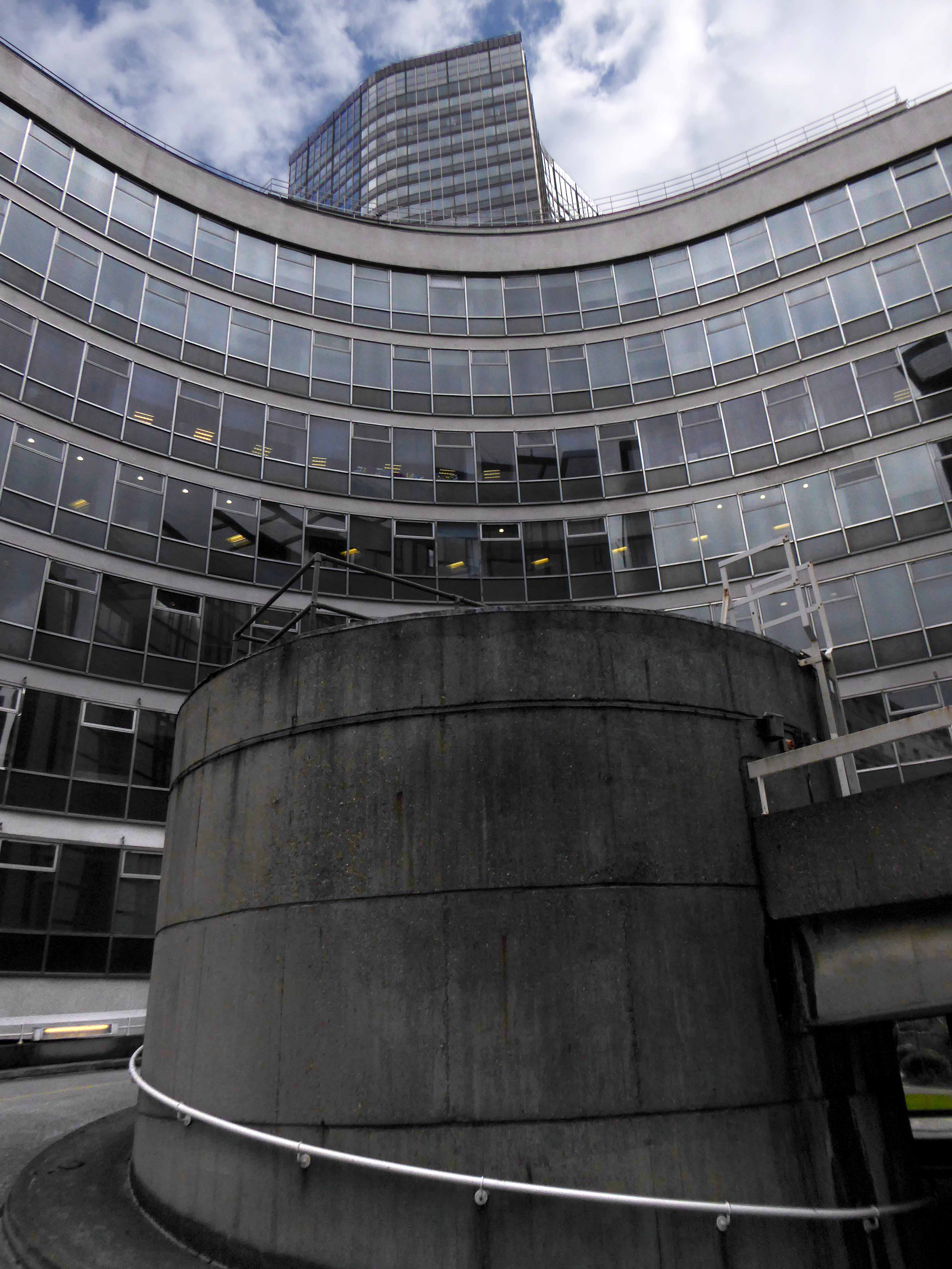 Richard Seifert’s Space Tower what a pleasant surprise, as you veer slightly from Kingsway and collide happily with One Kemble Street, first meeting the smaller slab of Aviation House, then the conjoined concrete cylinder – the perfect none identical twin.