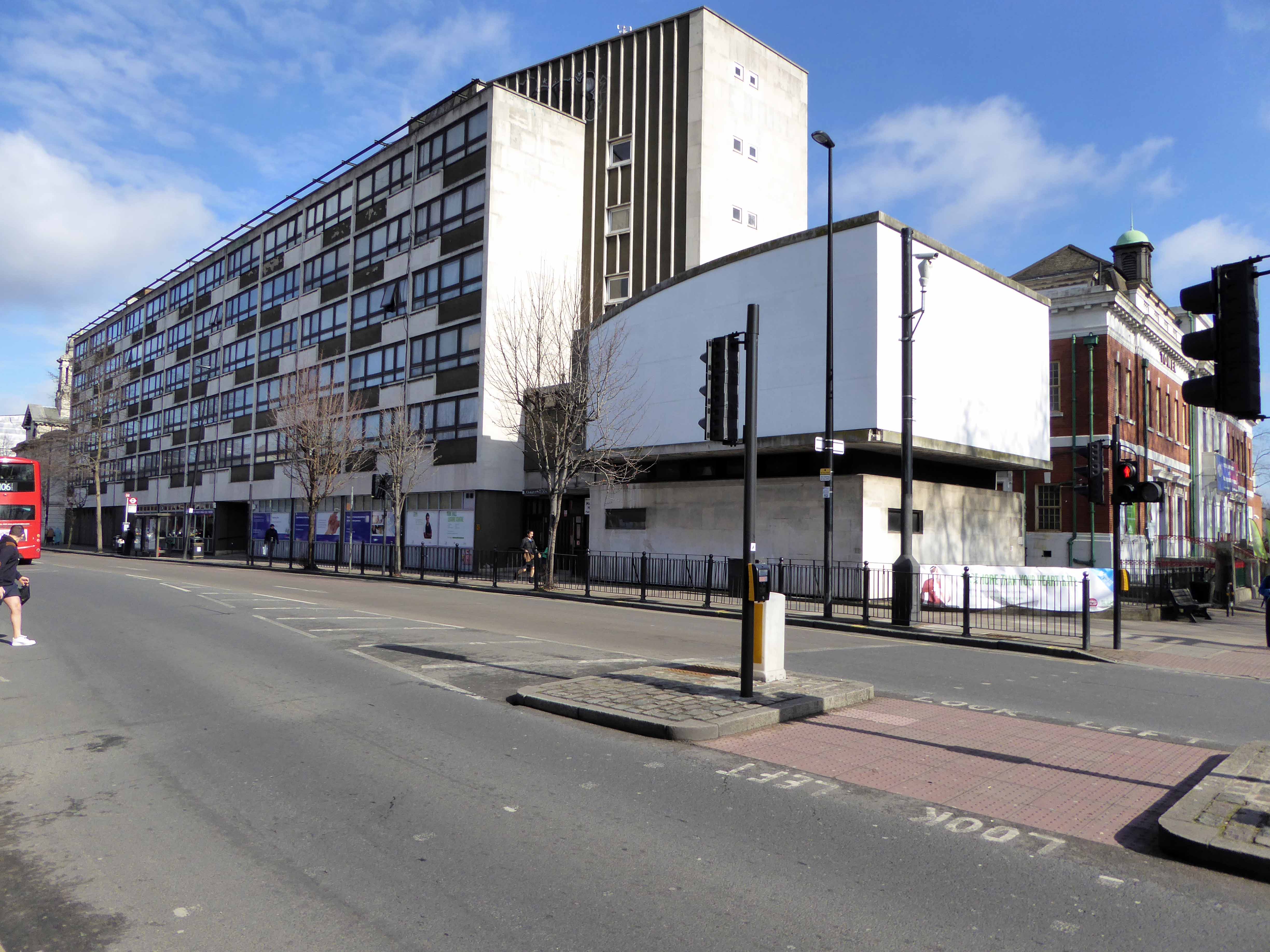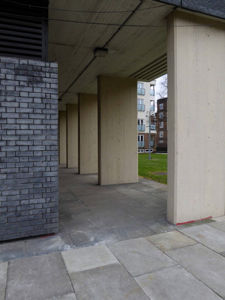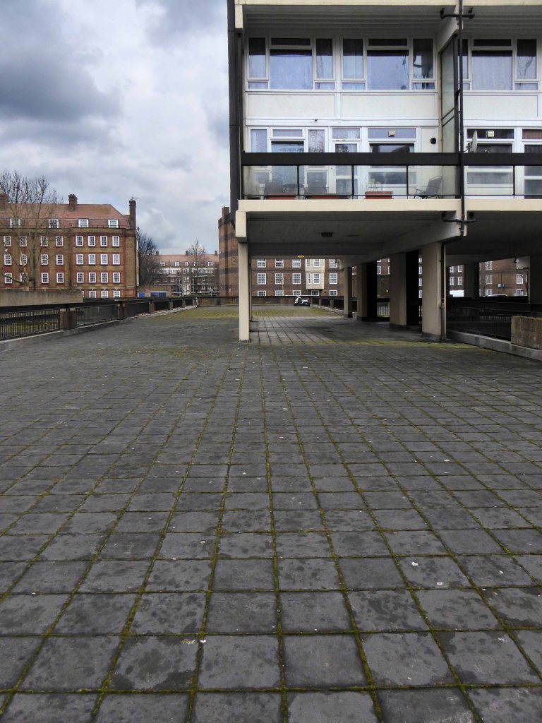 A mix of market, shops, Festival pub, warm cream London brick terraces and low rise, later tower blocks, schools, churches and open grassed communal areas. On a cold and getting colder late winter’s day, a smattering of residents went purposefully about their business.