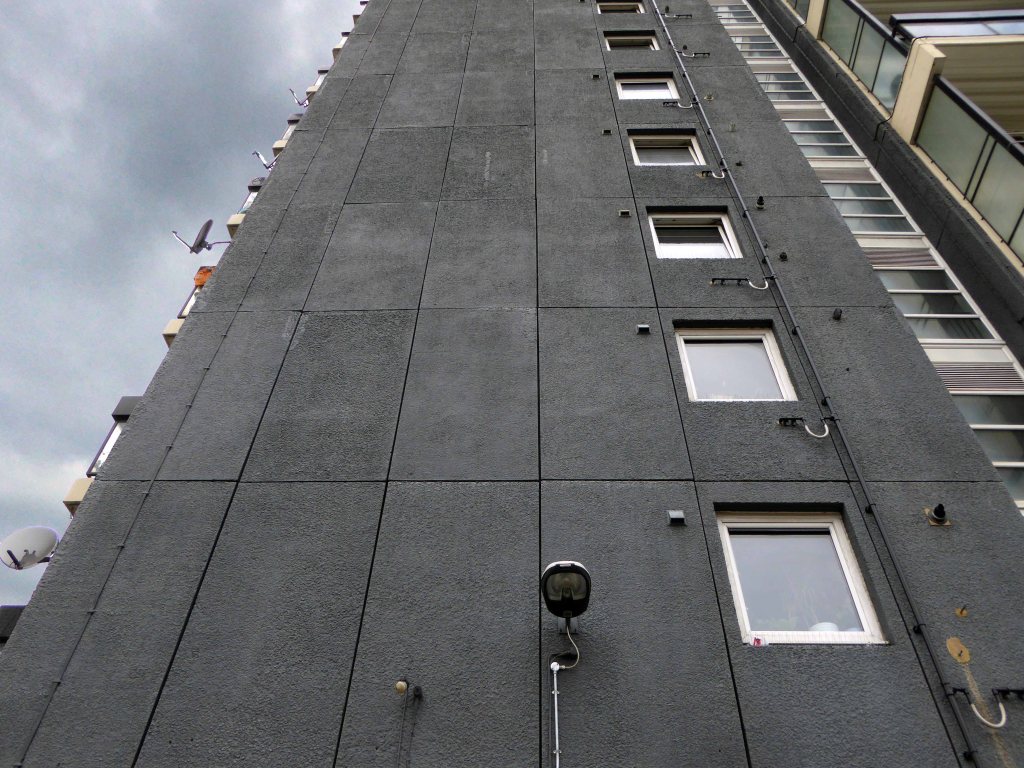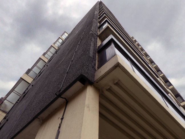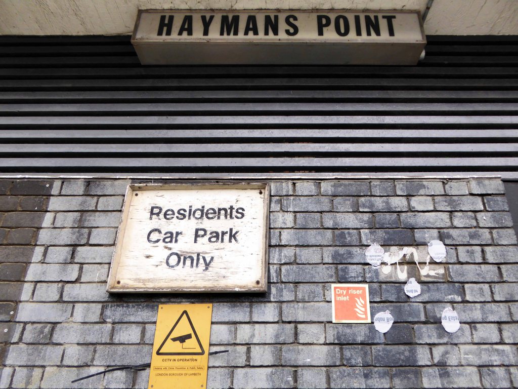 Haymans Point is an imposing, concrete, council estate tower block in the north of Lambeth, part of the Vauxhall Gardens Estate, which has an active residents and tenants association. The rooftop is fairly restricted in terms of outlook due to its high walls, but some interesting features are available including atmospheric interior corridors, outdoor walkways and underpasses over public spaces.