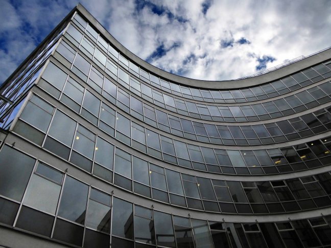 Seifert designed 1 Kemble Street, then called Space House, in a drum shape to reduce the lateral forces that can stress a slab-like block thus reducing the engineering requirements and cutting the cost of construction.