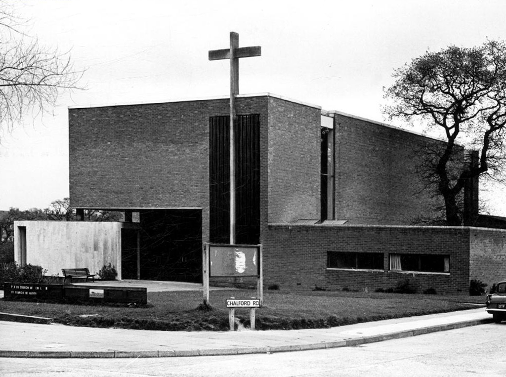 St Francis of Assisi’s Church in Wythenshawe stands testimony to the vigour of its first priest, the Reverend Ronald Pitcher. It was Pitcher who organised a local campaign to raise money for its construction, even before William Greer, Lord Bishop of Manchester, launched a wider appeal to fund churches and vicarages in new housing areas throughout the diocese.