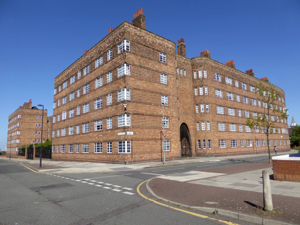 Whilst there are some common stylistic characteristics the Corporation Street Flats are of a more modest order. There are communal areas and a grassed apron, balconies and arched passages.