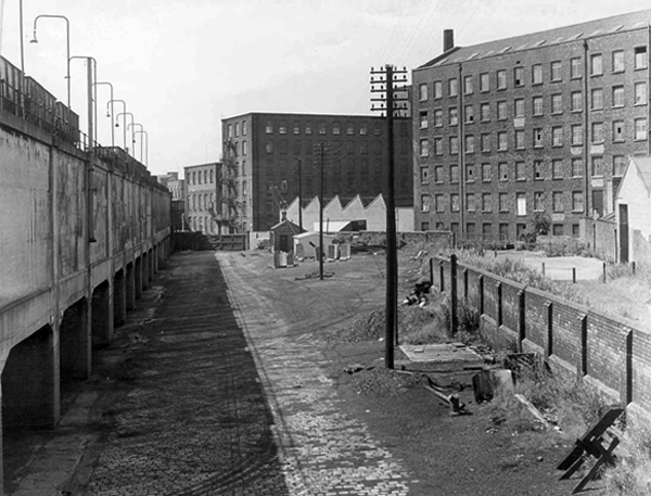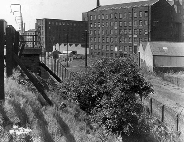 Coal drops and yard at the rear of the Beehive Spinning Mill