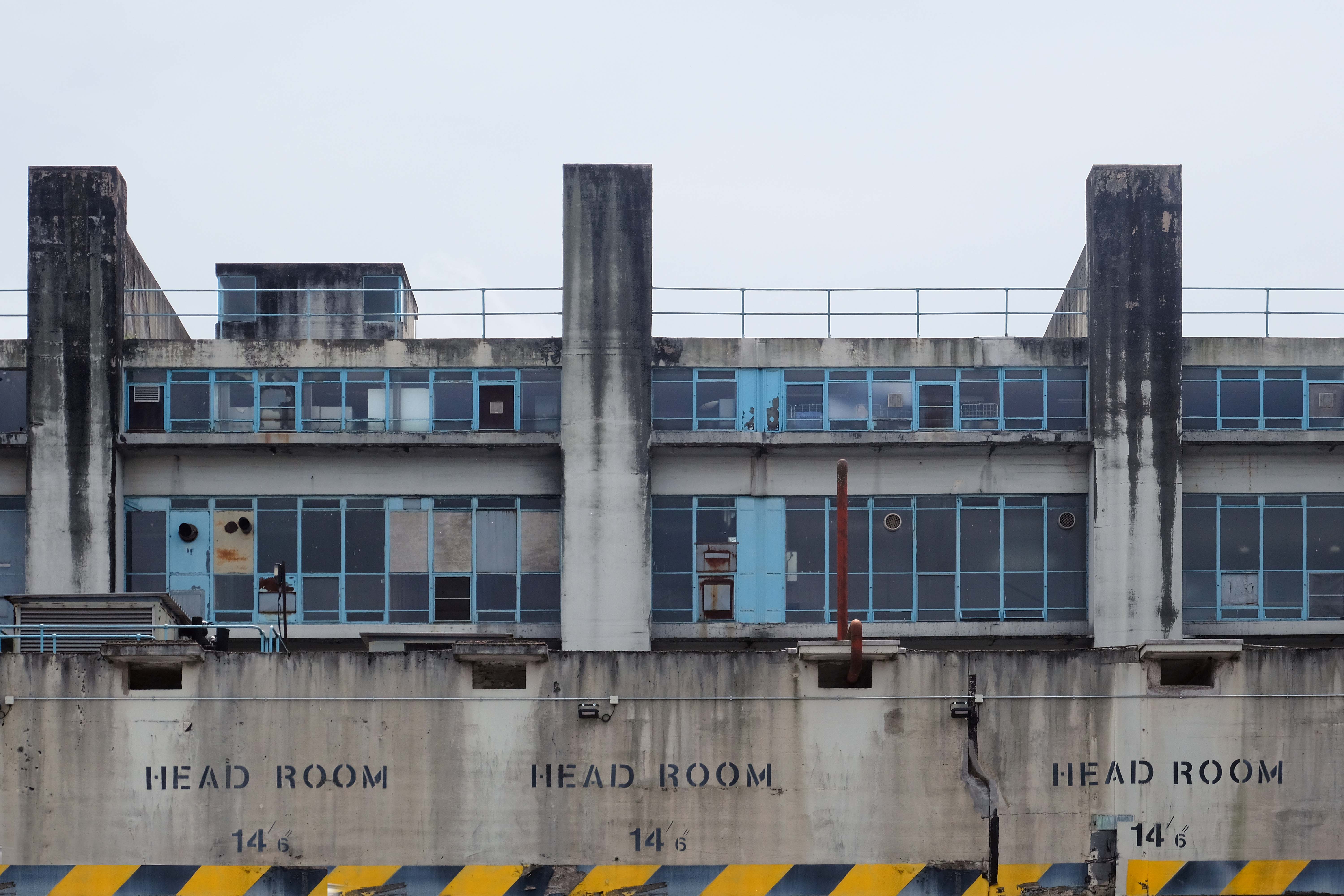 The collision of scale created by the low lying domestic buildings, and the gargantuan industrial nuclear submarine homes, immediately put me in mind of Chris Killip’s photographs.