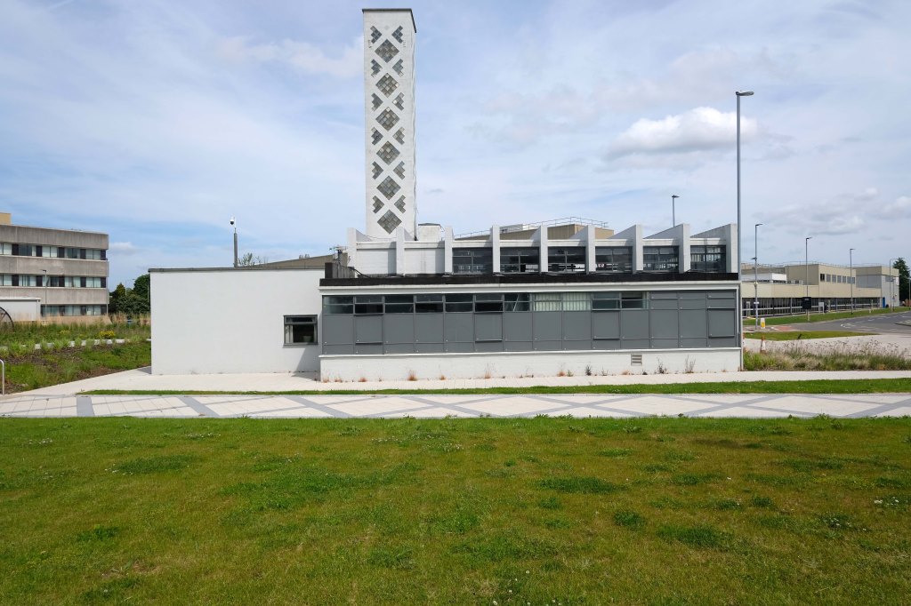Construction took place during the winter and a warming plant heated the concrete constituents before and after mixing, to control the setting time which governs how soon the slip-form shuttering can be moved to the next lift. The concrete was usually kept at 15.6 deg C, though this could be varied to speed or delay setting times.