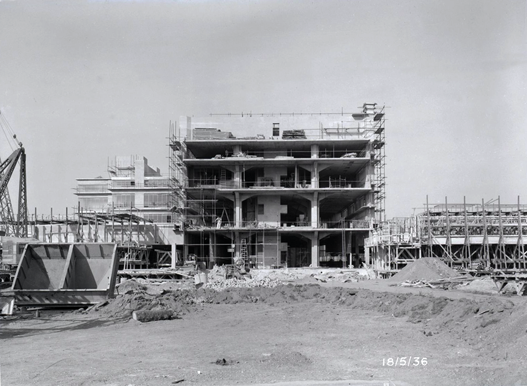 Constructed between 1982 and 1986 by Alfred McAlpine plc for Vickers Shipbuilding and Engineering, DDH was built on land that was created by infilling part of Devonshire Dock with 2.4 million tonnes of sand pumped from nearby Roosecote Sands.