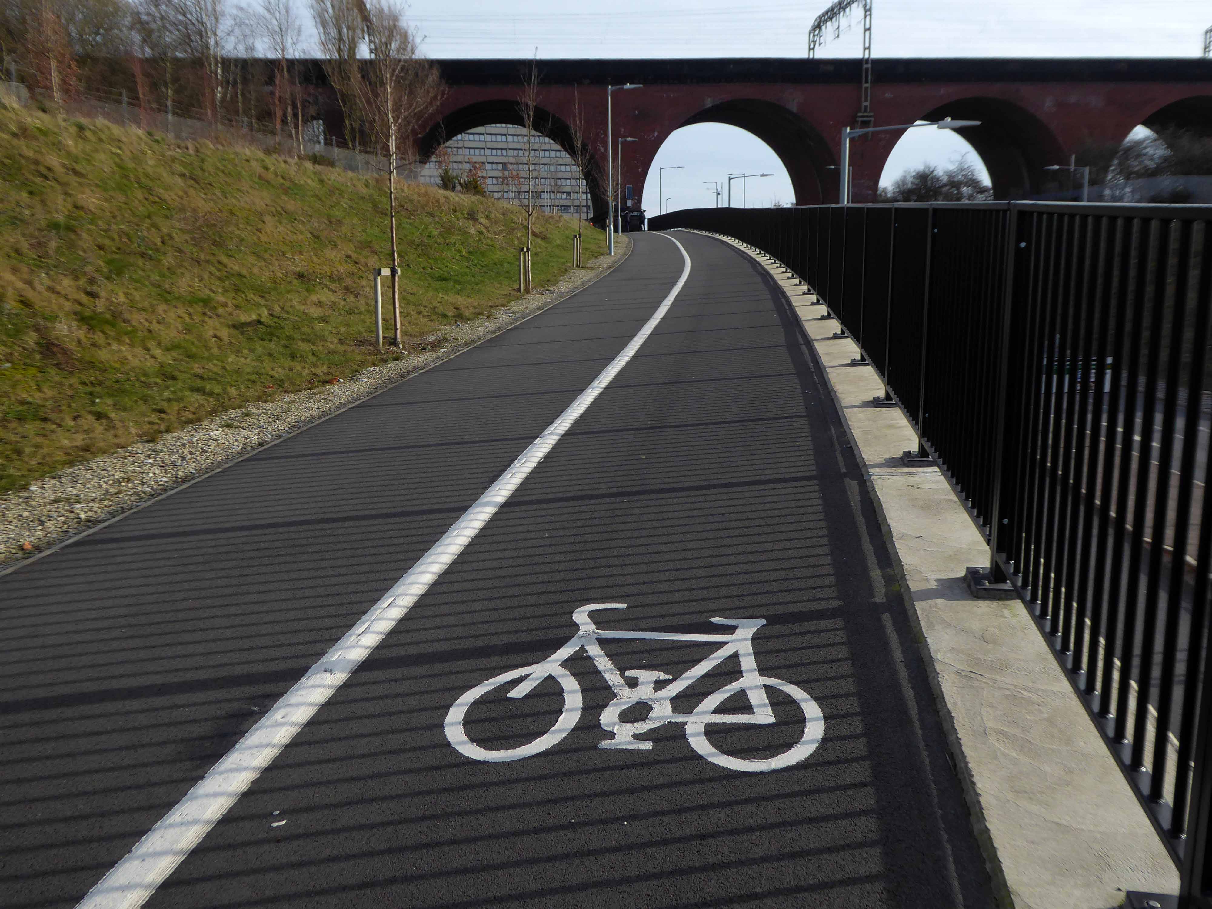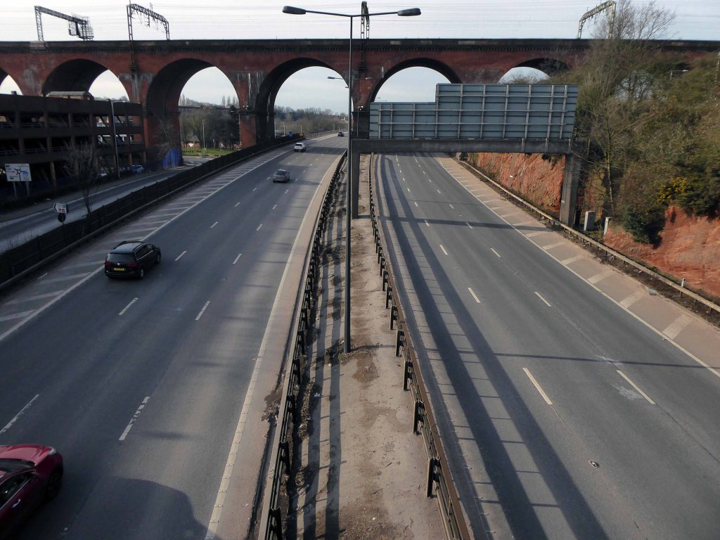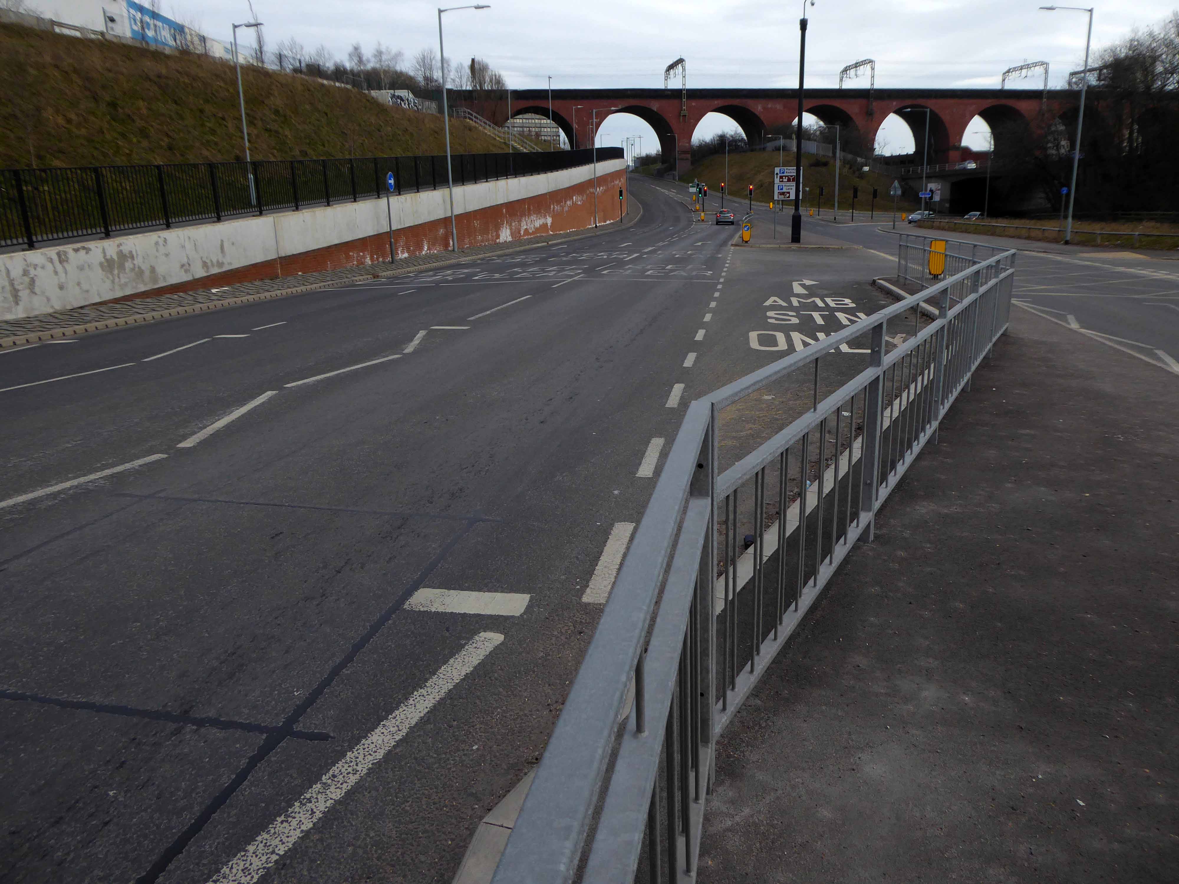 From the recently constructed pedestrian and cycleway a view south across multiple roadways.