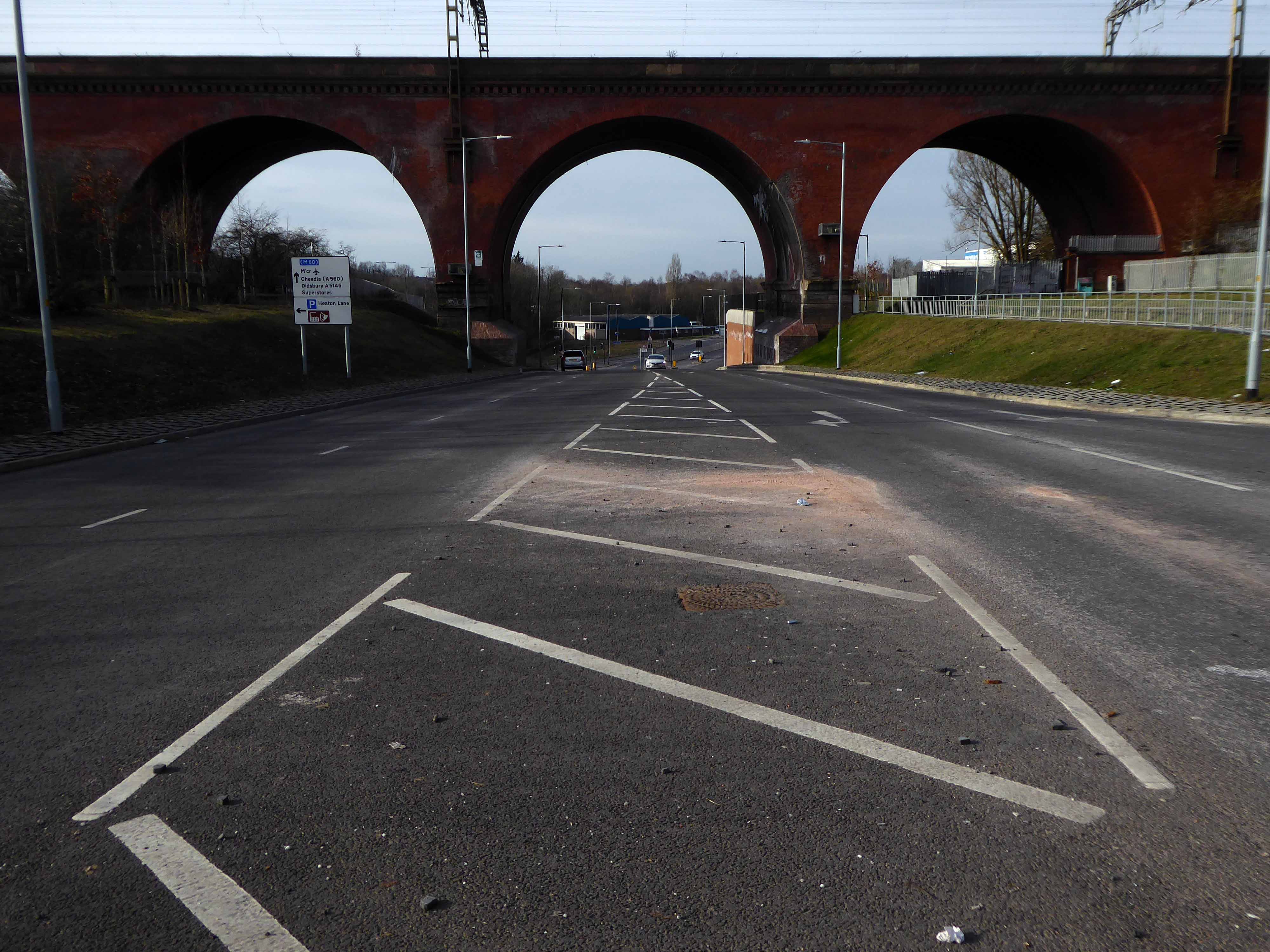 Looking east from Wellington Road North and the newly constructed A5154 link road.