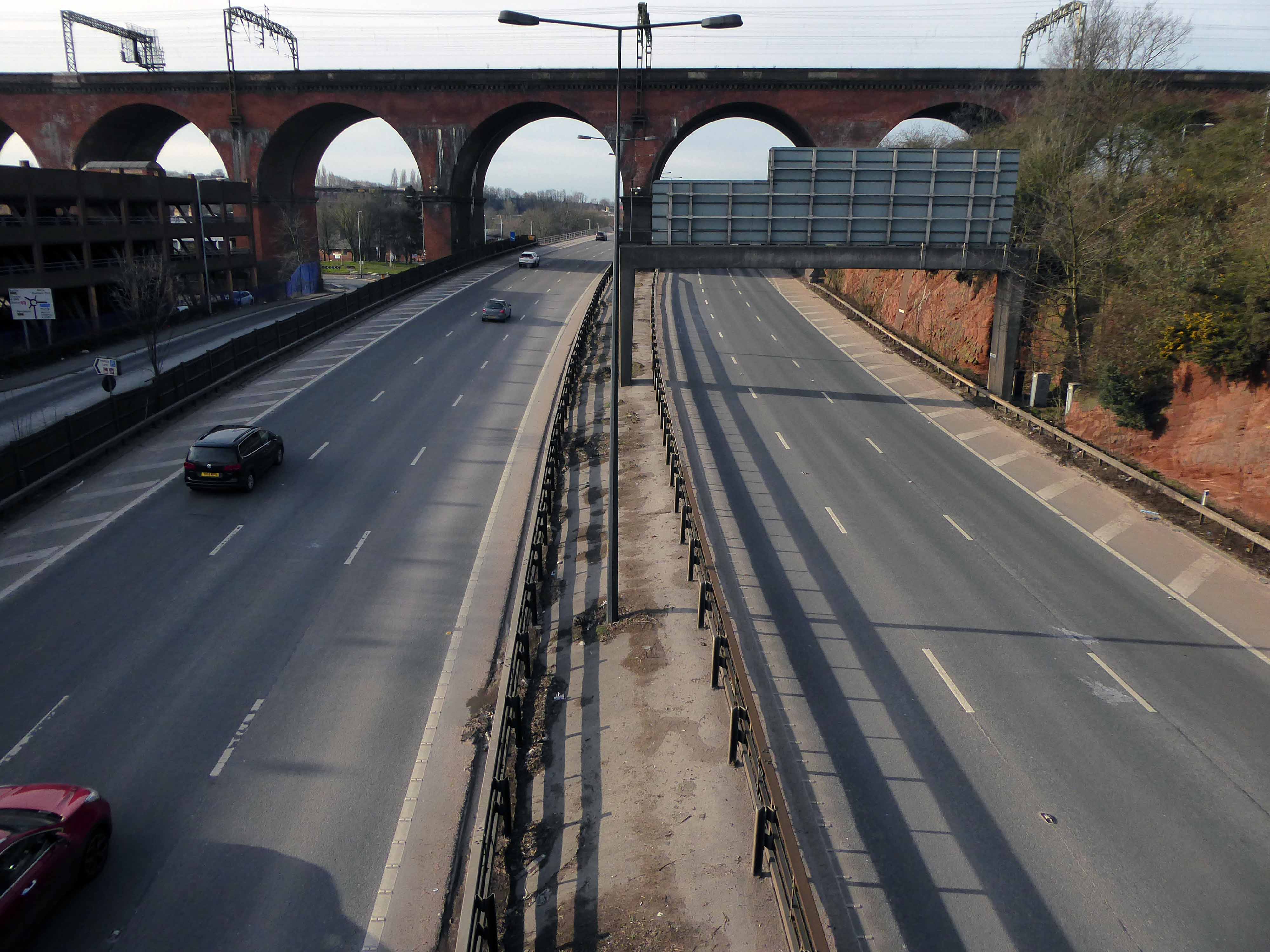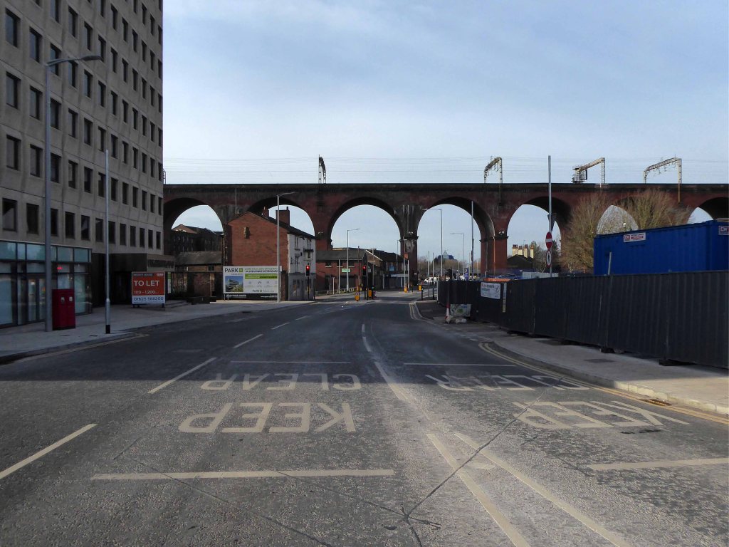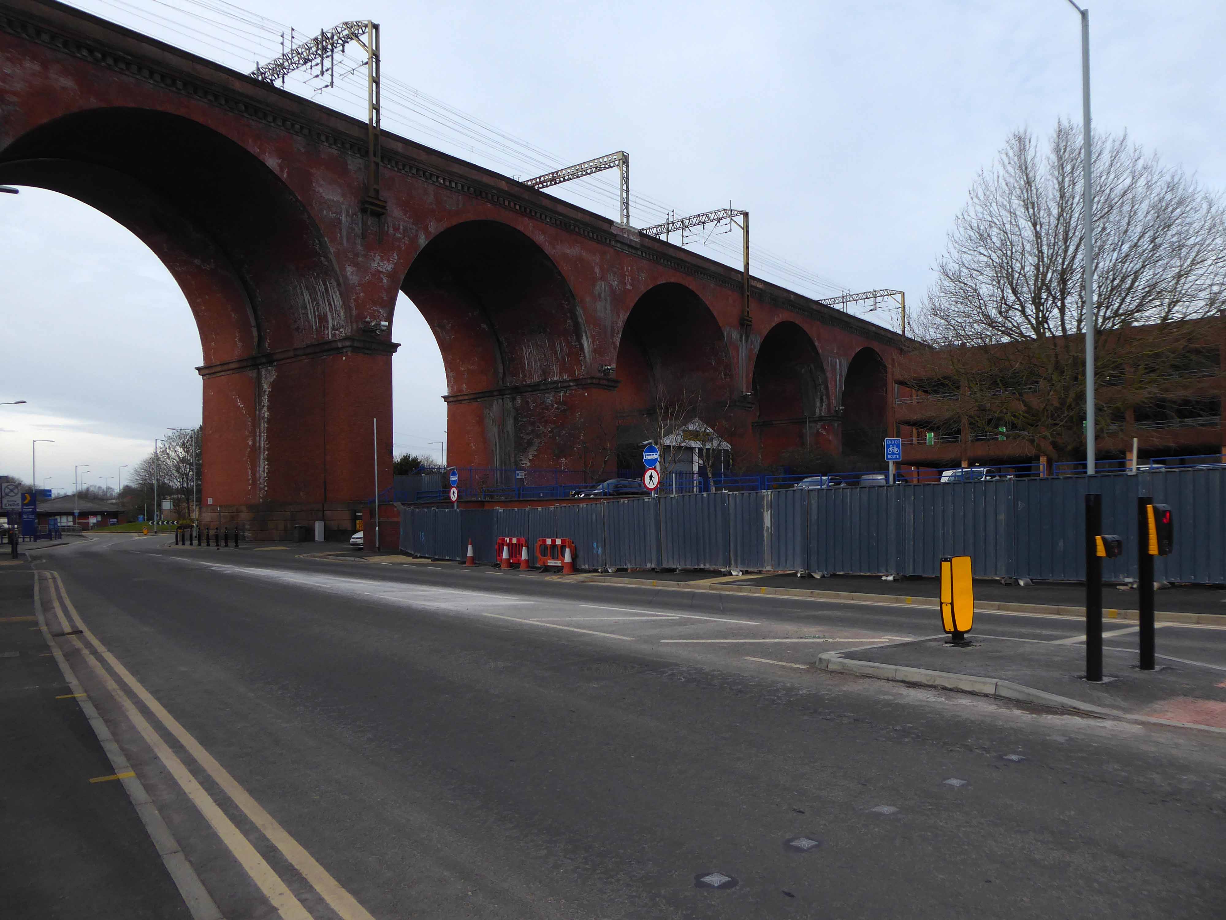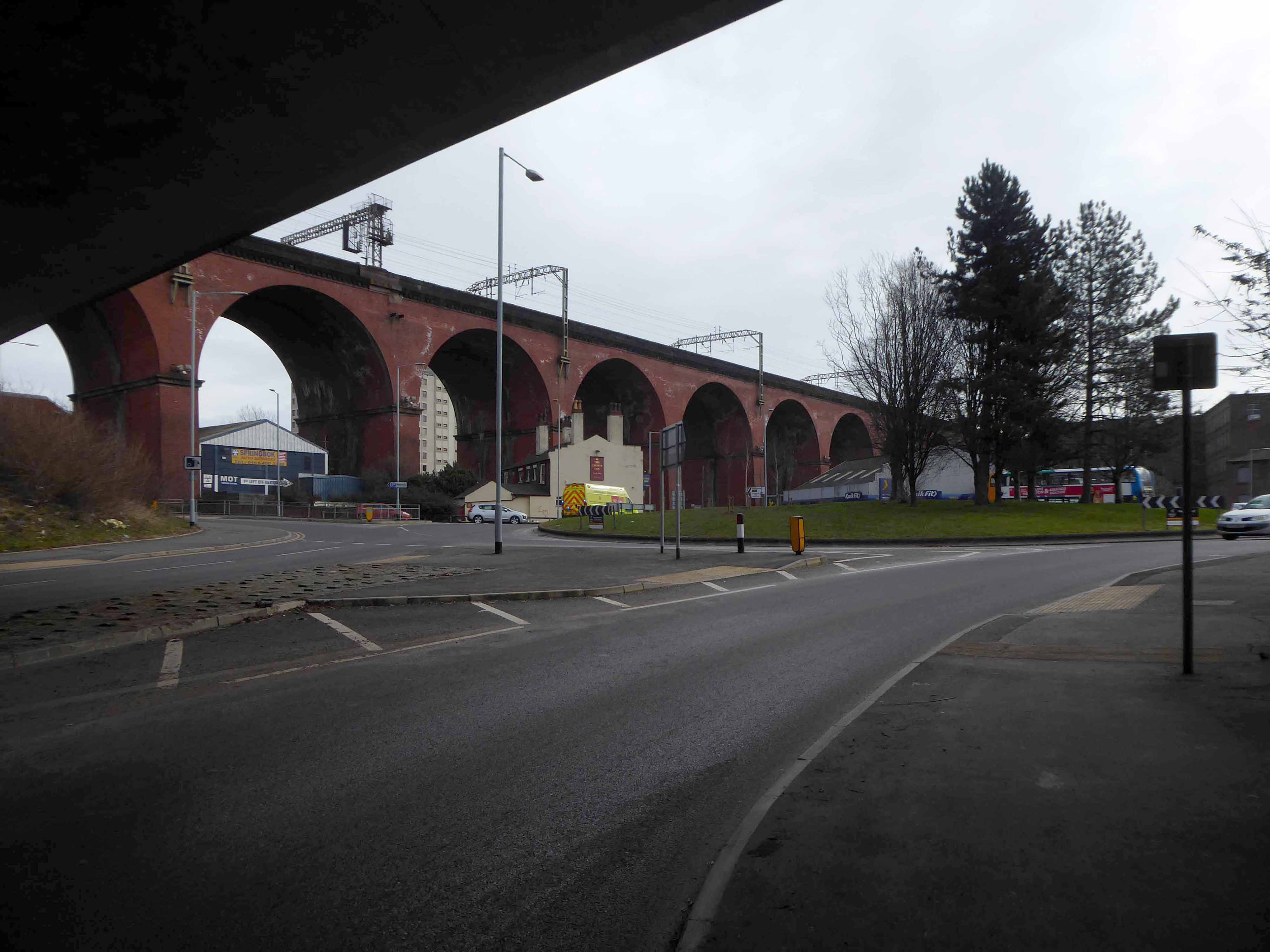 In the late 1880s, the viaduct was widened to accommodate four tracks instead of two. In the 1960s, overhead catenary lines were installed by British Rail for the West Coast Main Line electrification scheme. In the second half of the twentieth century, the M60 motorway was built, passing through two arches of the viaduct.