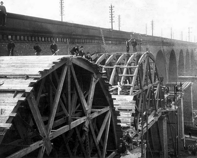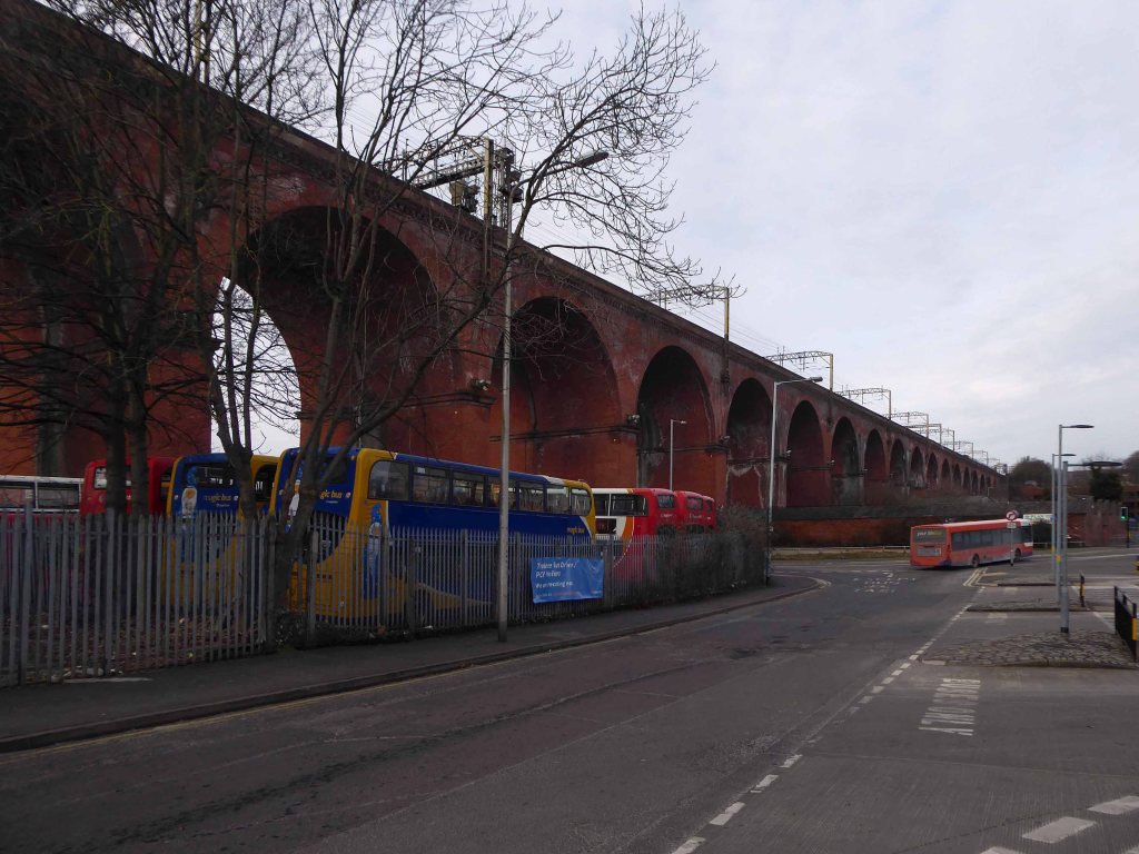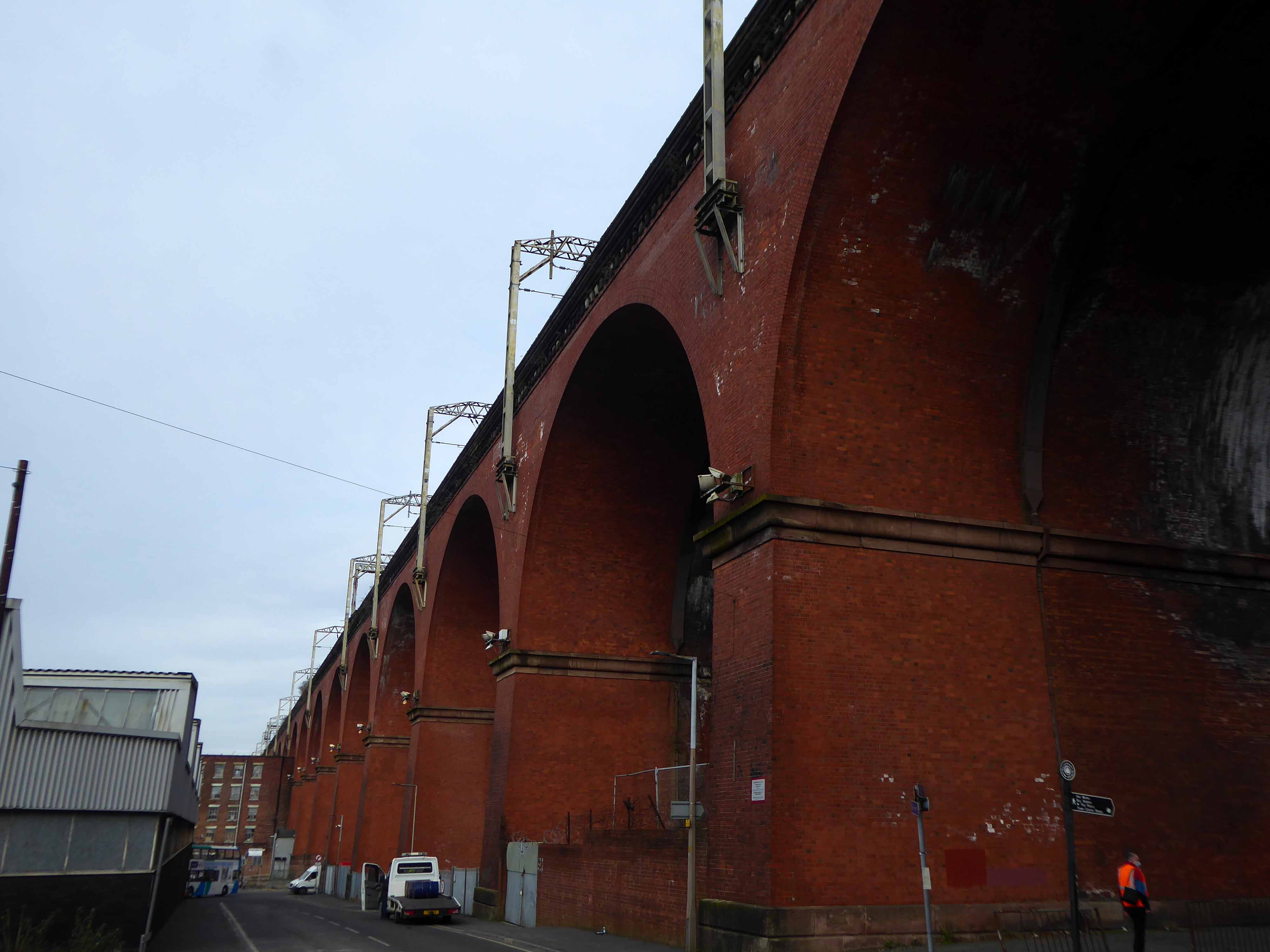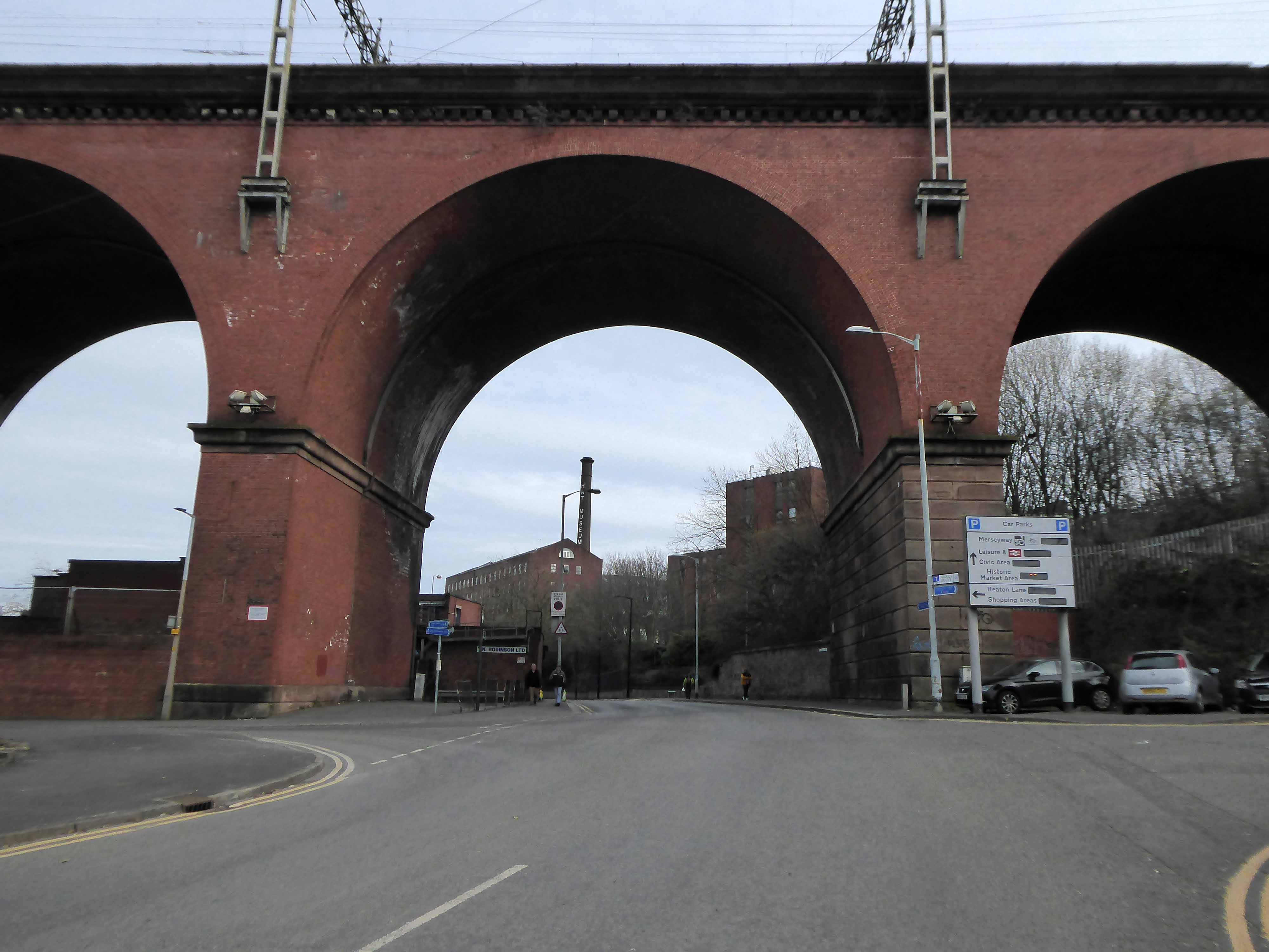 Stockport Viaduct was designed by George Watson Buck for the Manchester and Birmingham Railway. Work began in 1839 and was completed in 1840. Roughly 11 million bricks were used in its construction; at the time of its completion, it was the world’s largest viaduct and a major feat of engineering. The viaduct is 33.85 metres high.Stockport Viaduct is a Grade II* listed structure and remains one of the world’s biggest brick structures.