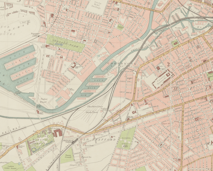 In 1904 the Pomona Docks have been established and the are around Hadfield Street fully developed.