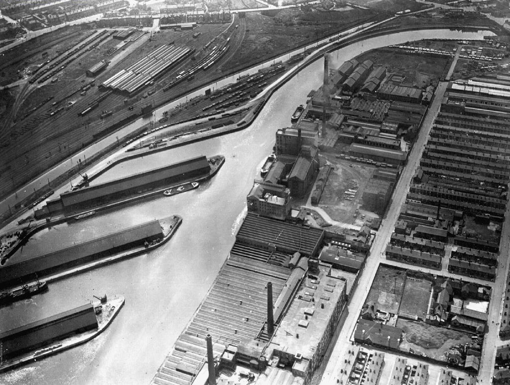 This is an aerial view from 1930, there area is now a dense network of streets to the north of Chester Road, transport infrastructure, housing and industry sit side by side.