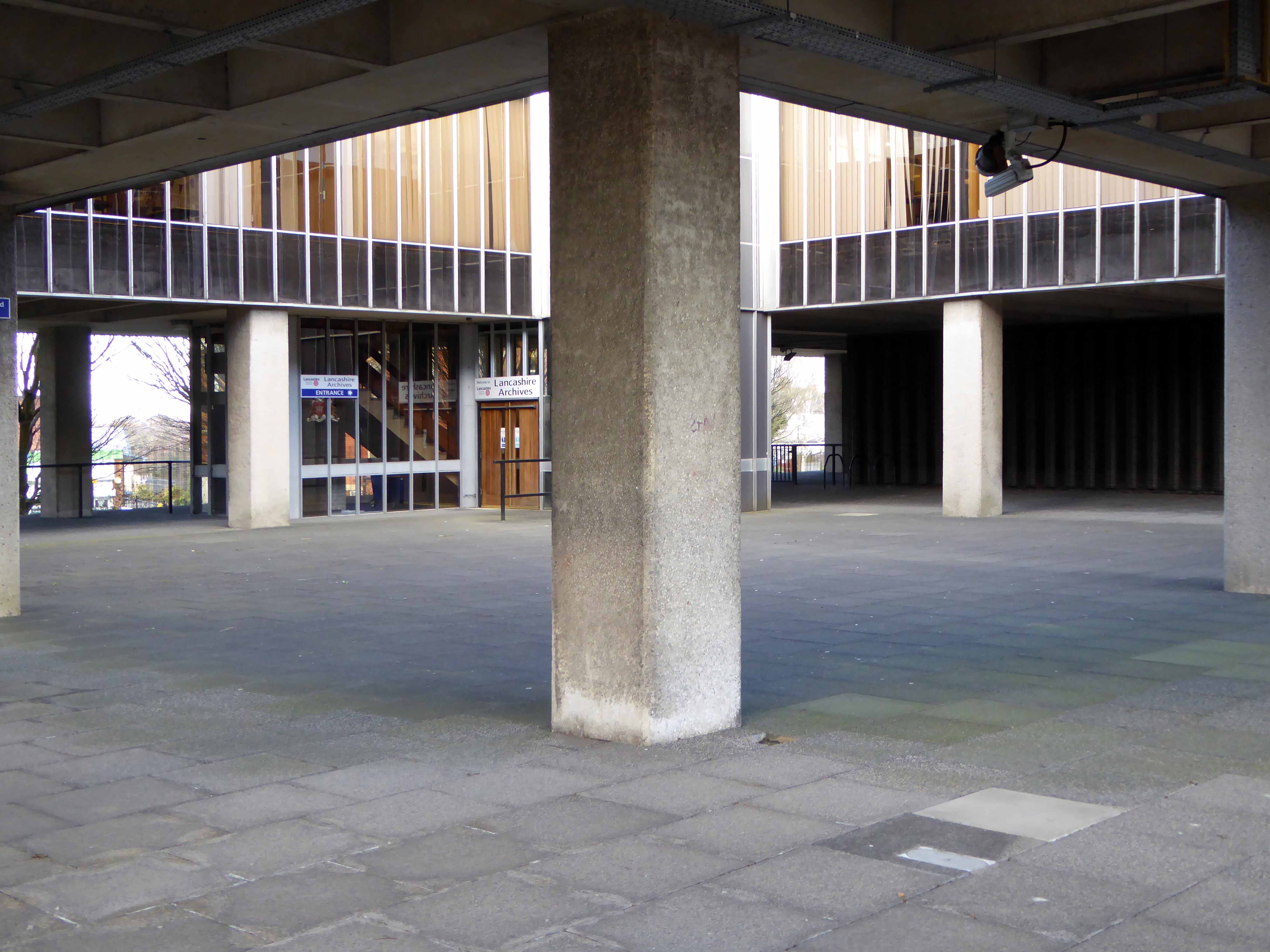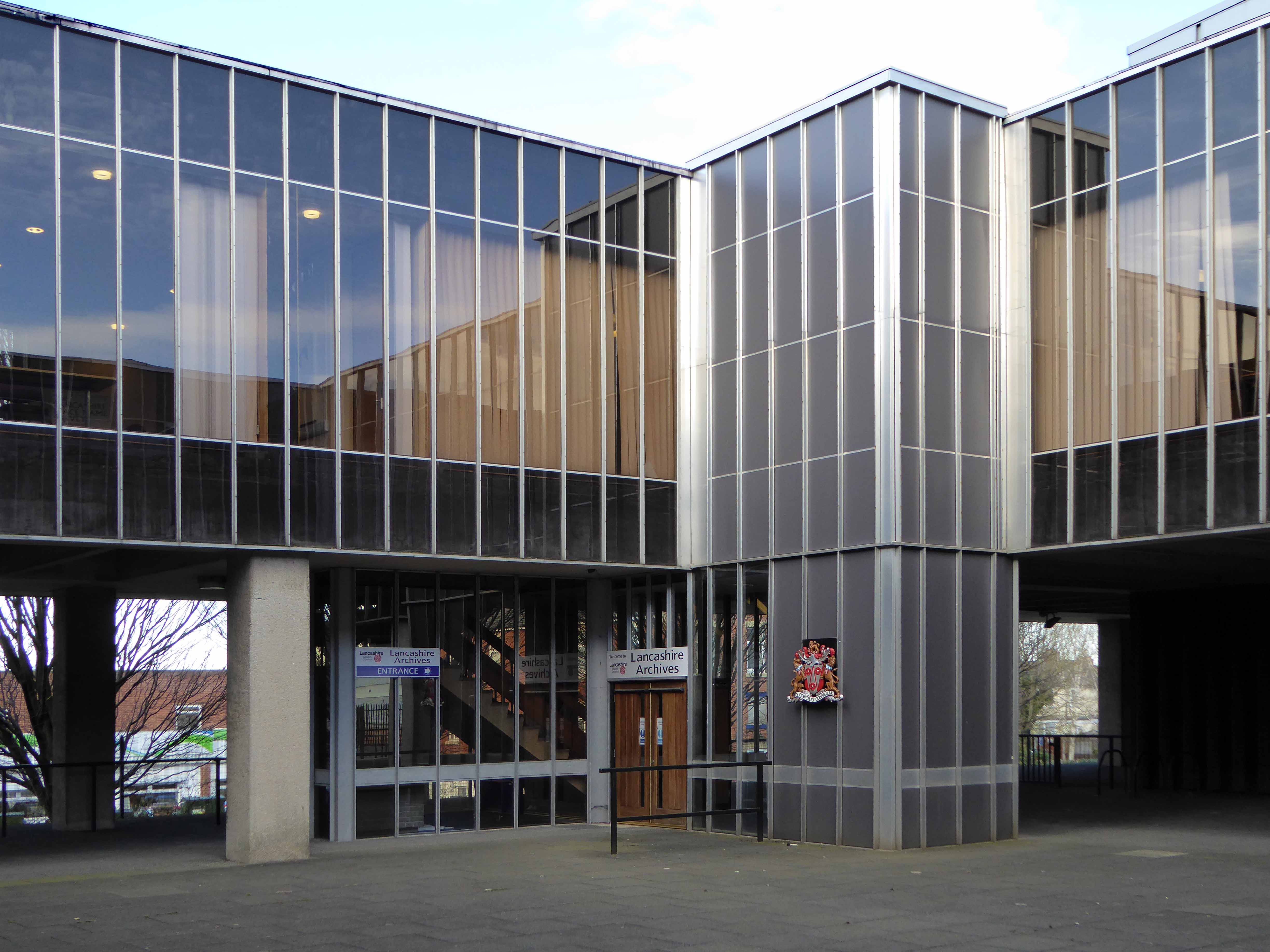 Peeping coyly from behind the surrounding trees, in the shadow of County Hall – the Lancashire Archives, yet more of Roger Booth’s handiwork.