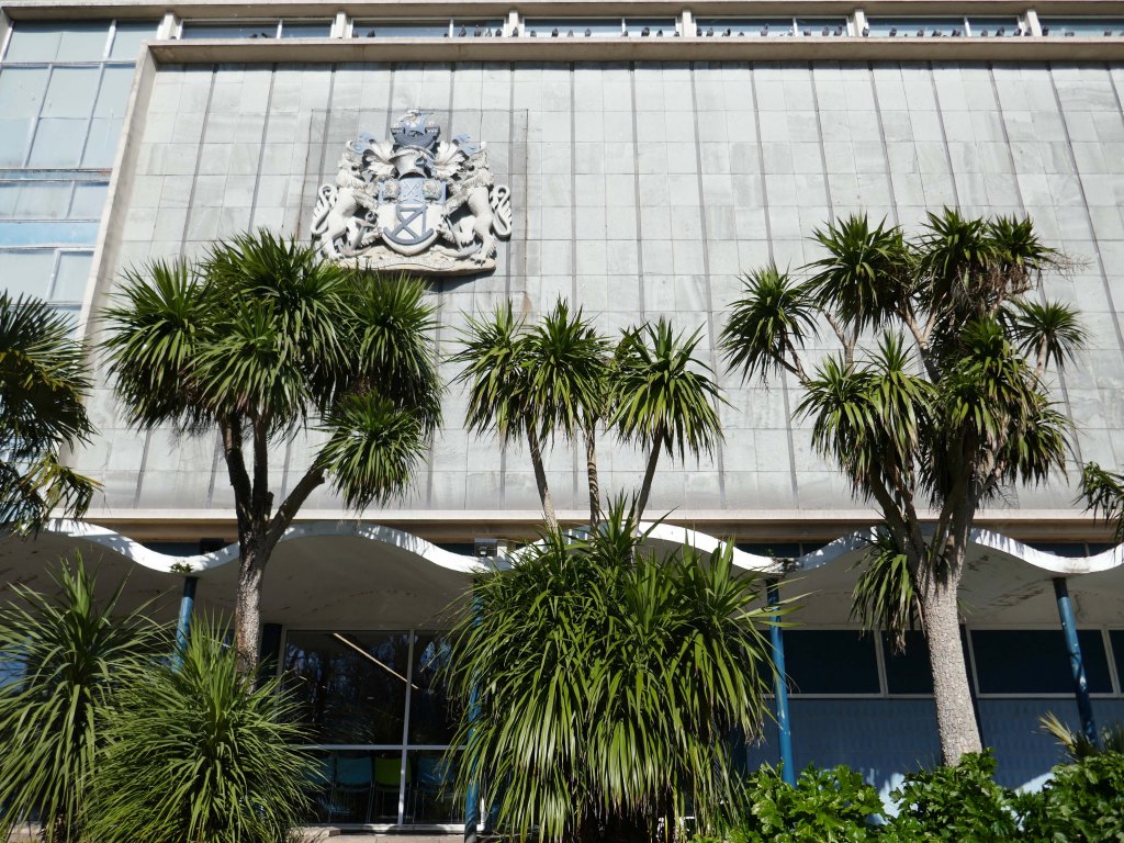 The Classical stone frontage of the Guildhall Shopping Centre.