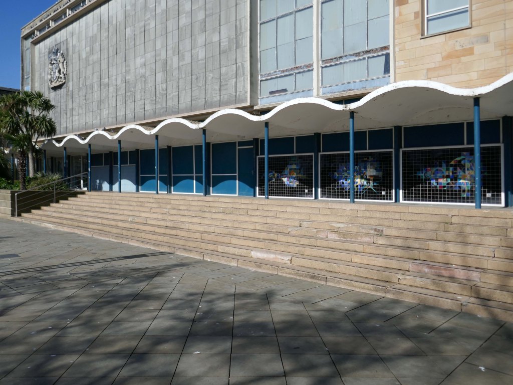 Facing the former library we find the CAST Theatre, Civic Buildings and Savoy Cinema, grouped around Sir Nigel Gresley Square.