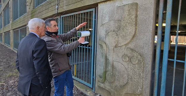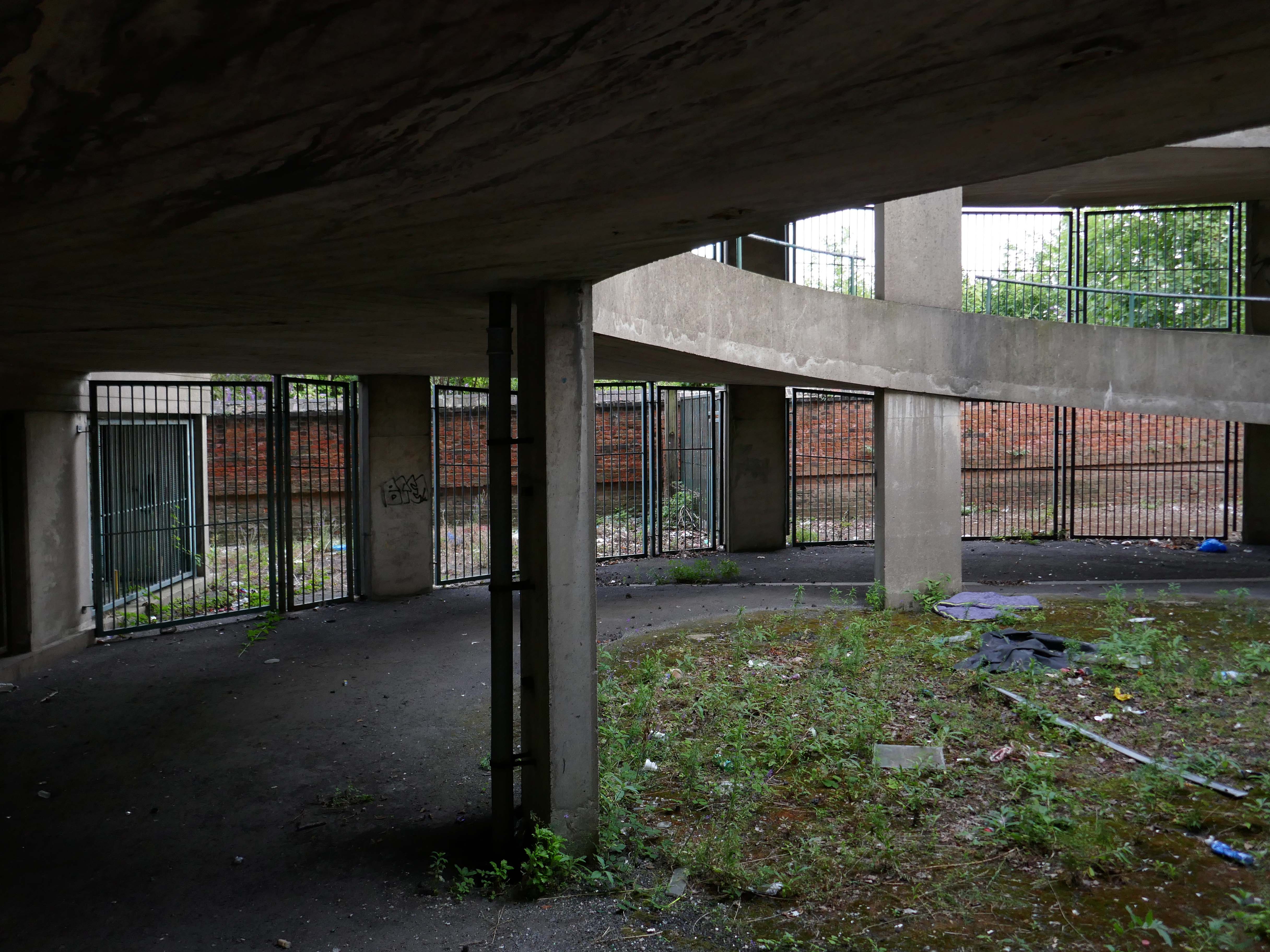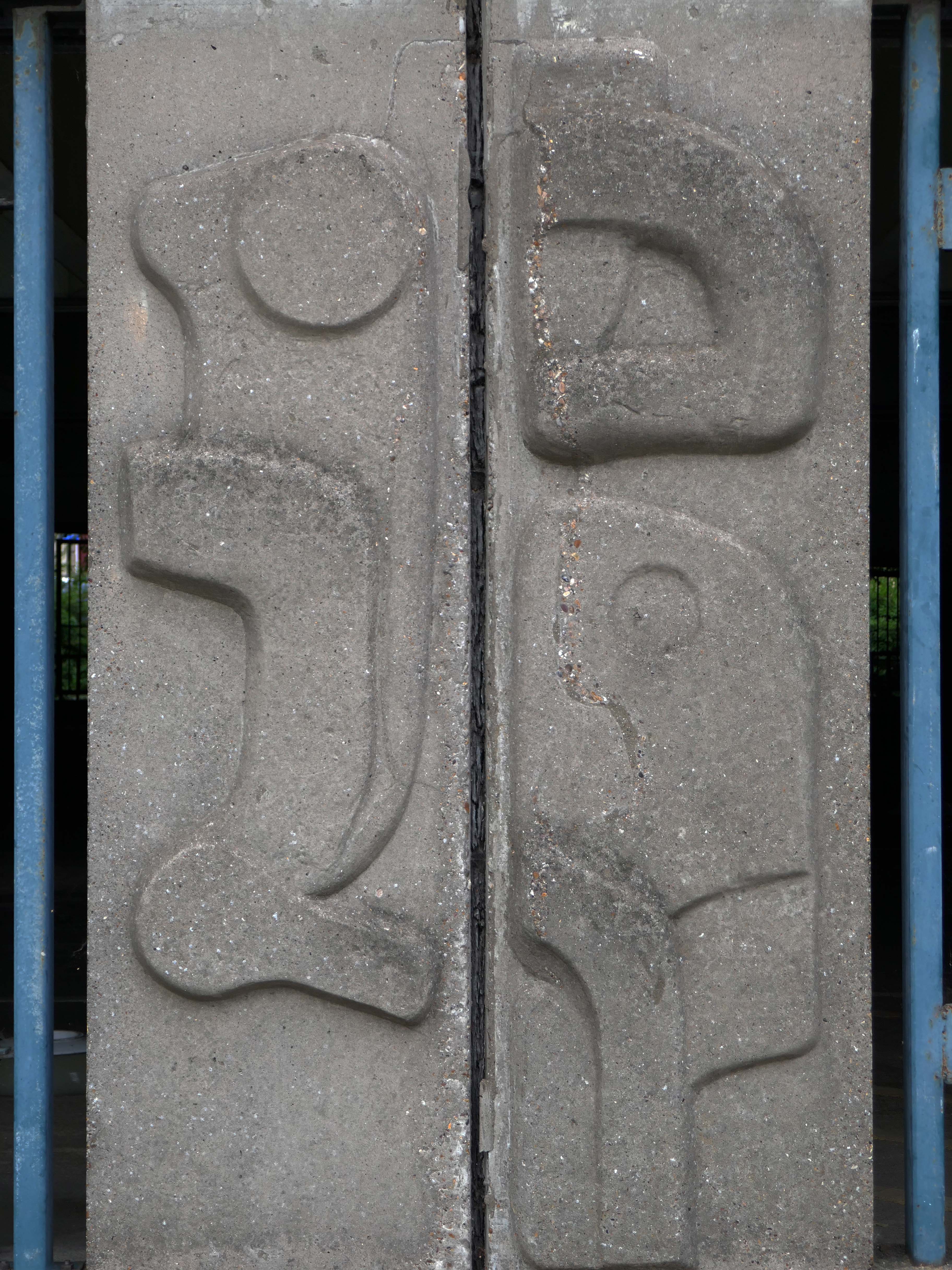 These panels were cast in situ, with metal bars running through them, which were integral to the car park structure, which is likely to make removal of the artwork incredibly difficult.