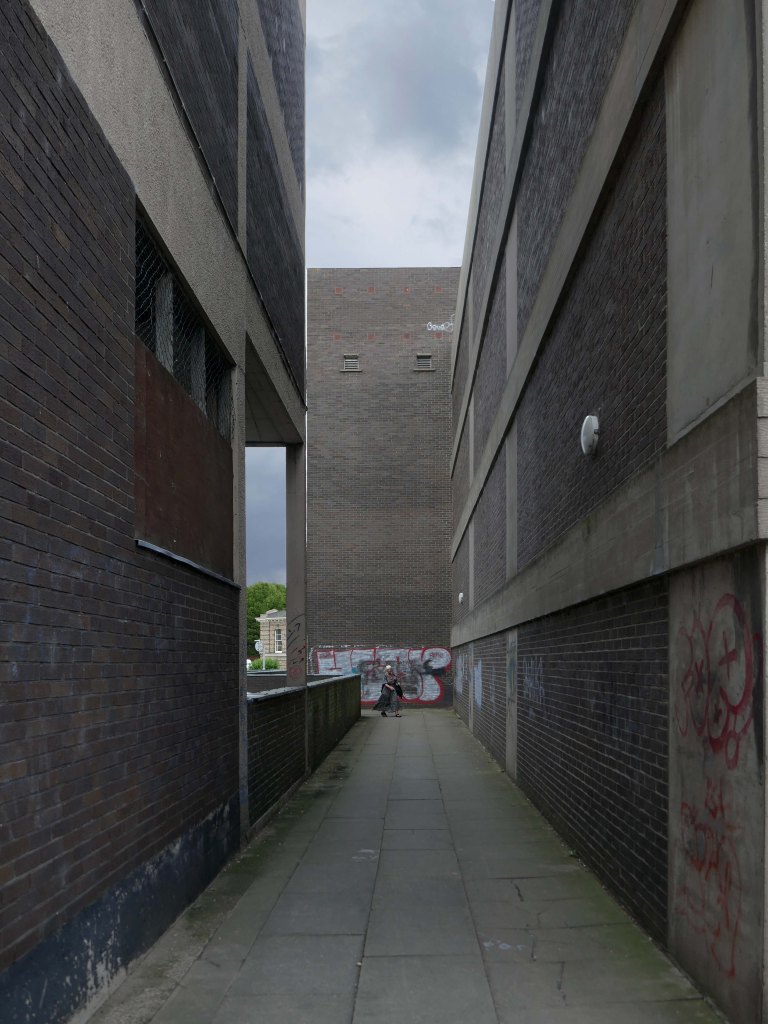 To the left the Colonnades Shopping Centre a fierce angular glass and brick bunker of mixed office and retail space – the sole occupant seeming to be Home Bargains.