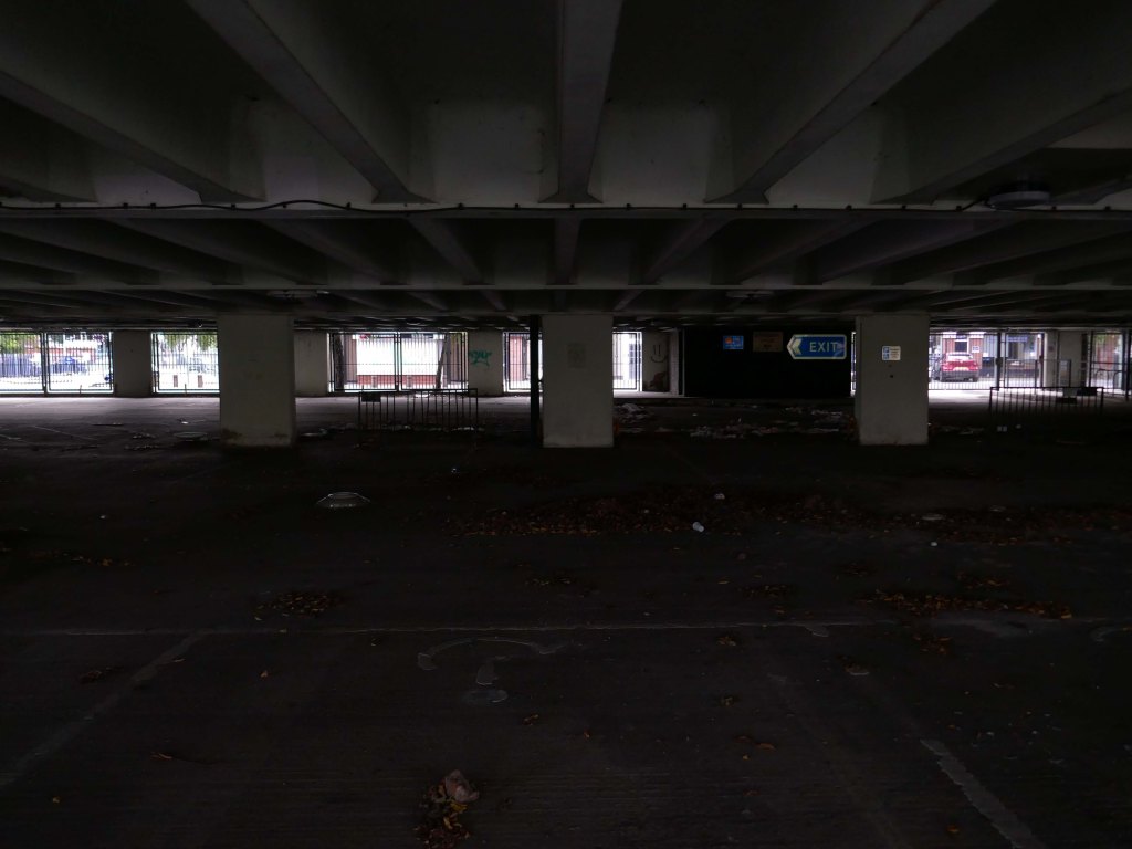 The weary walker is diverted toward the Civic Quarter Car Park.
