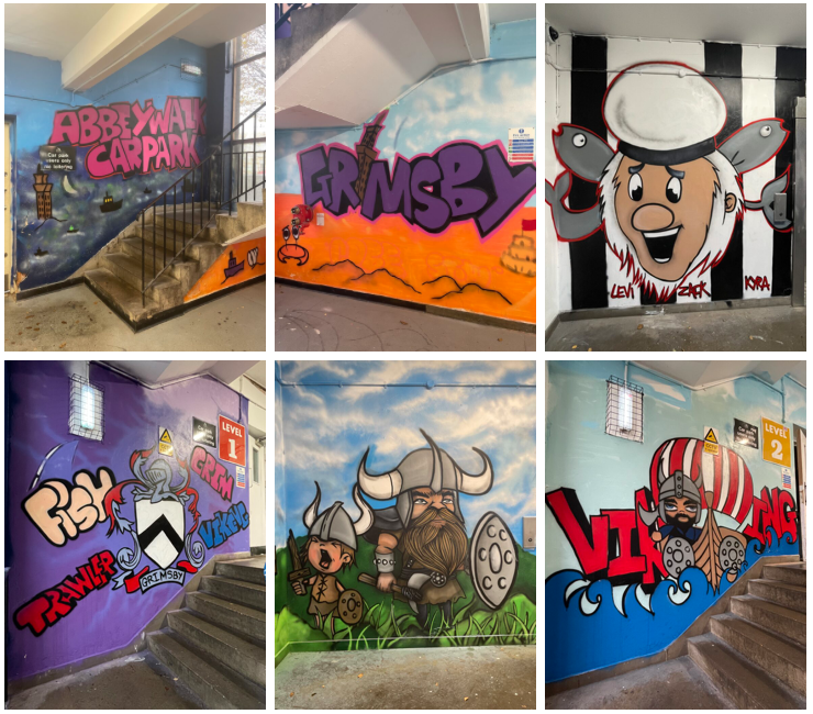 In 2023 the car park stairwell was transformed by young people from the local area, as part of a project by North East Lincolnshire Council and local artist Lynsey Powles, to try to tackle graffiti and anti-social behaviour.