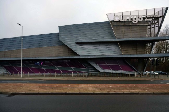 To the left the Colonnades Shopping Centre a fierce angular glass and brick bunker of mixed office and retail space – the sole occupant seeming to be Home Bargains.