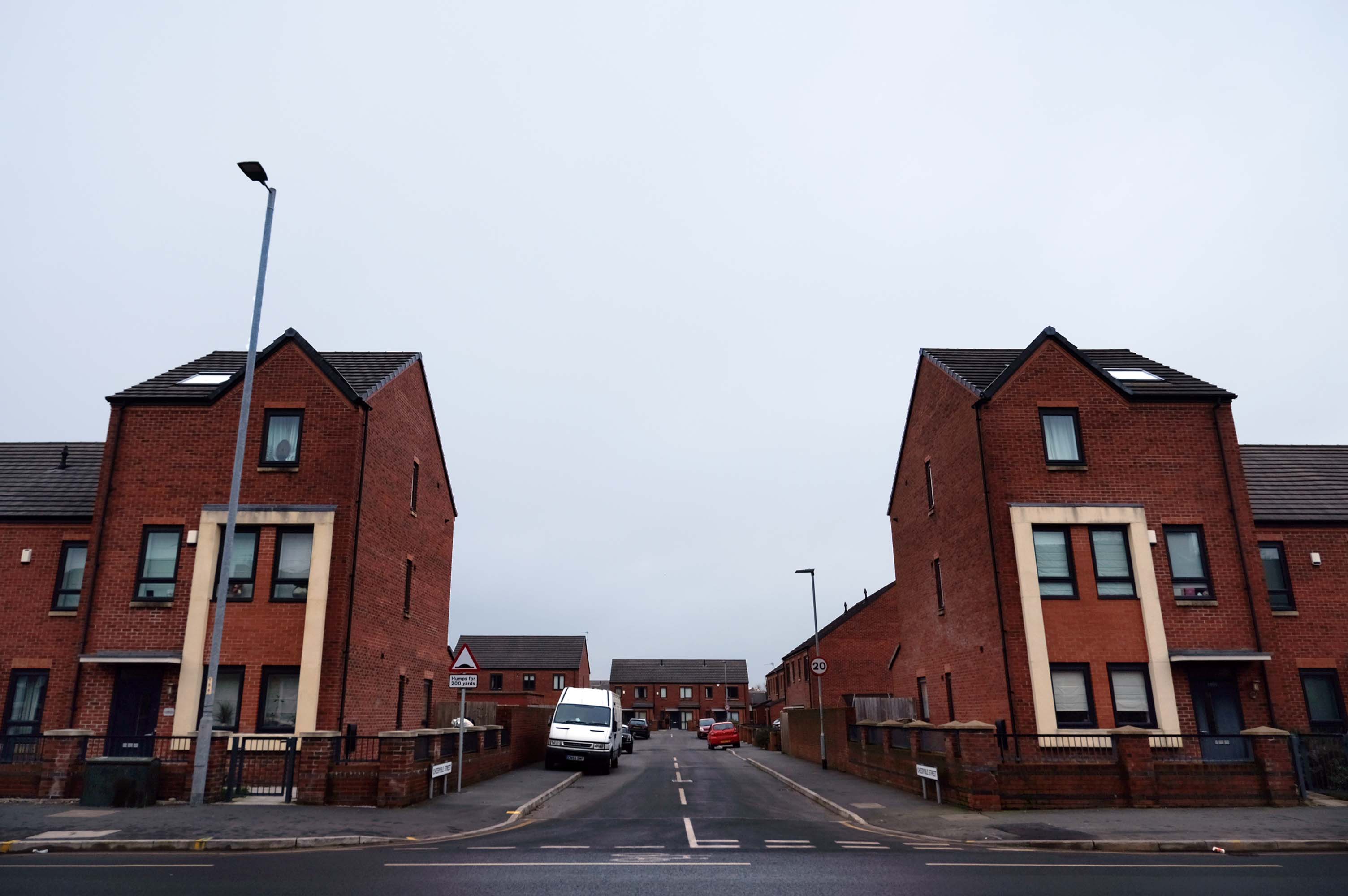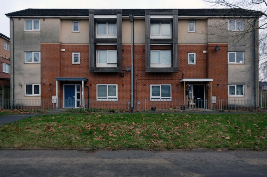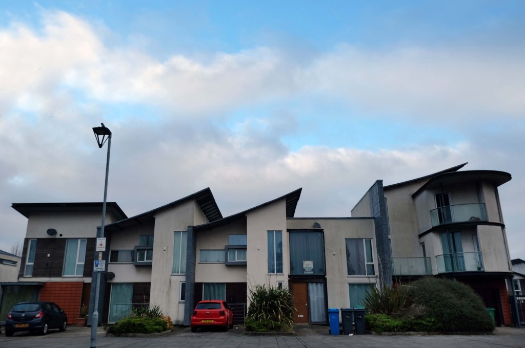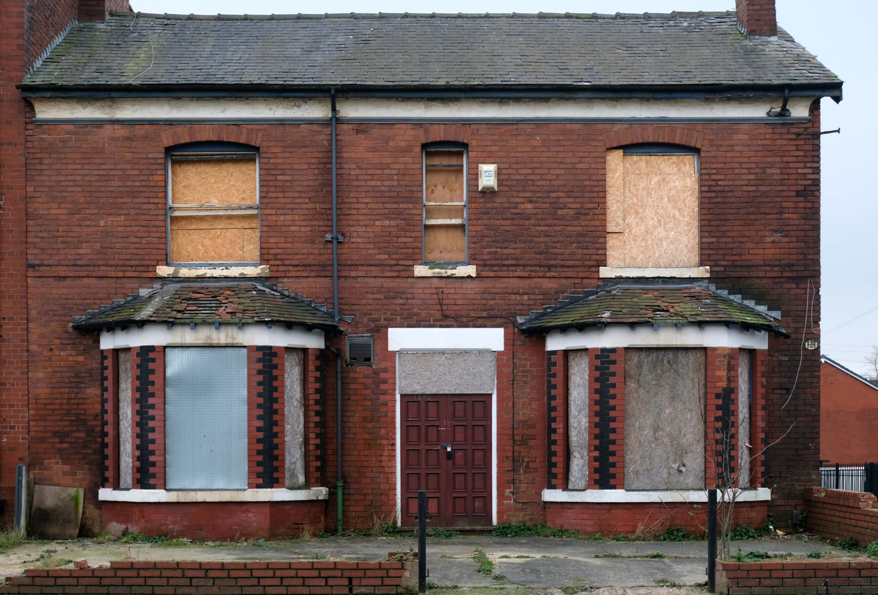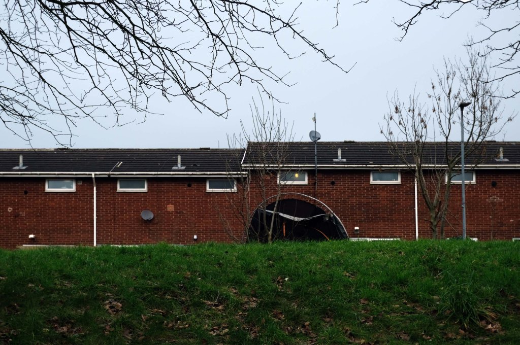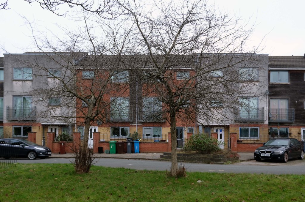 The remains of the remaining Eastford Square homes tinned up and secured awaiting who knows what.
