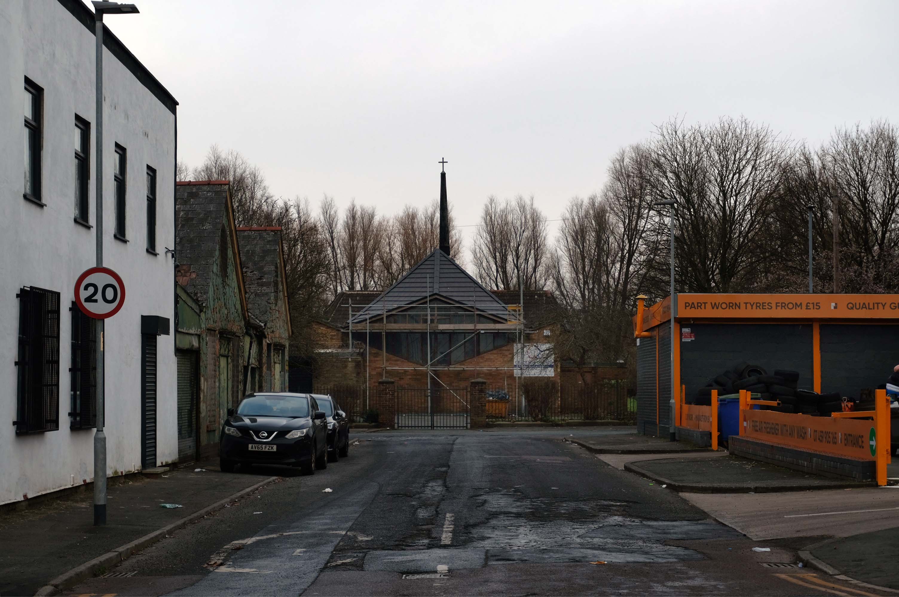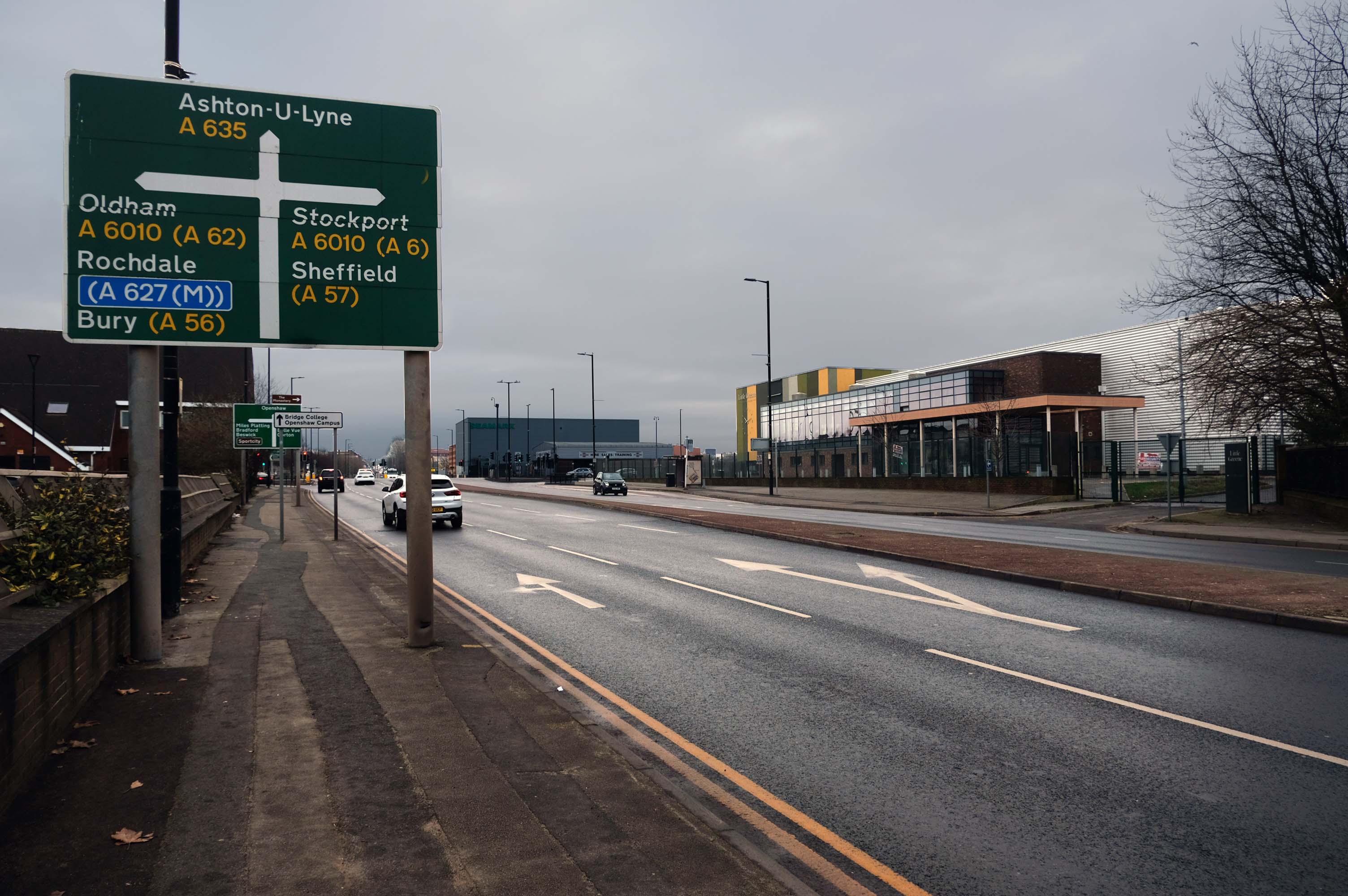 Escaping the dark, dank Irk Valley onwards and upwards to Rochdale Road.